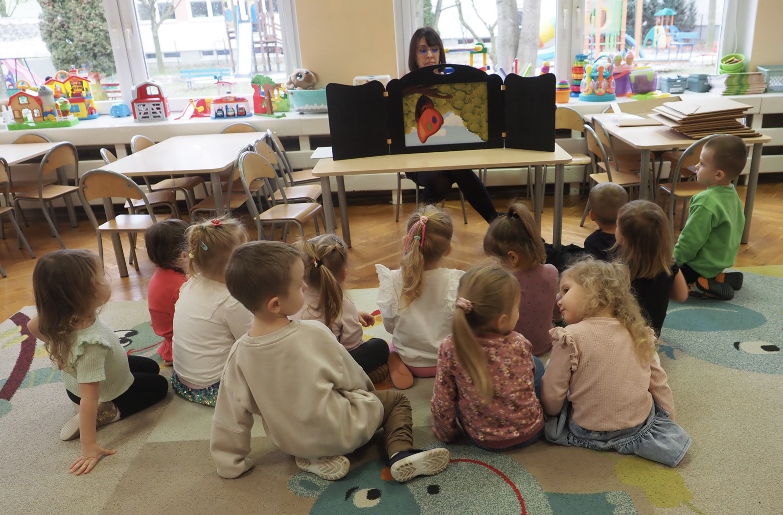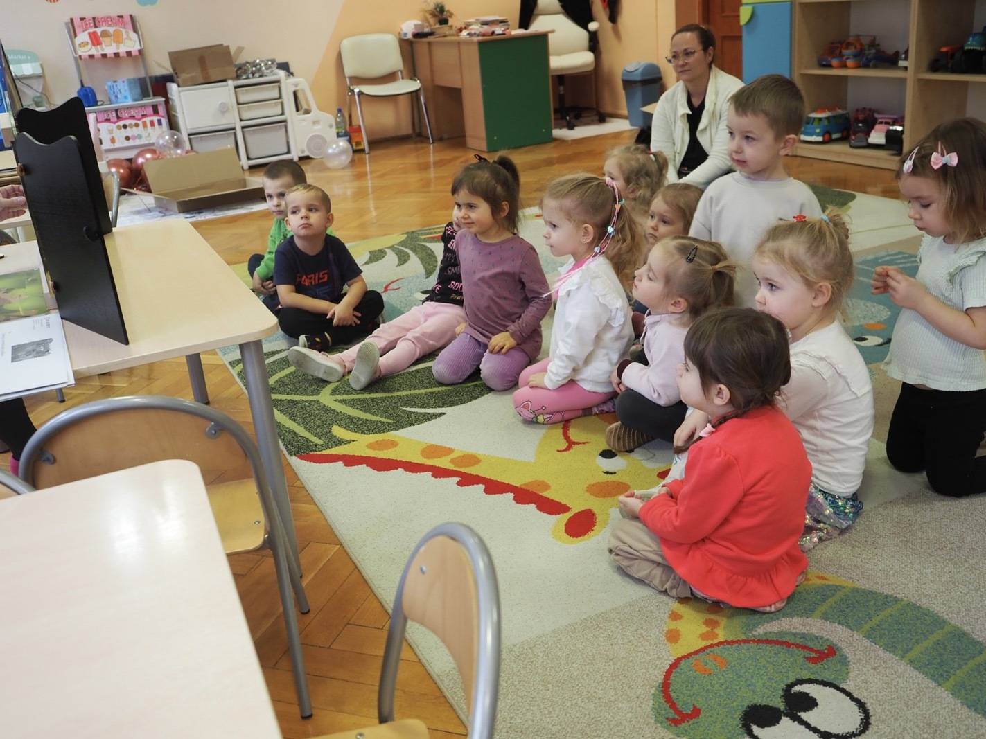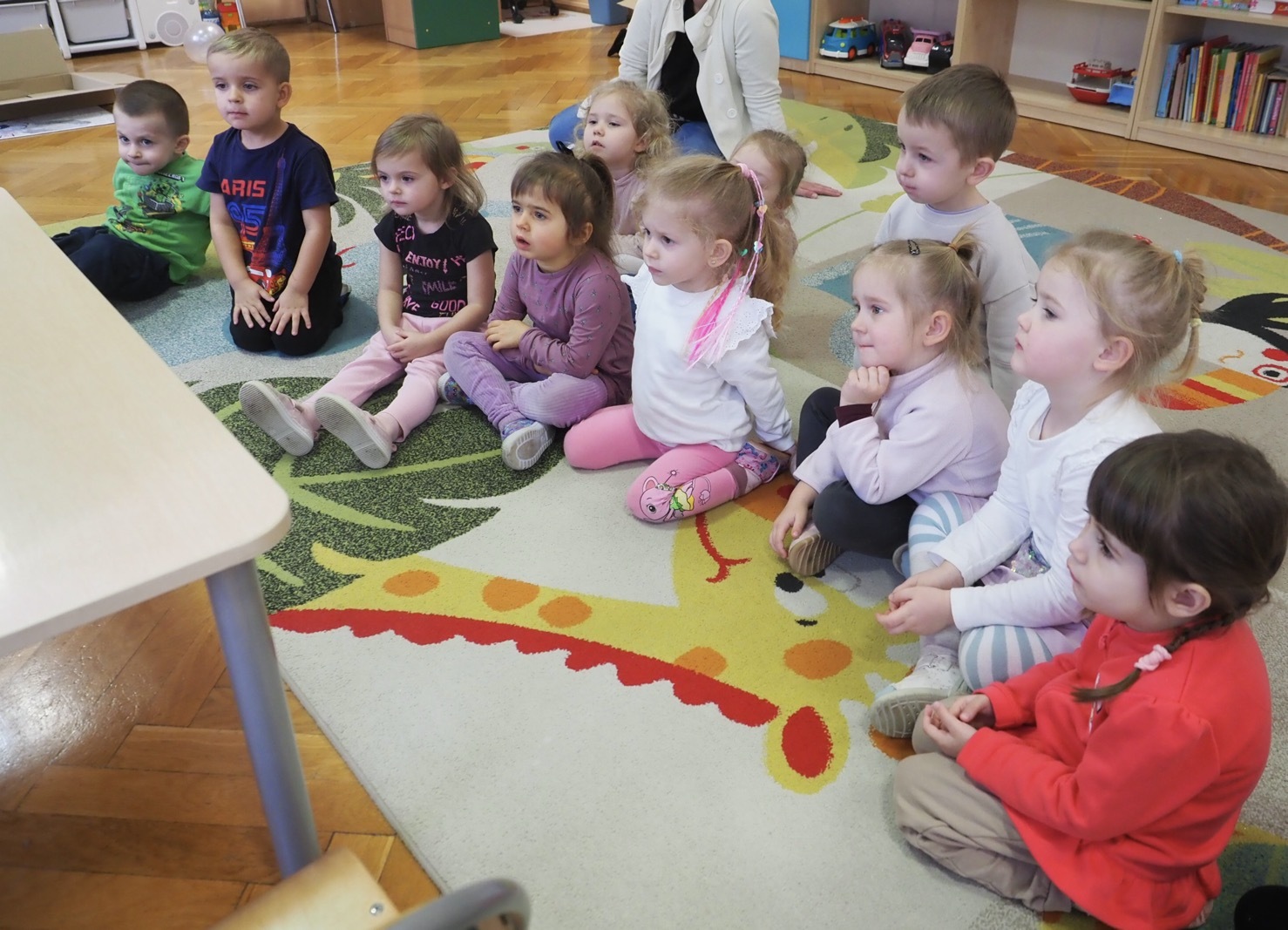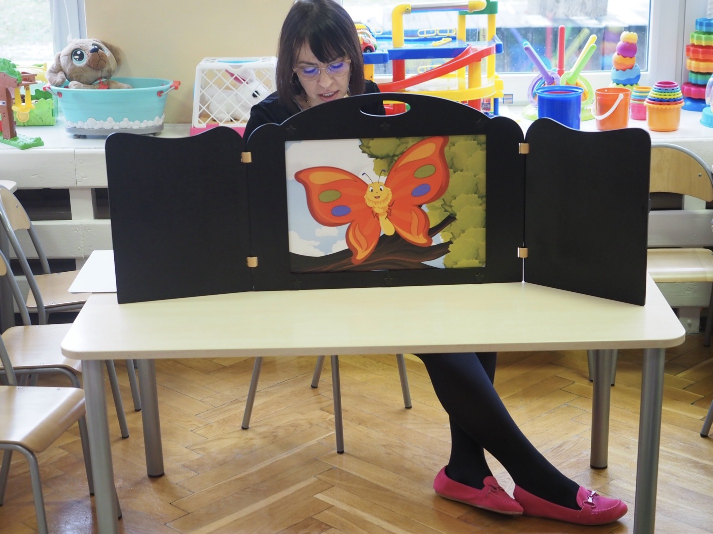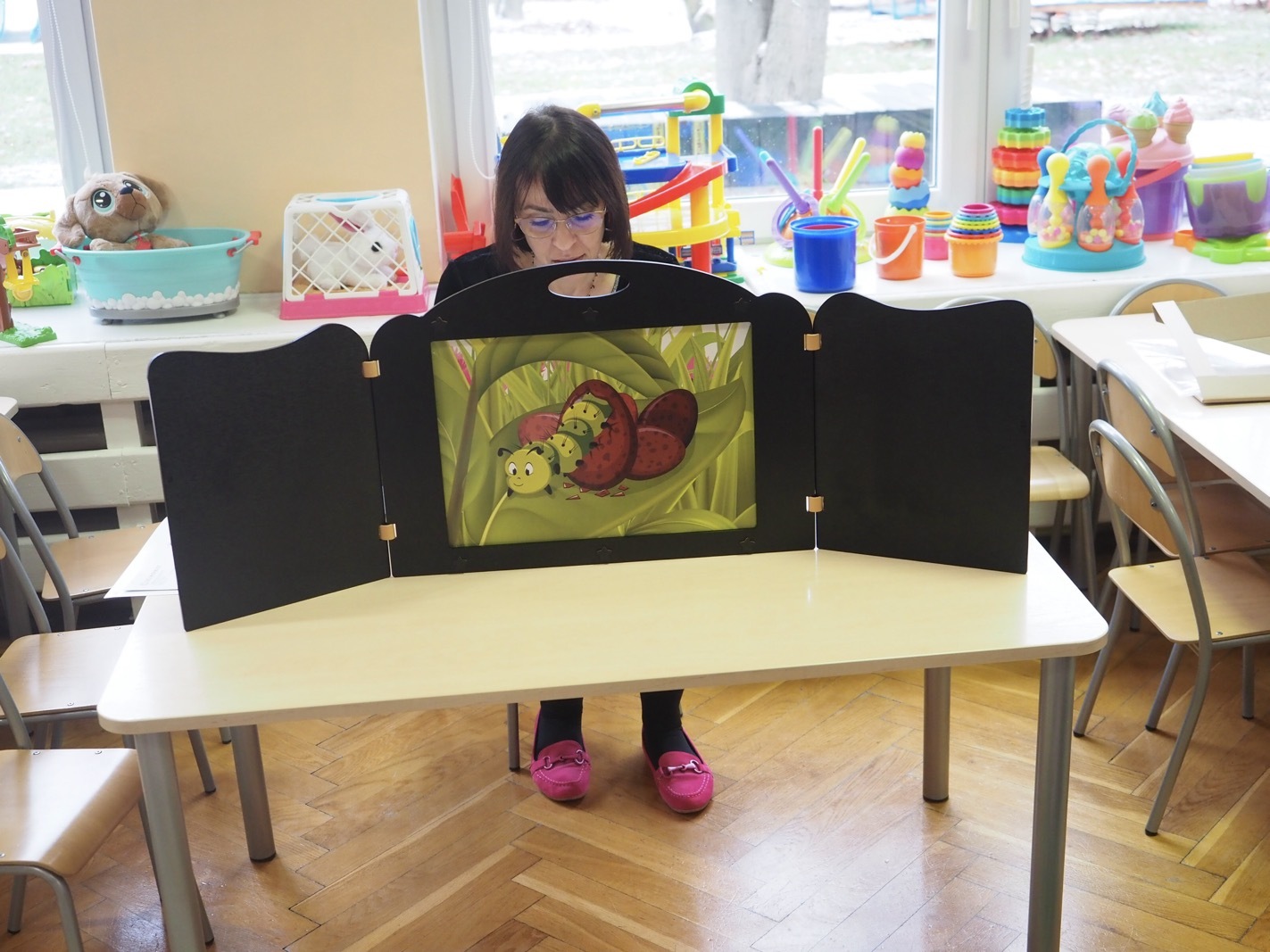 Kamishibai - teatrzyk obrazkowy ukryty w "drewnianej skrzynce". Dziś opowieść o Magicznej gąsienicy - grupa 1