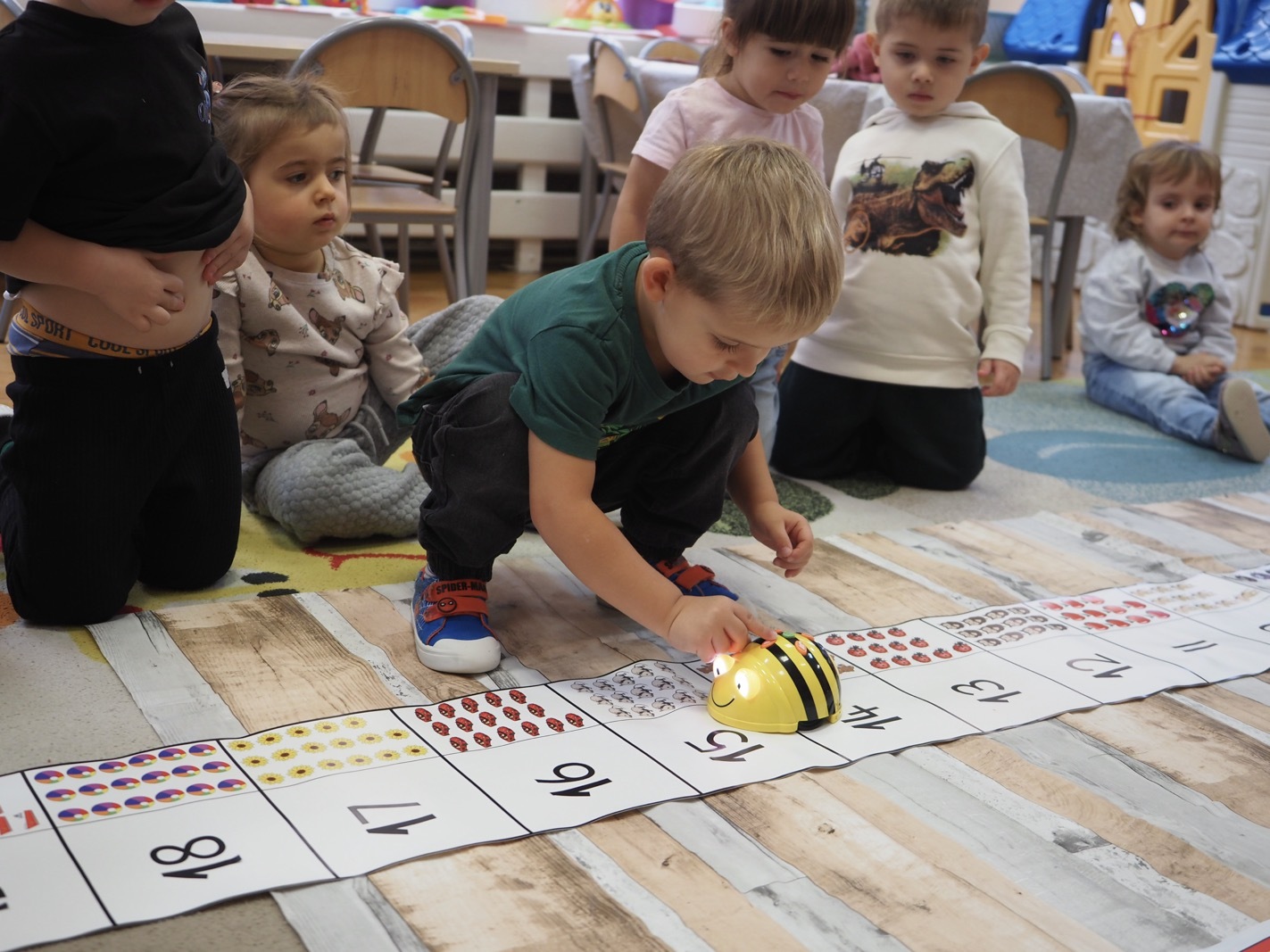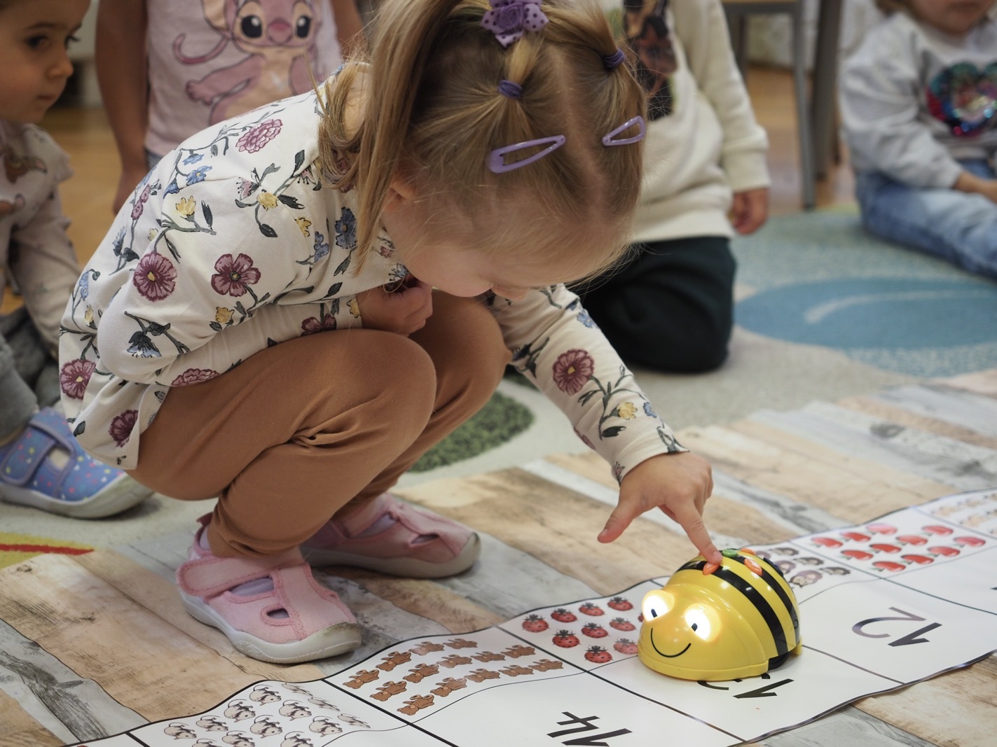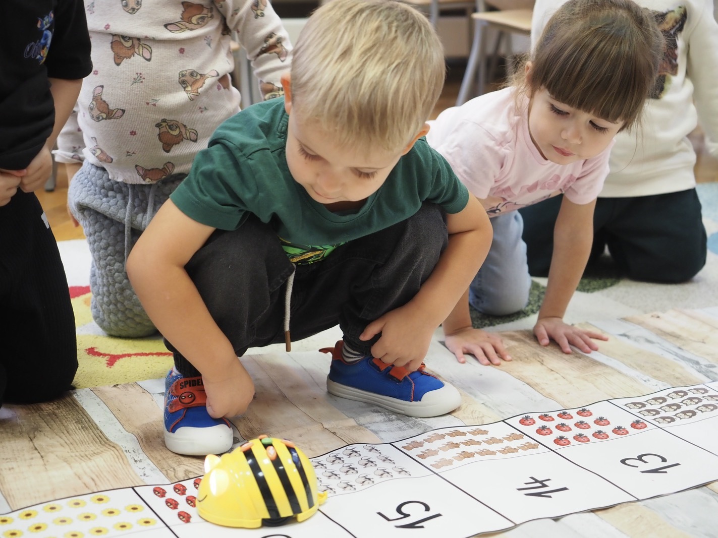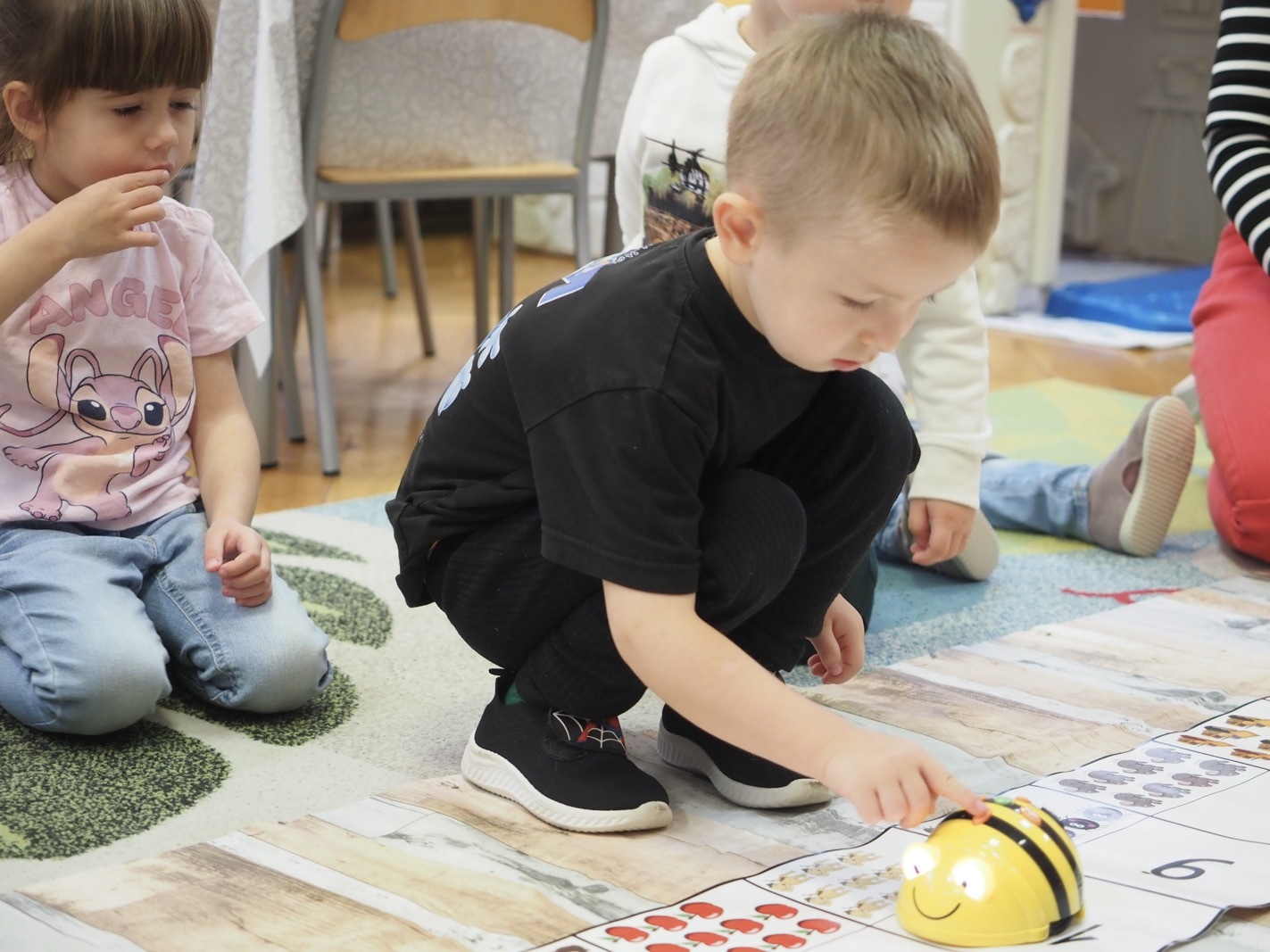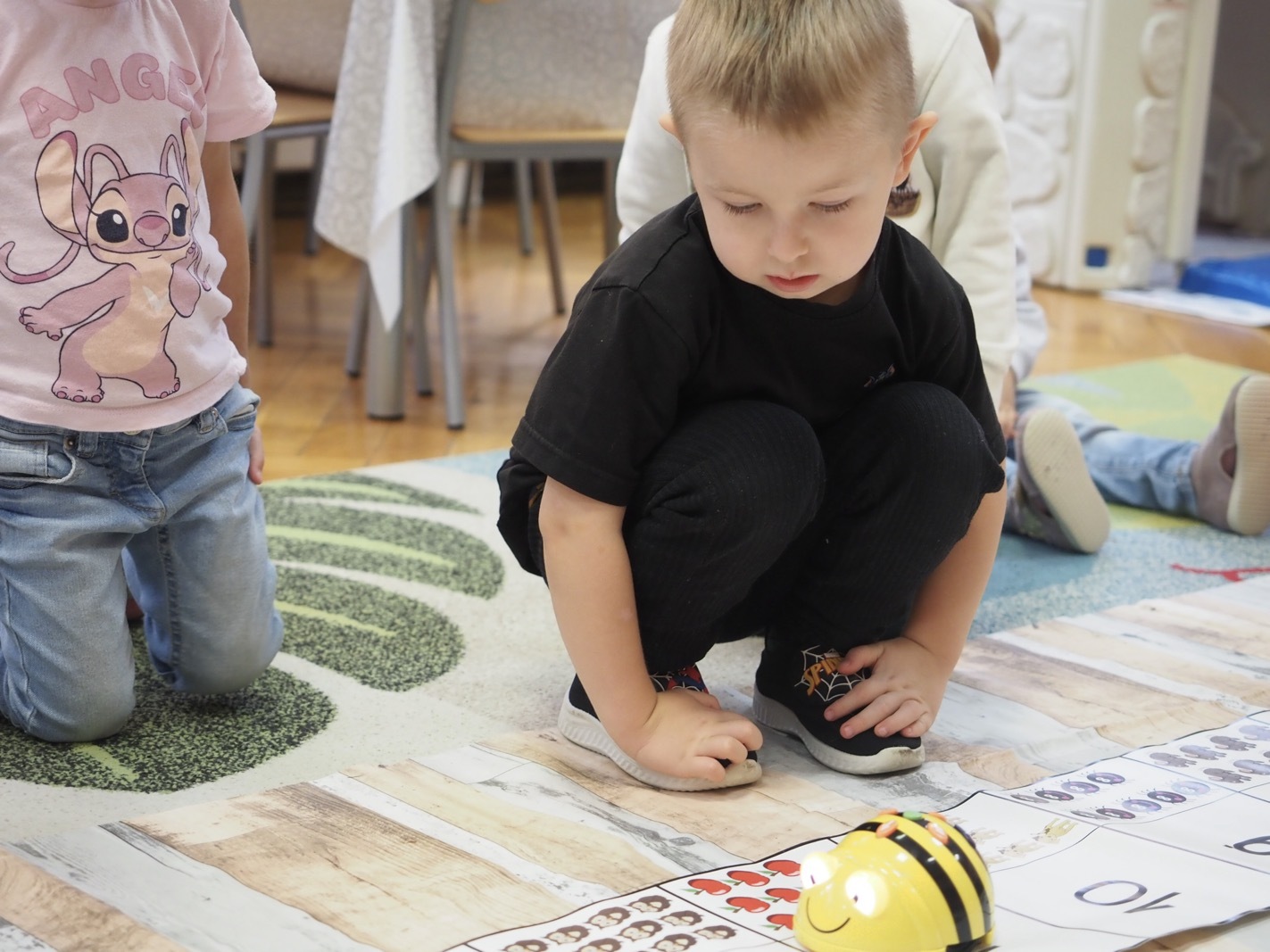 Kodowanie i programowanie - grupa 1. Kodowanie i programowanie przedszkolne opiera się na nauce poprzez zabawę, rozwijając logiczne myślenie, kreatywność i rozwiązywanie problemów bez konieczności używania komputera, np. za pomocą układanek, gier z kubeczkami czy maty do kodowania. Dzieci poznają podstawowe koncepcje programowania, takie jak sekwencje, tworzenie poleceń i rozumienie kodów.
