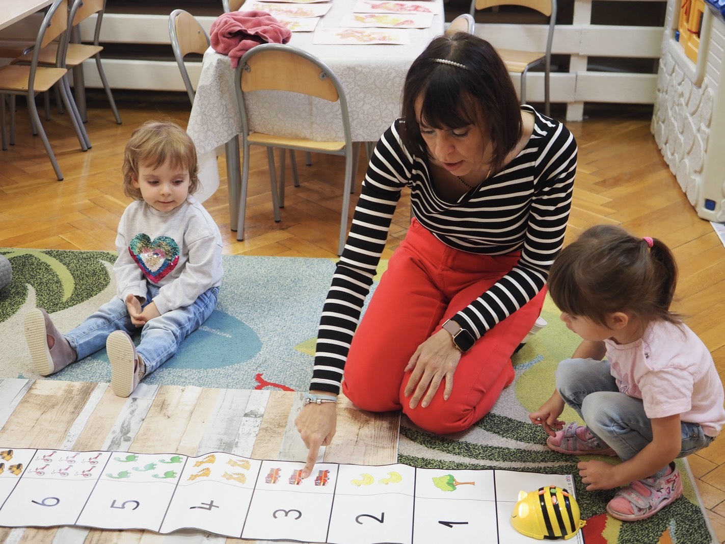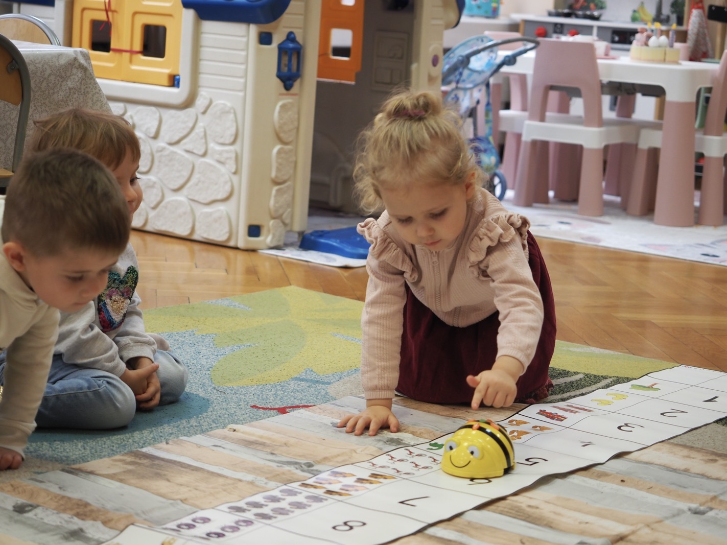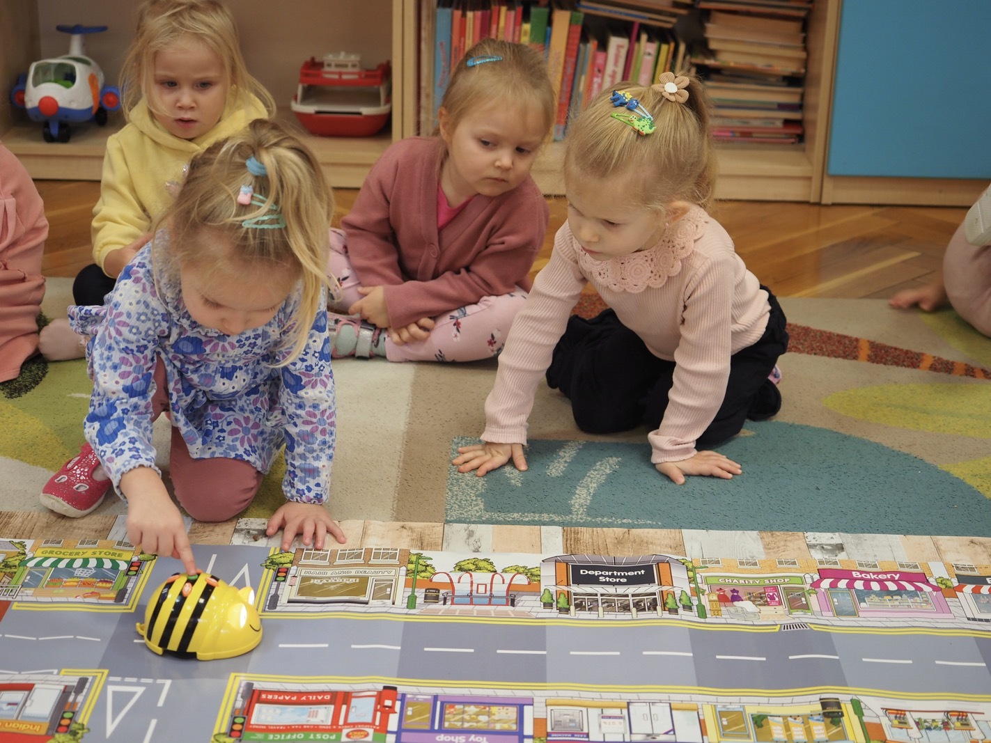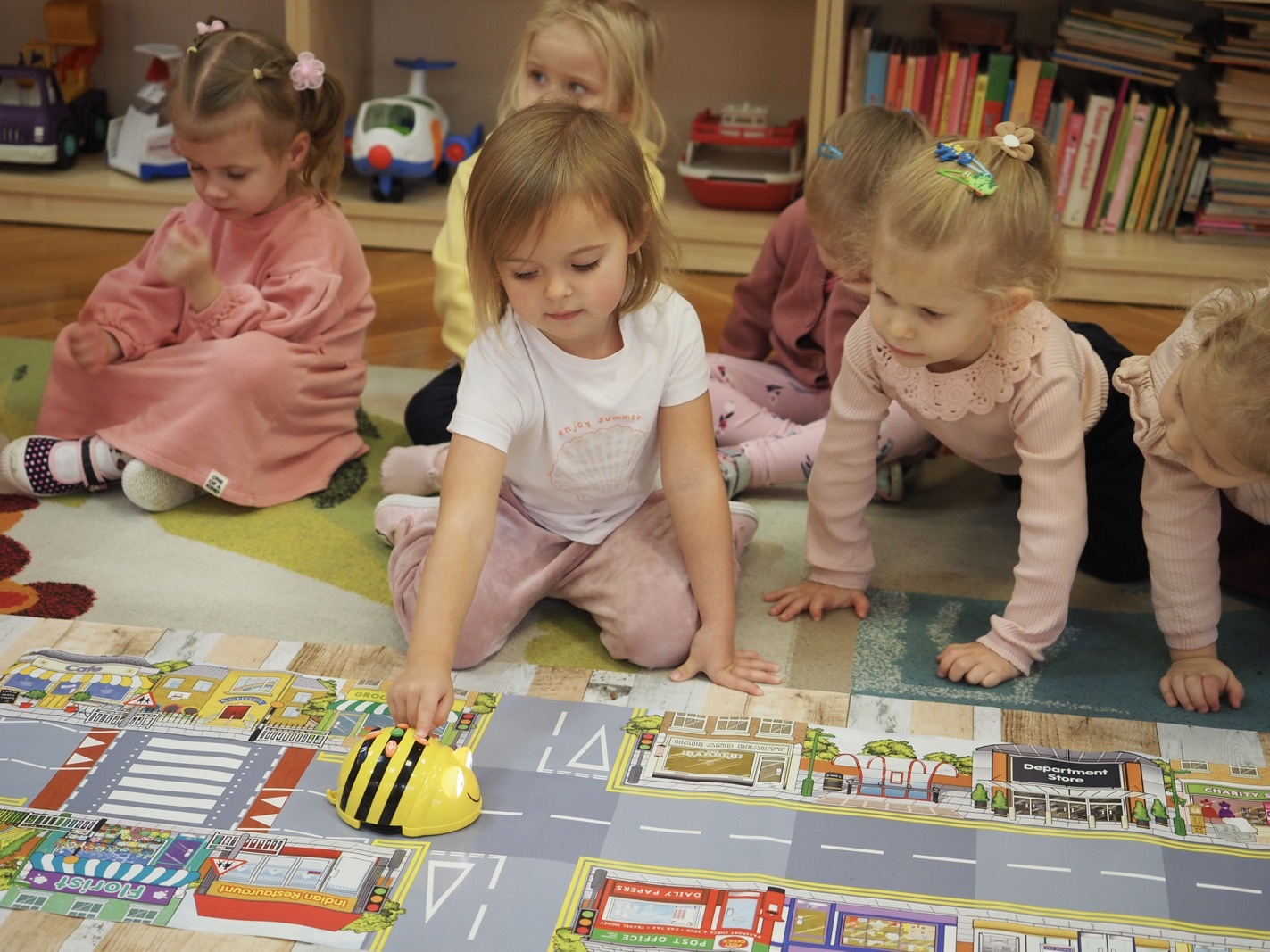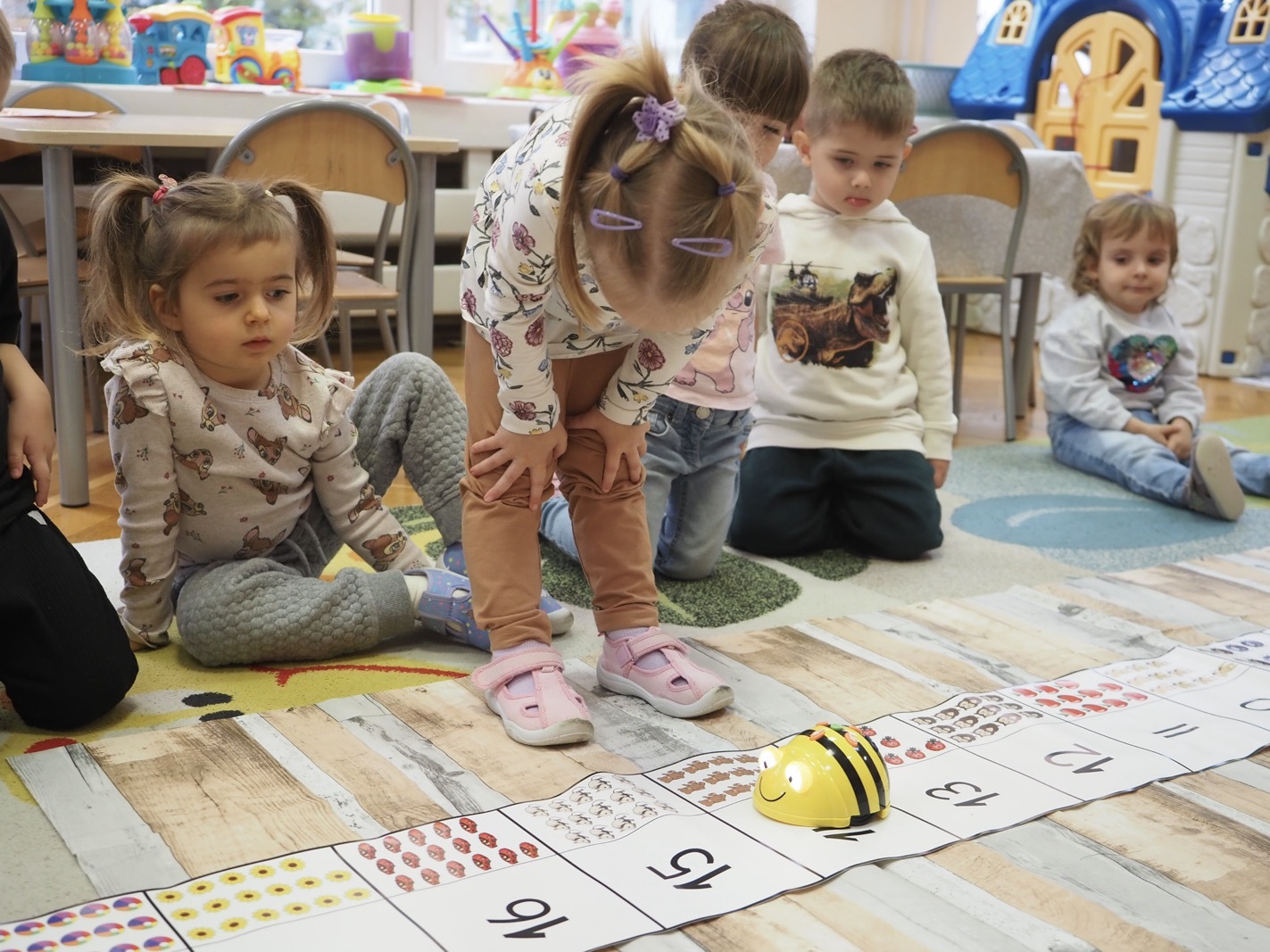 Kodowanie i programowanie - grupa 1. Kodowanie i programowanie przedszkolne opiera się na nauce poprzez zabawę, rozwijając logiczne myślenie, kreatywność i rozwiązywanie problemów bez konieczności używania komputera, np. za pomocą układanek, gier z kubeczkami czy maty do kodowania. Dzieci poznają podstawowe koncepcje programowania, takie jak sekwencje, tworzenie poleceń i rozumienie kodów.
