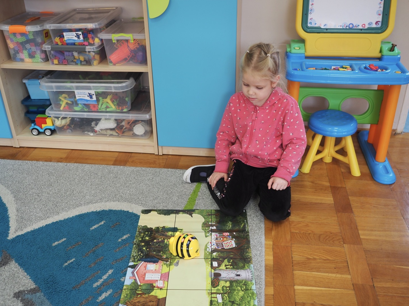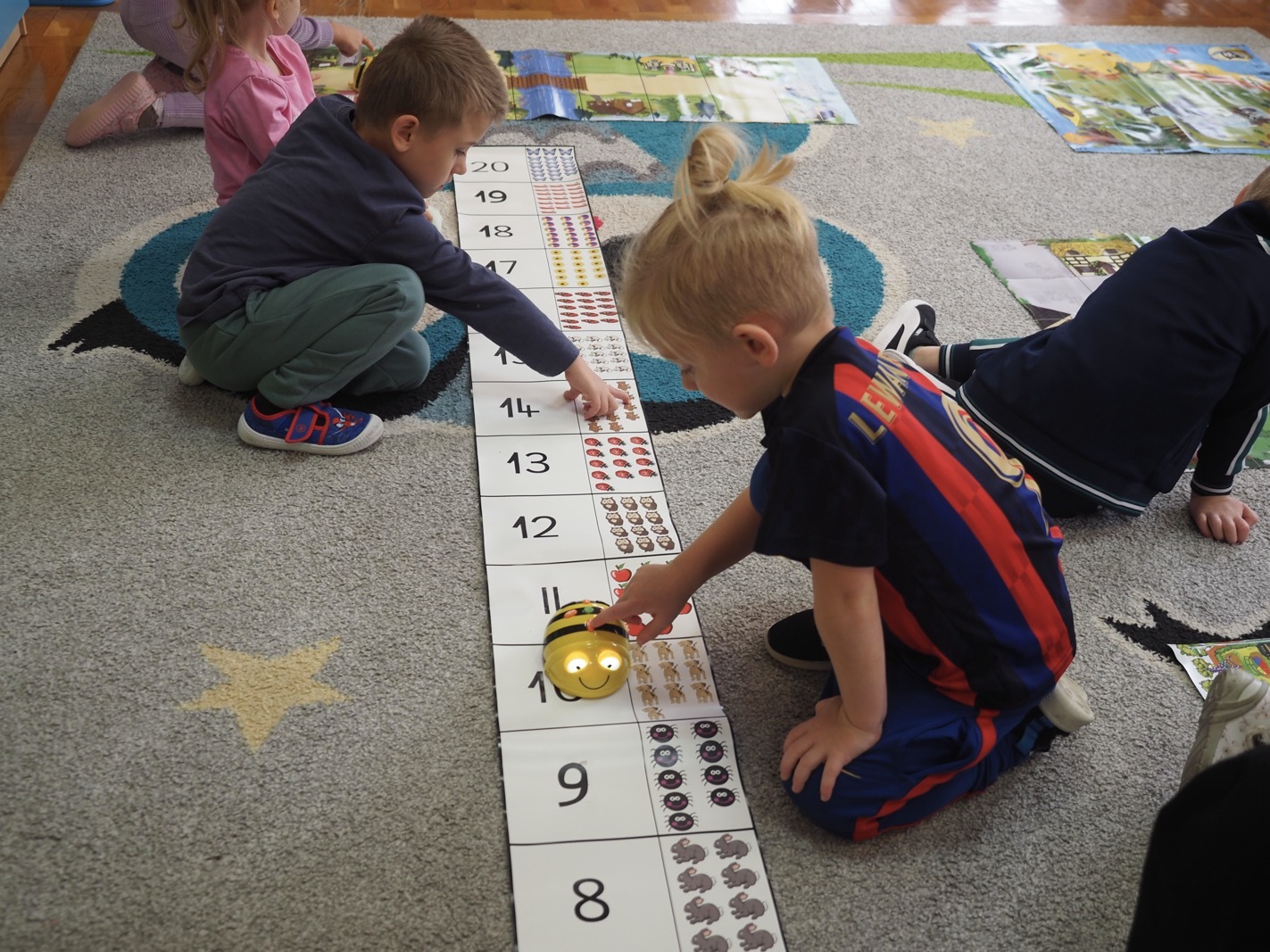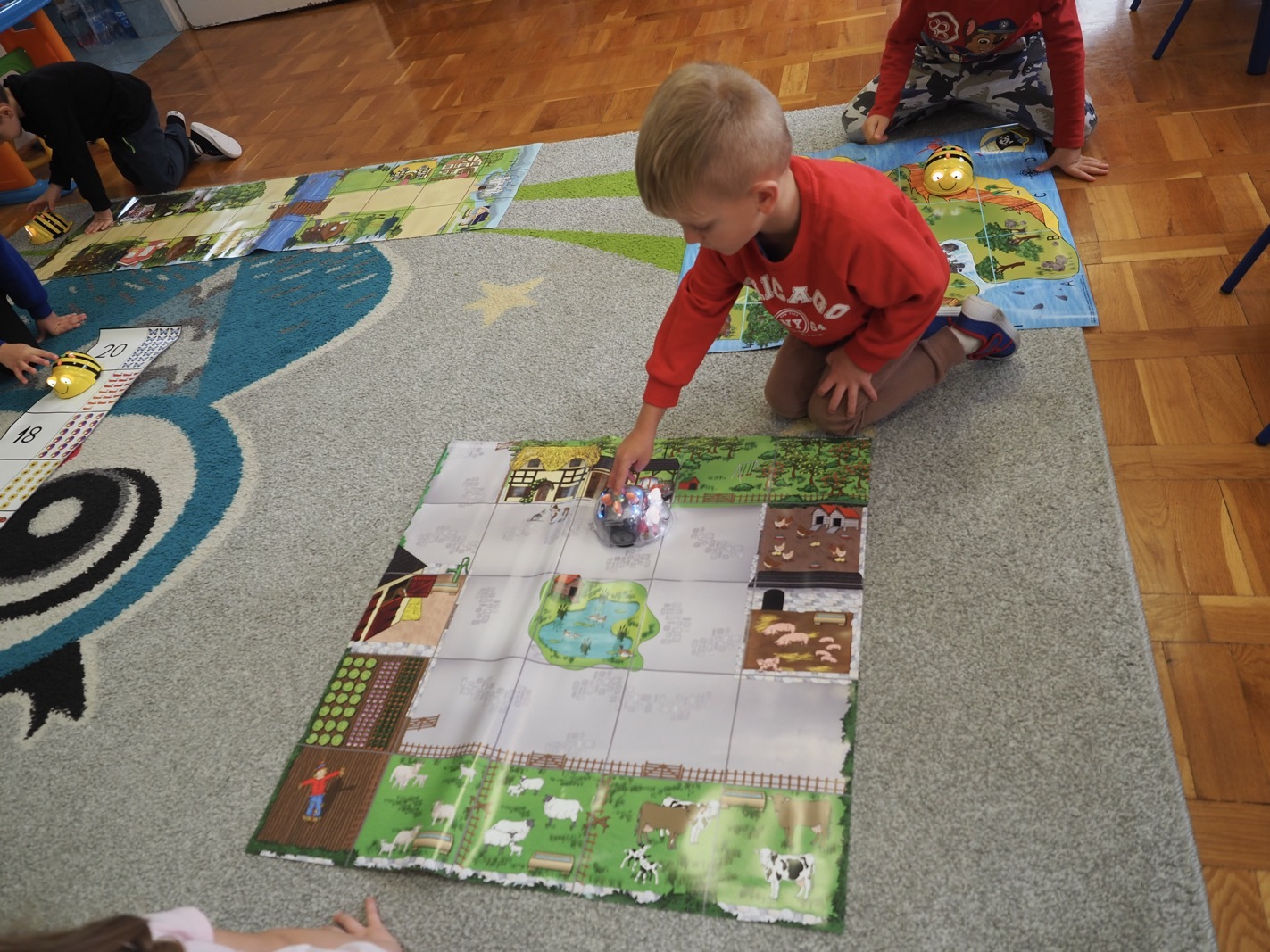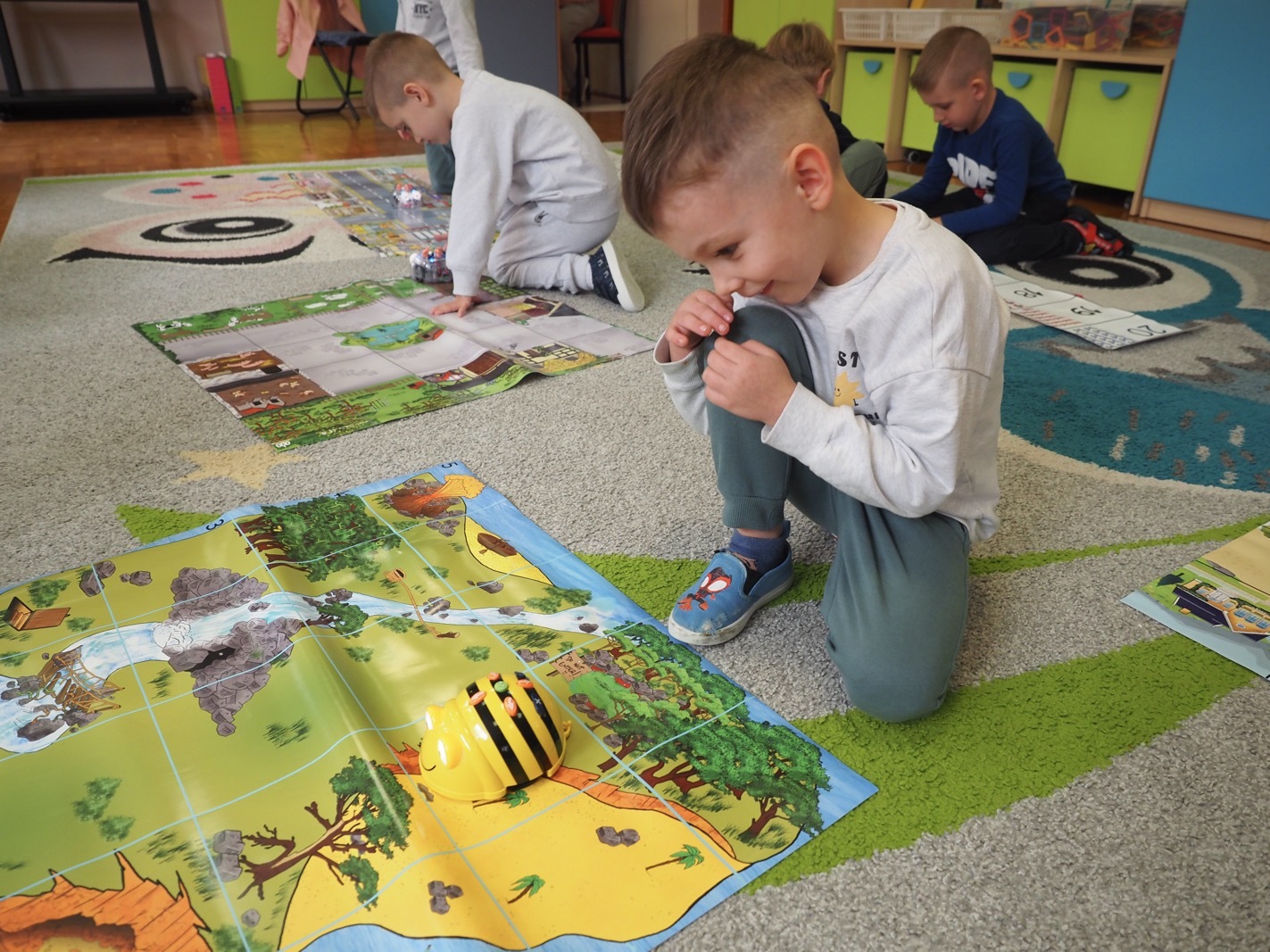 Kodowanie i programowanie - grupa 3. Kodowanie i programowanie przedszkolne opiera się na nauce poprzez zabawę, rozwijając logiczne myślenie, kreatywność i rozwiązywanie problemów bez konieczności używania komputera, np. za pomocą układanek, gier z kubeczkami czy maty do kodowania. Dzieci poznają podstawowe koncepcje programowania, takie jak sekwencje, tworzenie poleceń i rozumienie kodów.