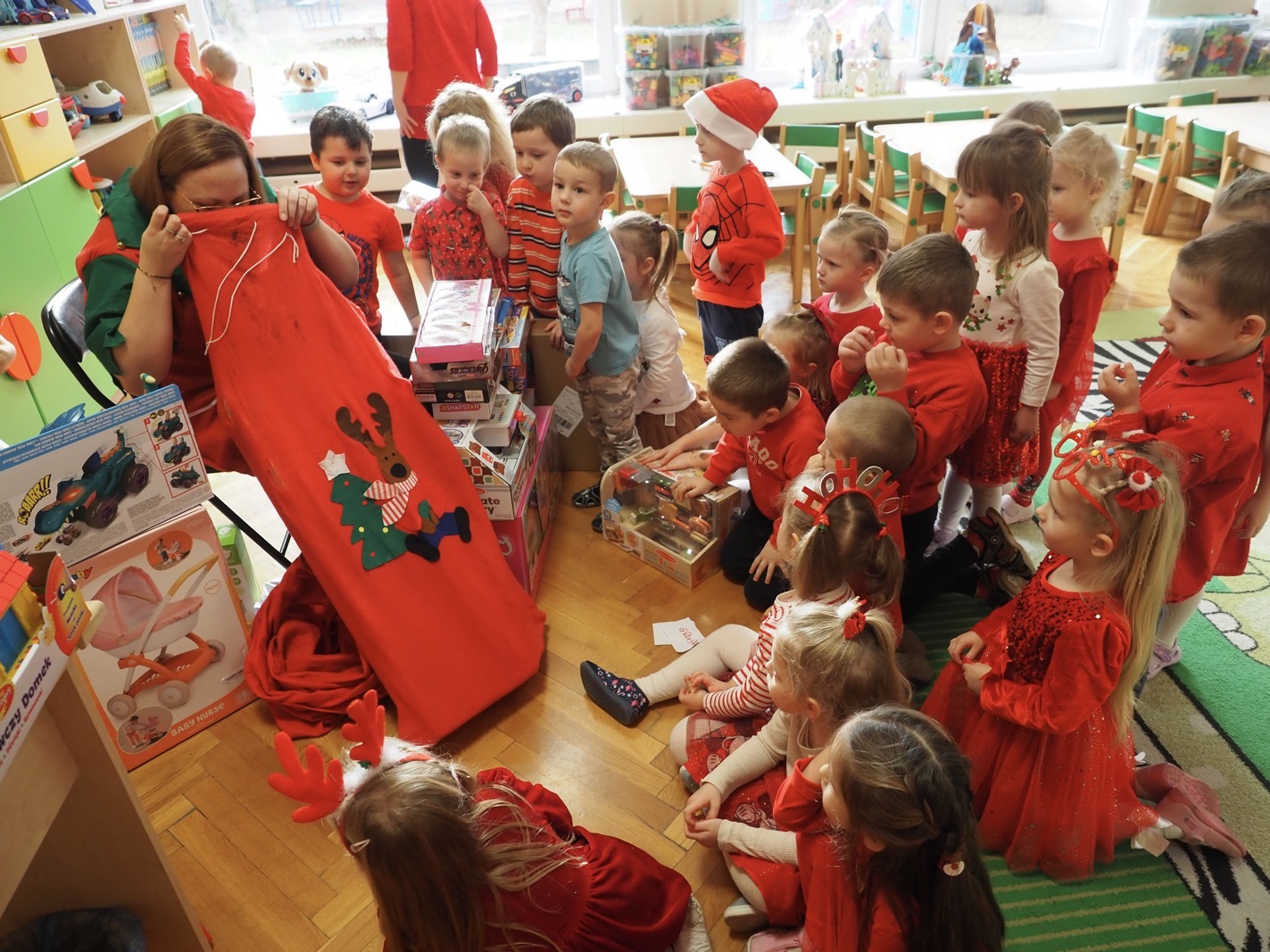 Dla wspaniałych przedszkolaków, wspaniałe prezenty. Mikołaj obdarował wszystkie dzieci prezentami do ich sal, czym sprawił im dużo radości.