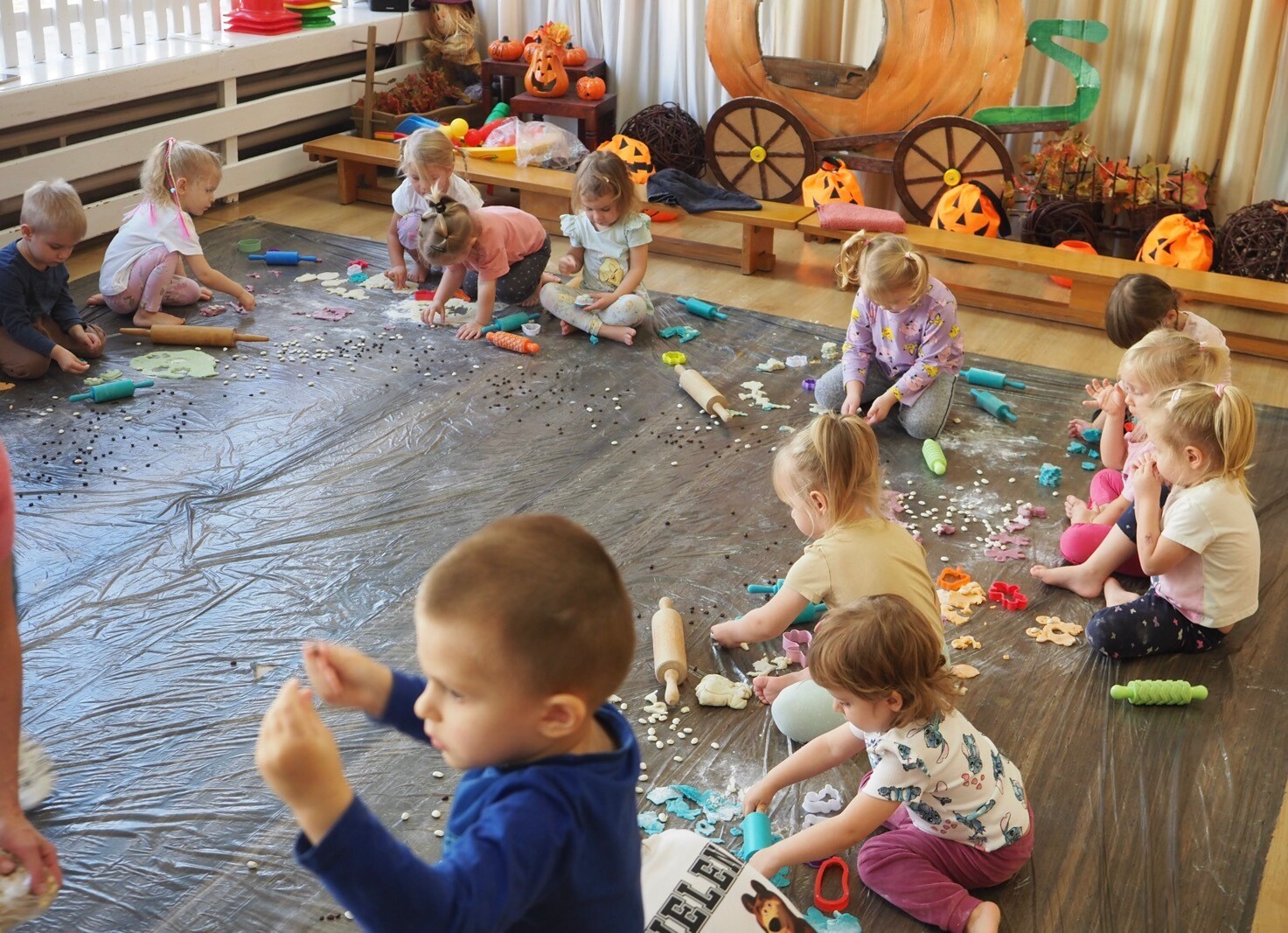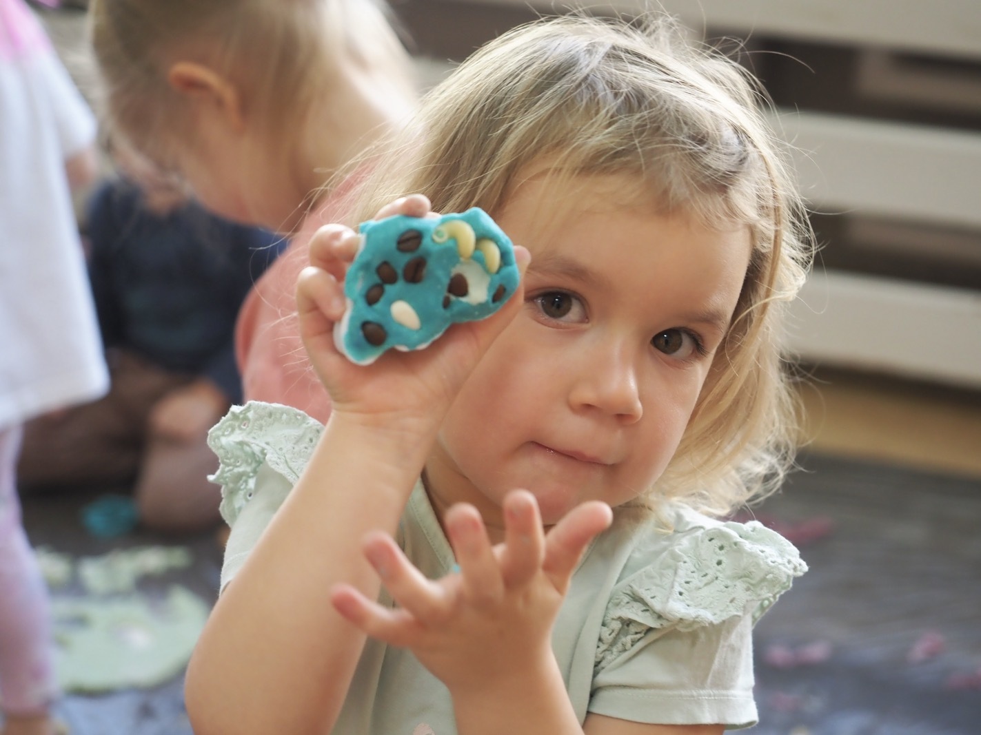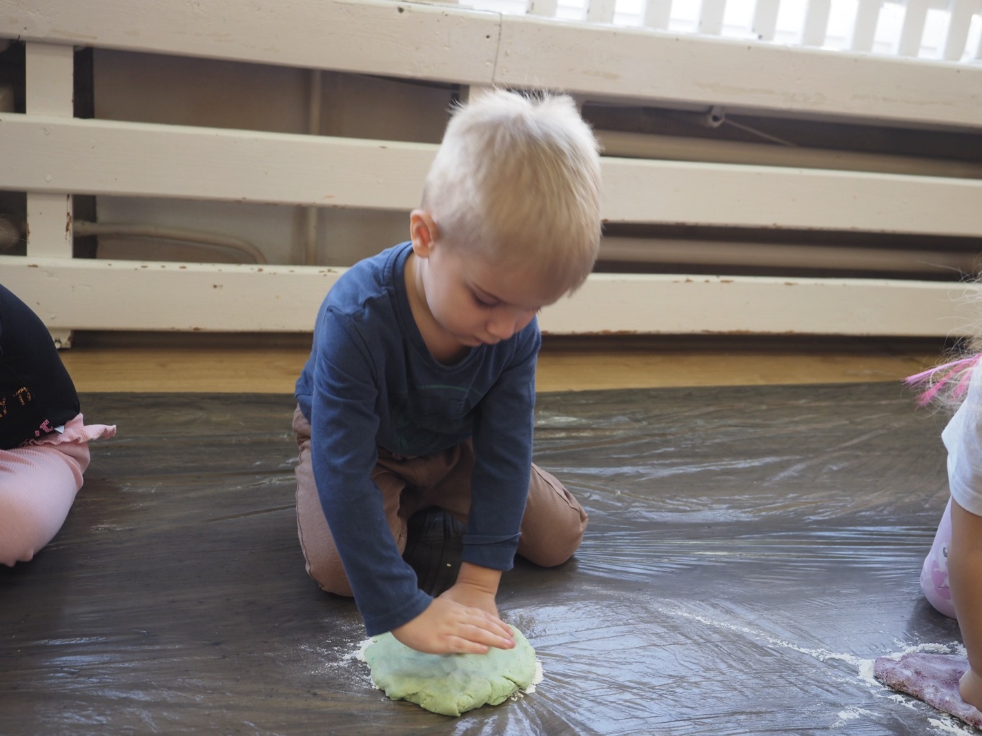 Sensoplastyka - grupa 1. Celem zajęć jest stymulacja rozwoju sensorycznego, kreatywności, samodzielności i świadomości ciała poprzez swobodną zabawę i doświadczanie.