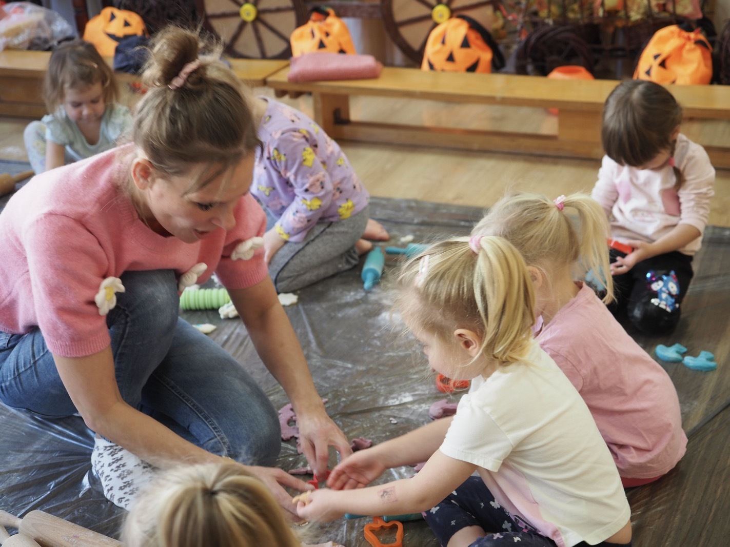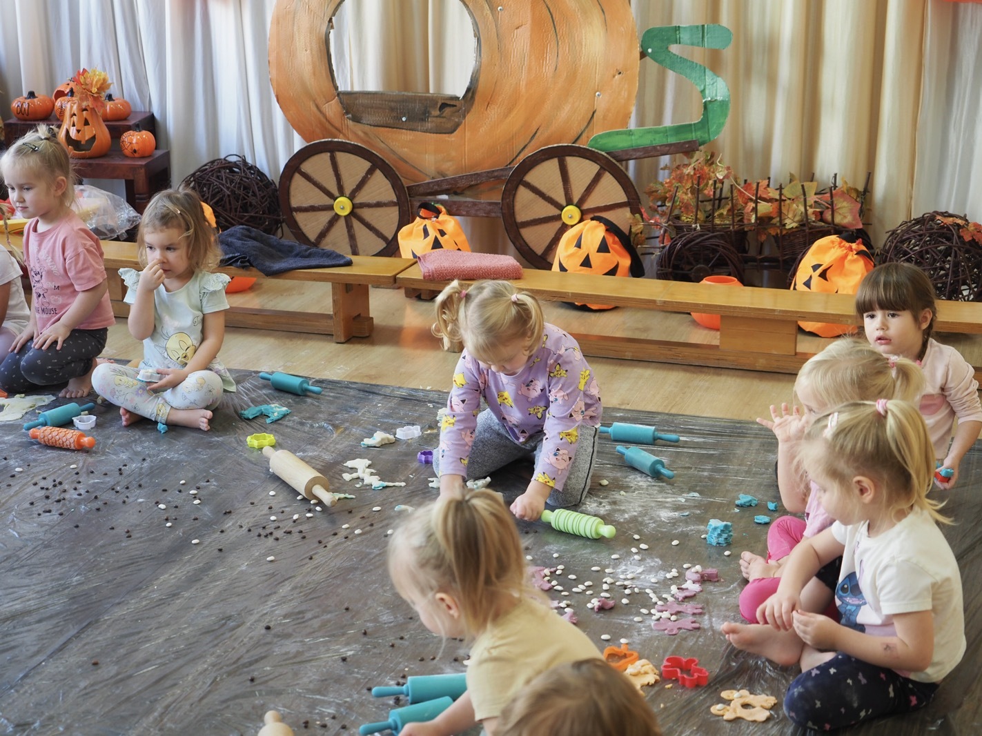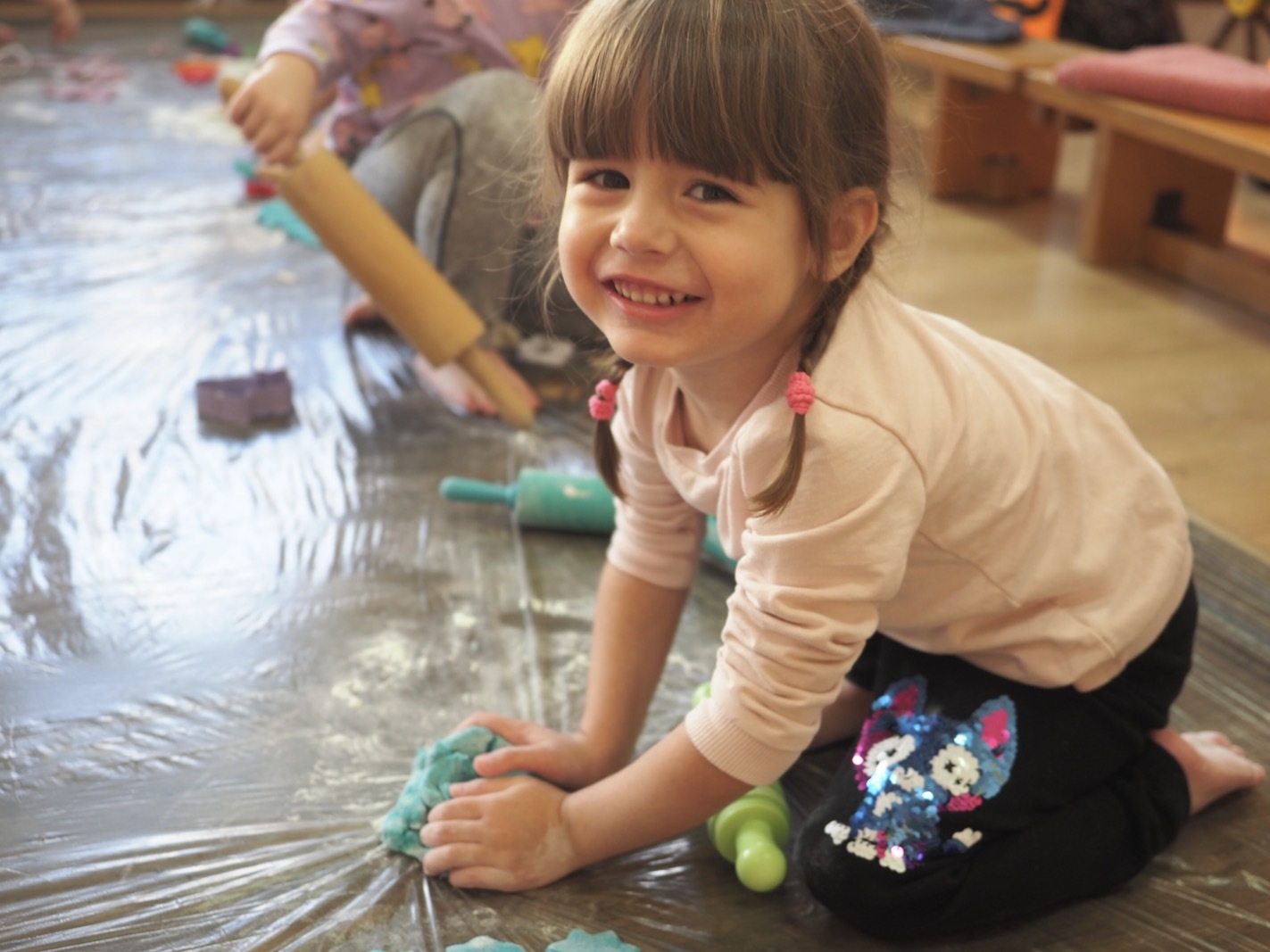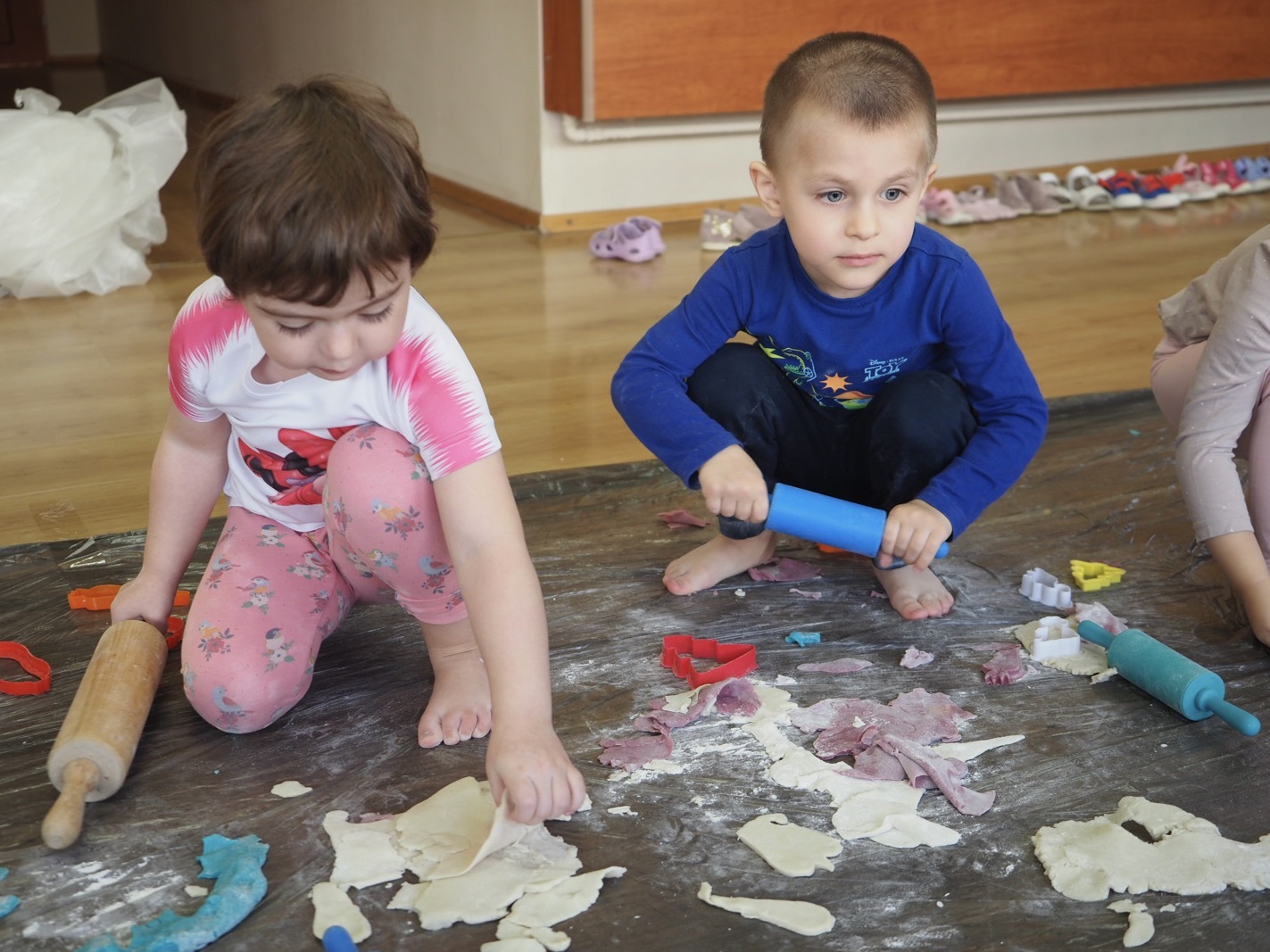 Sensoplastyka - grupa 1. Celem zajęć jest stymulacja rozwoju sensorycznego, kreatywności, samodzielności i świadomości ciała poprzez swobodną zabawę i doświadczanie.