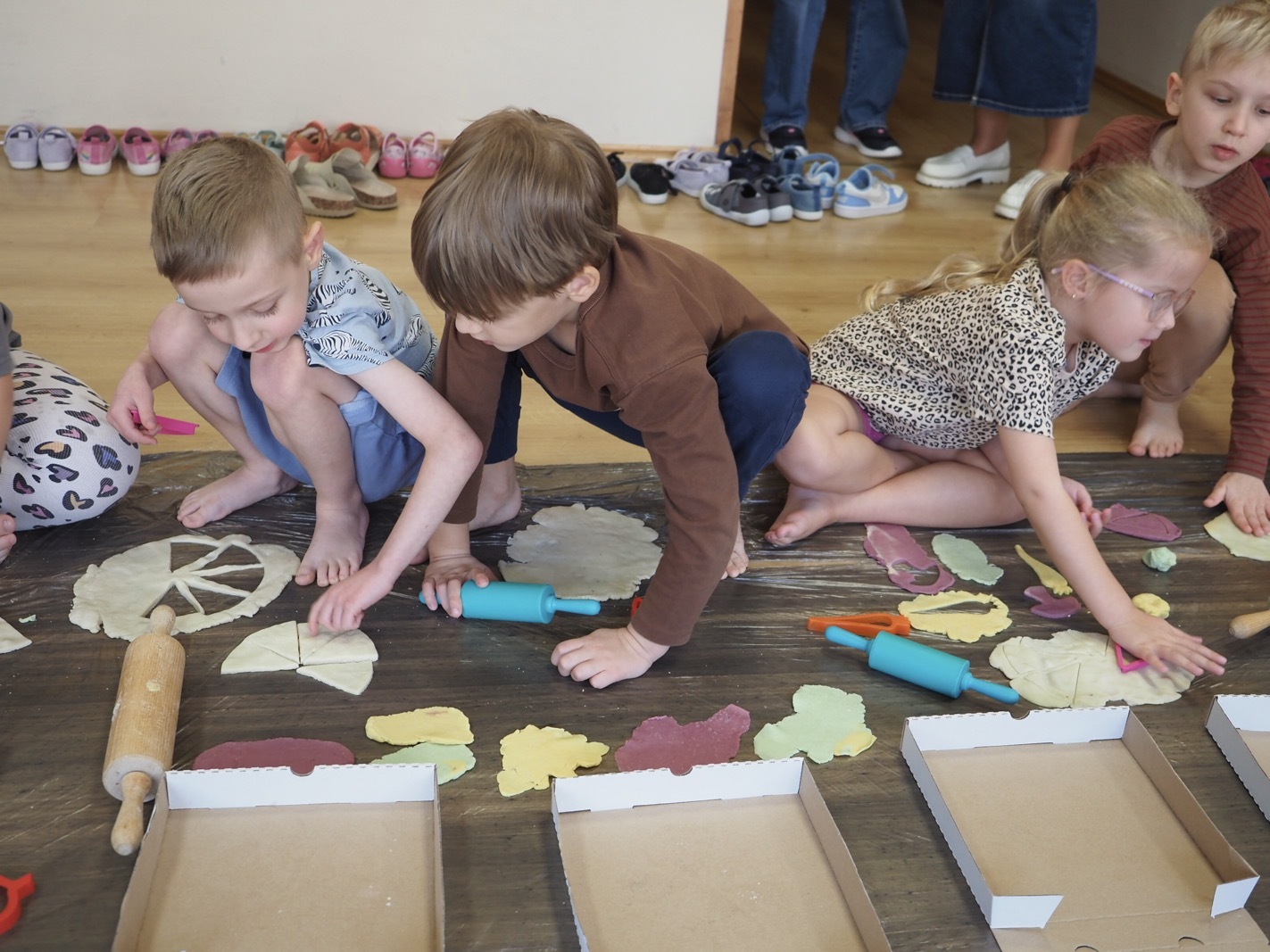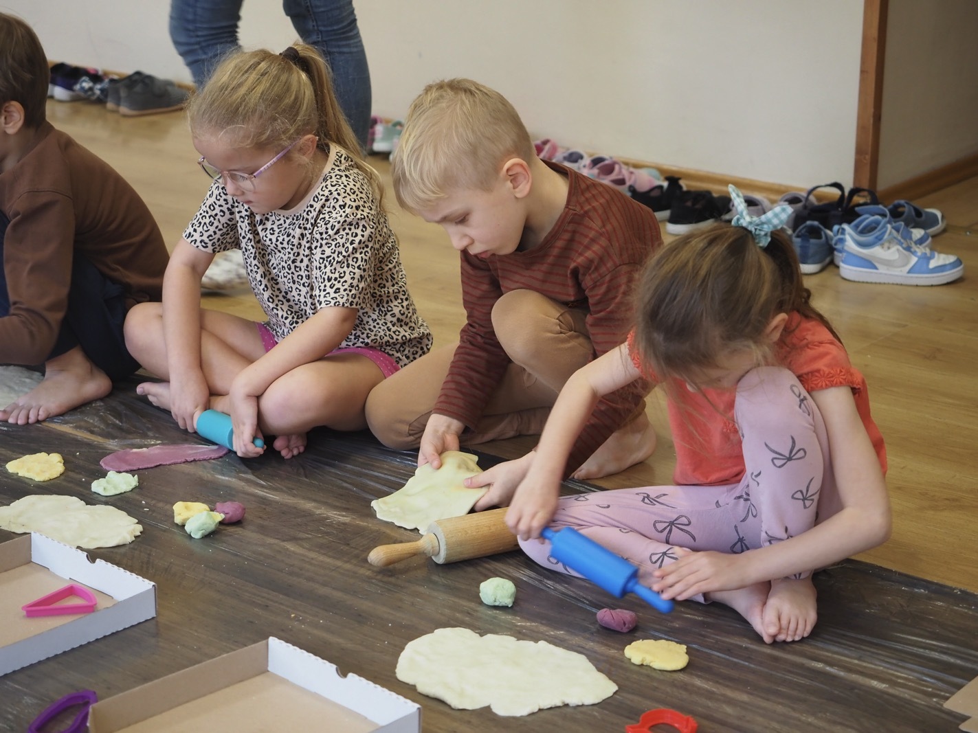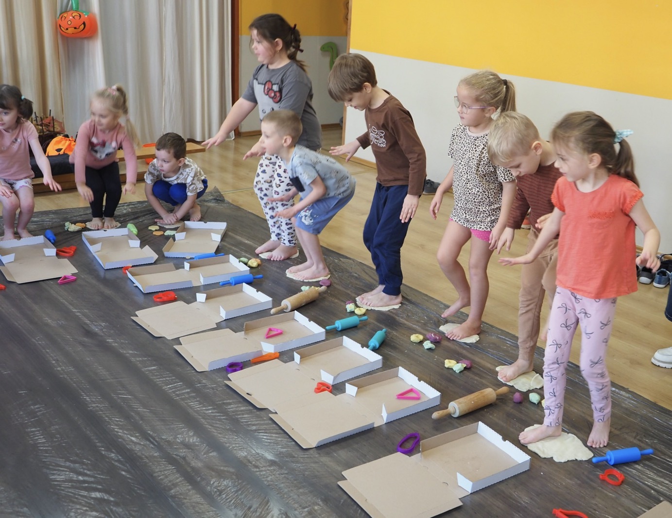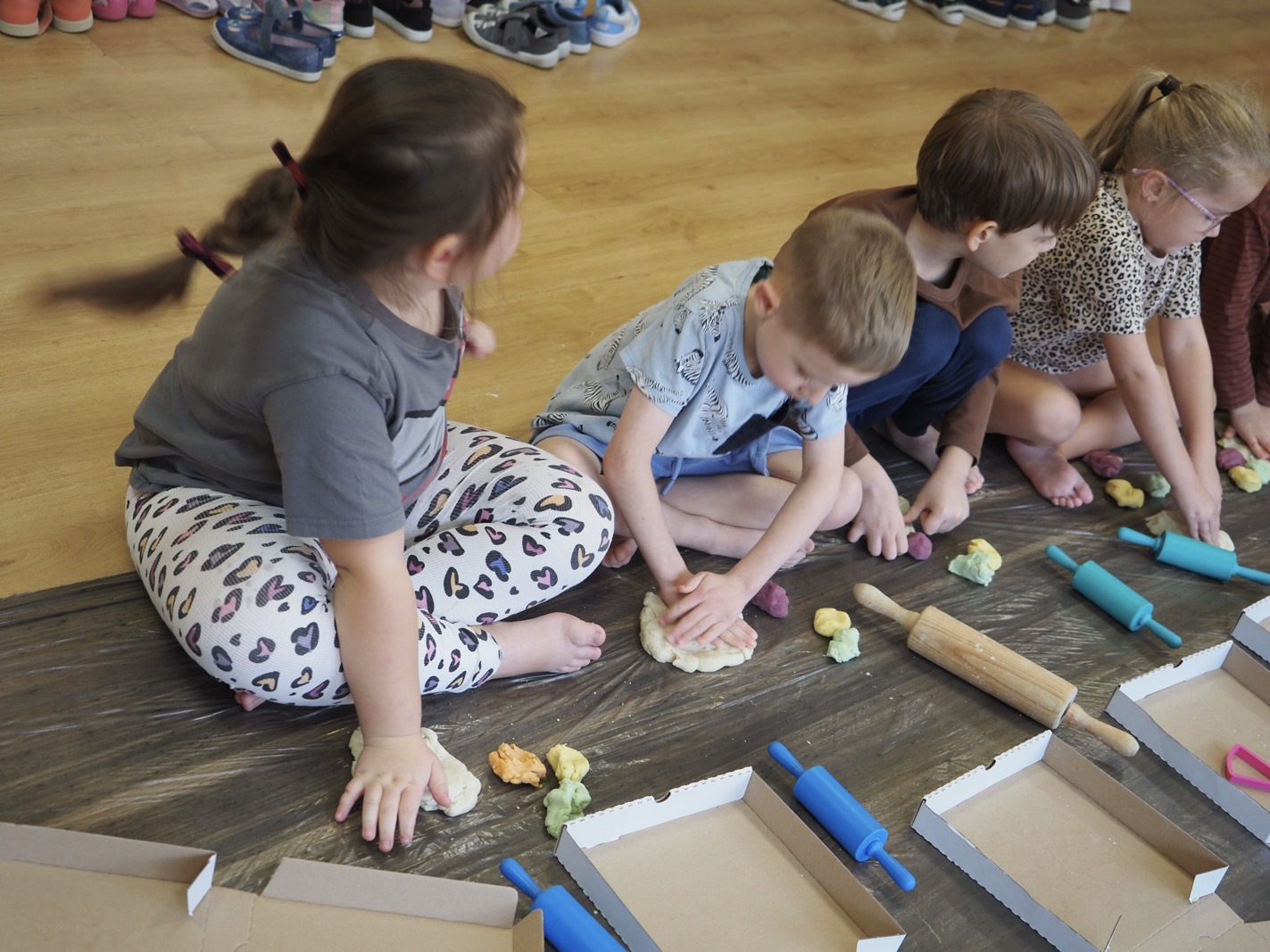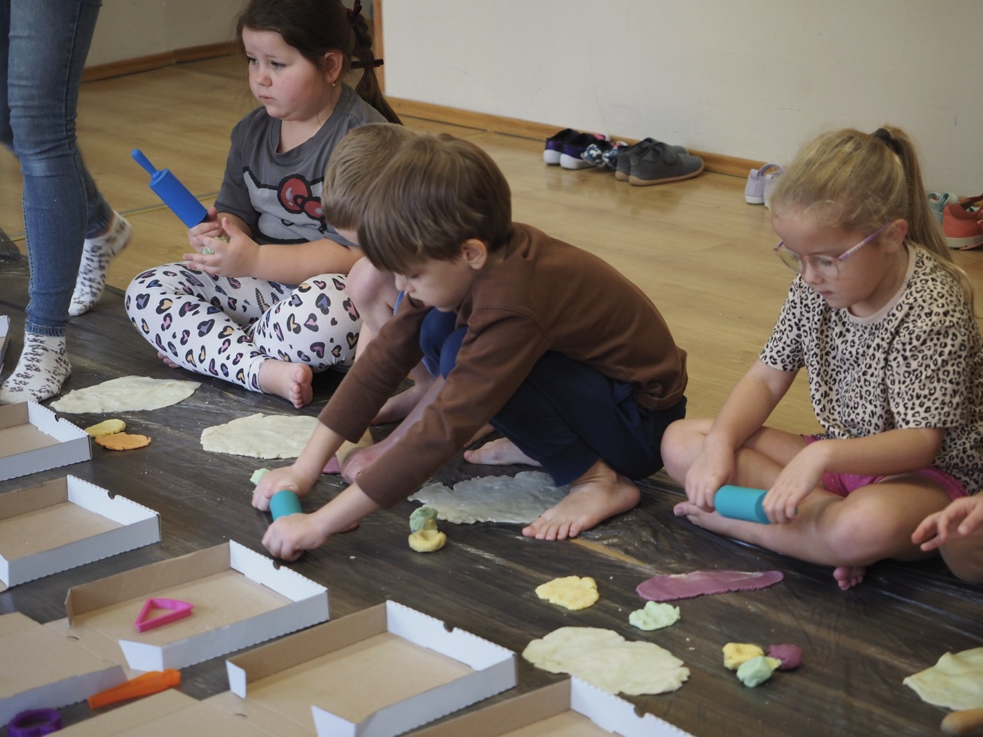 Sensoplastyka - grupa 4. Celem zajęć jest stymulacja rozwoju sensorycznego, kreatywności, samodzielności i świadomości ciała poprzez swobodną zabawę i doświadczanie.