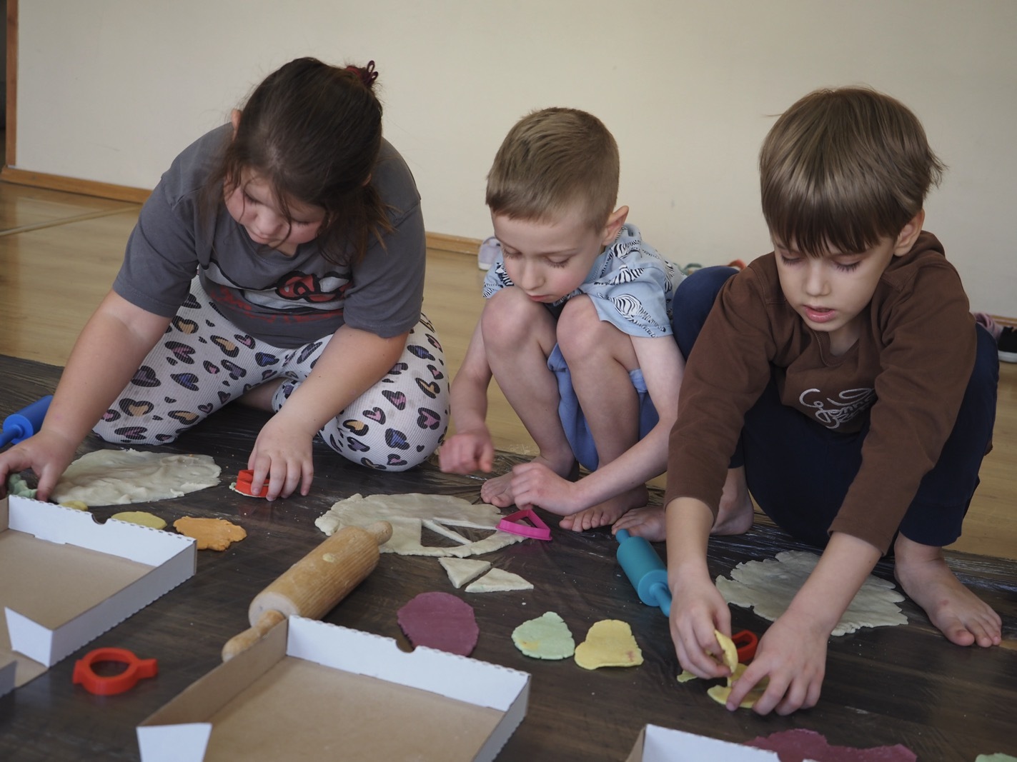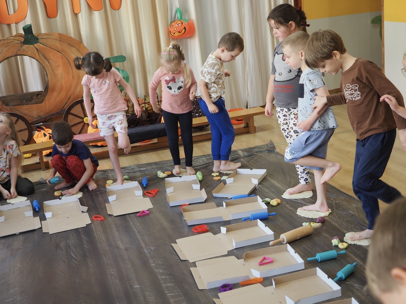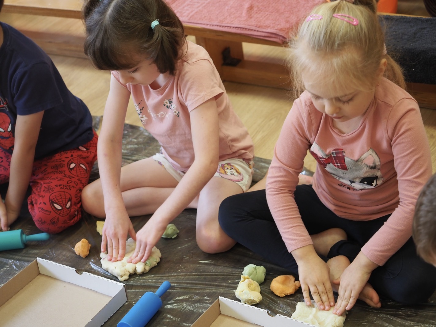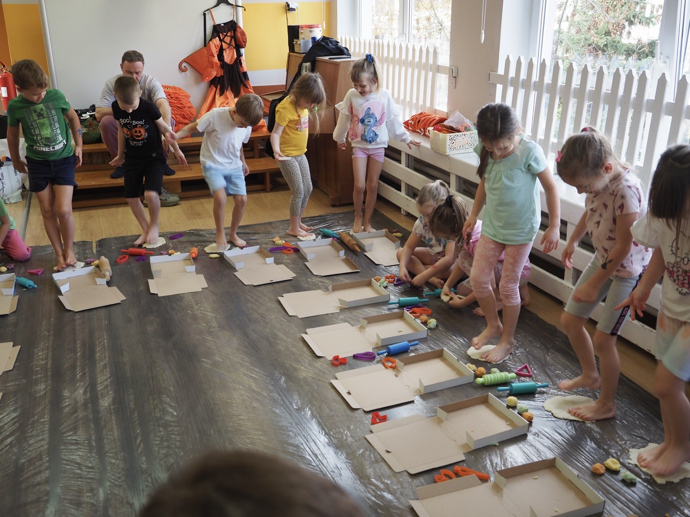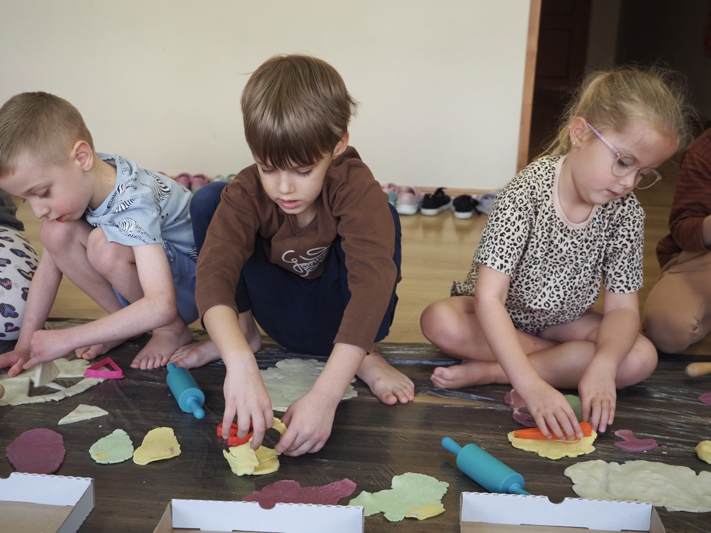 Sensoplastyka - grupa 4. Celem zajęć jest stymulacja rozwoju sensorycznego, kreatywności, samodzielności i świadomości ciała poprzez swobodną zabawę i doświadczanie.