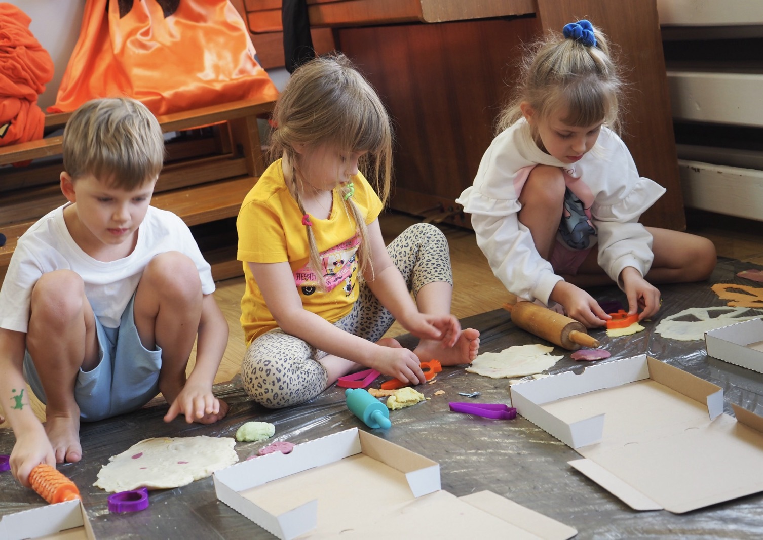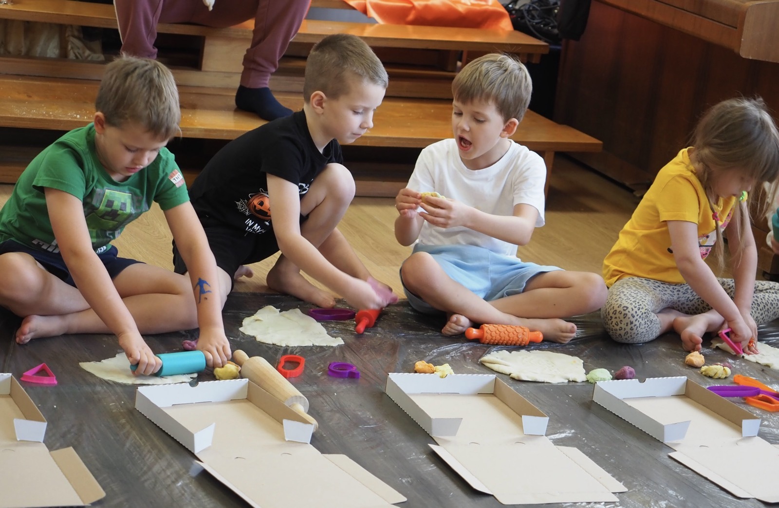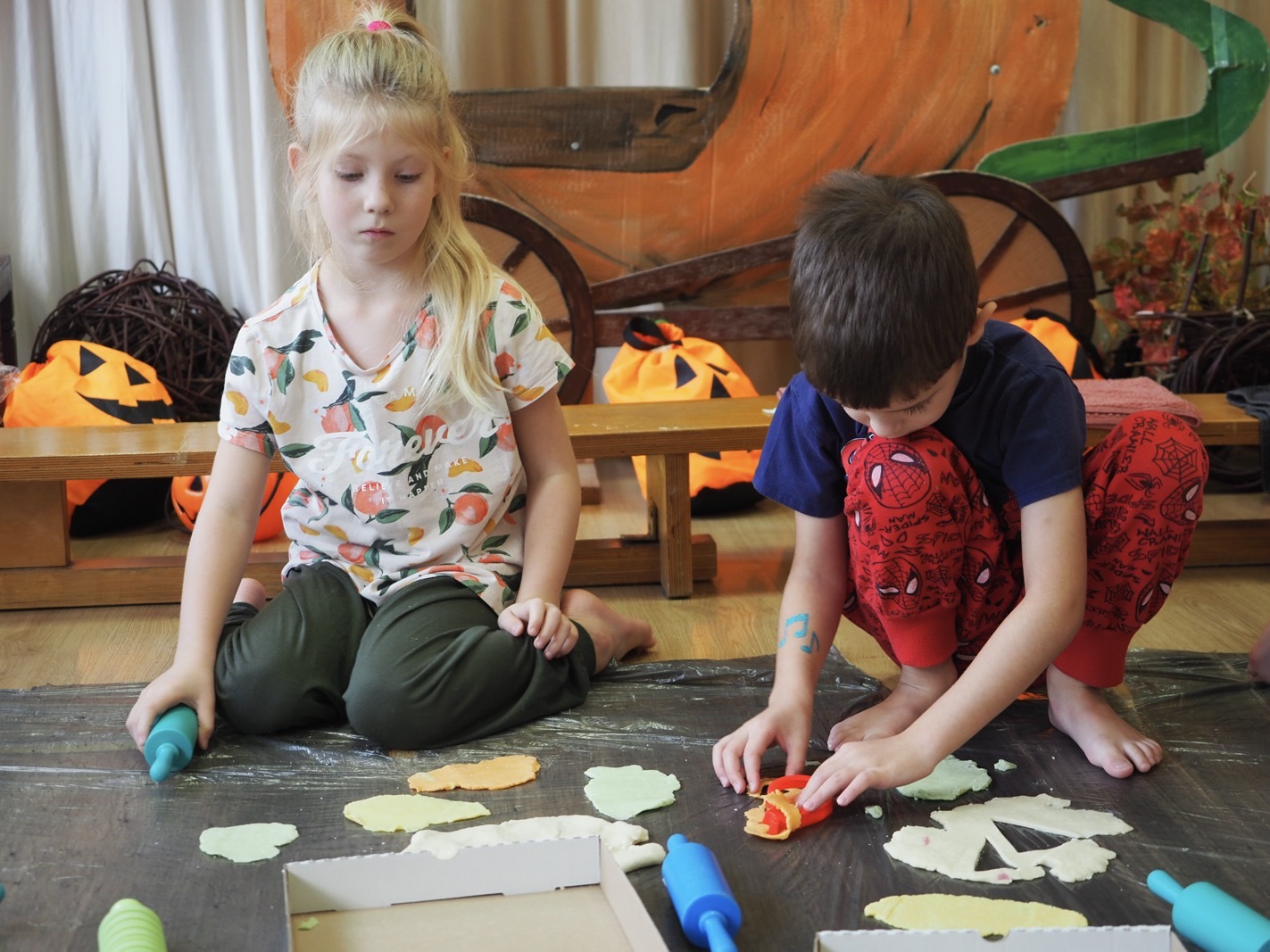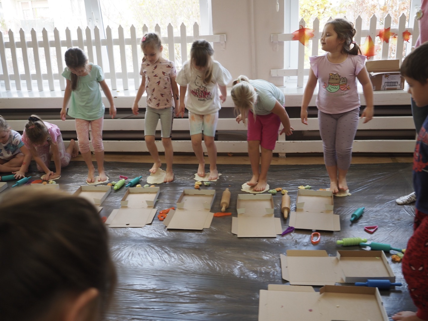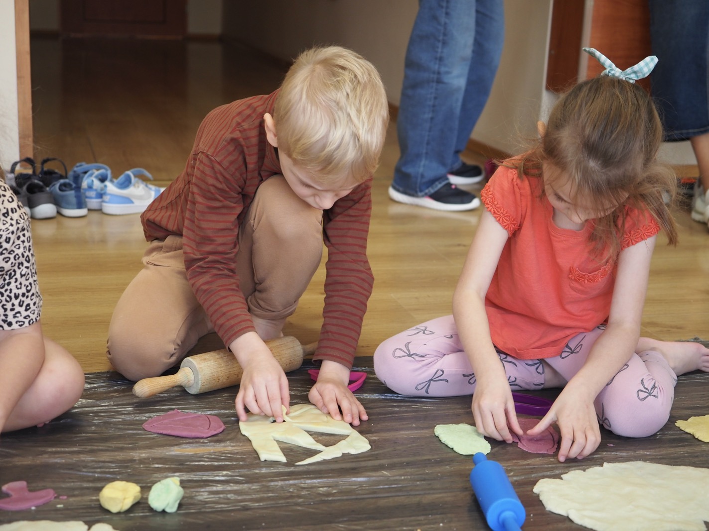 Sensoplastyka - grupa 4. Celem zajęć jest stymulacja rozwoju sensorycznego, kreatywności, samodzielności i świadomości ciała poprzez swobodną zabawę i doświadczanie.