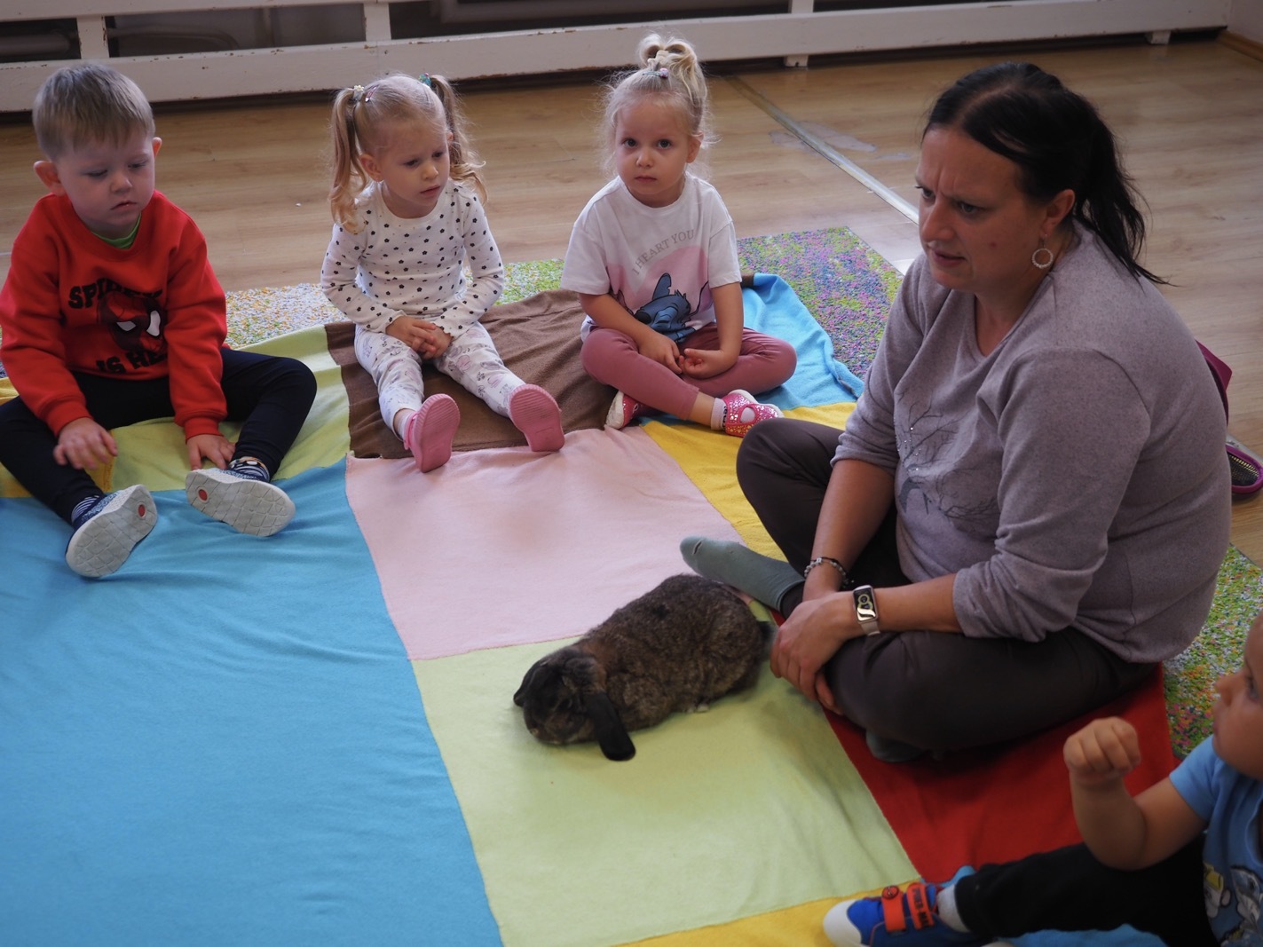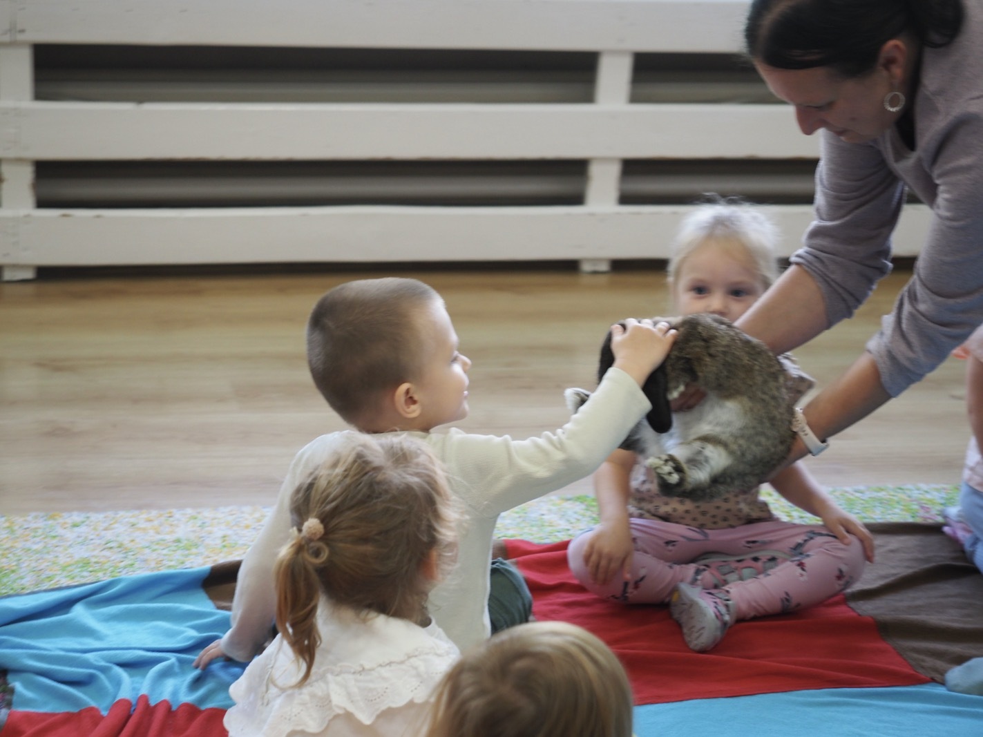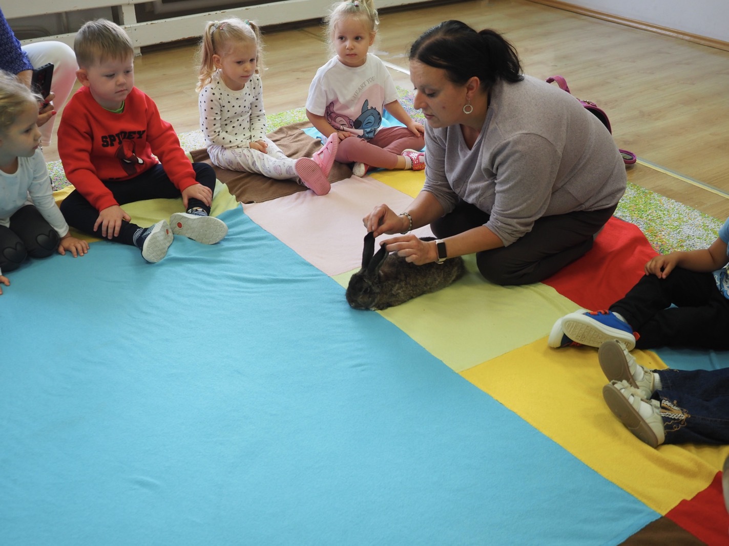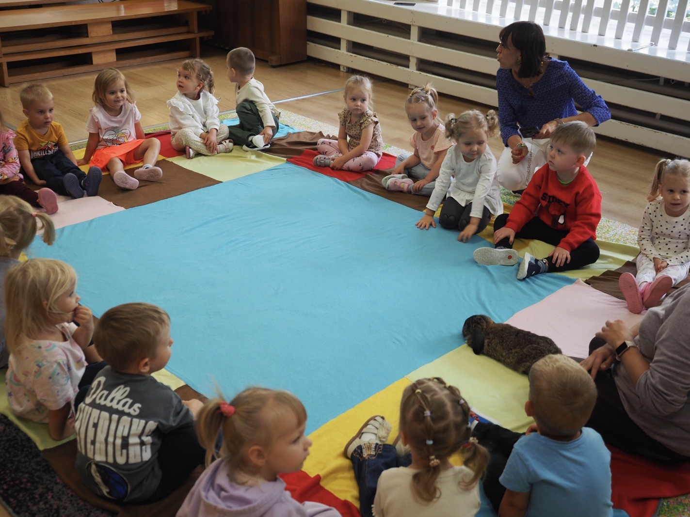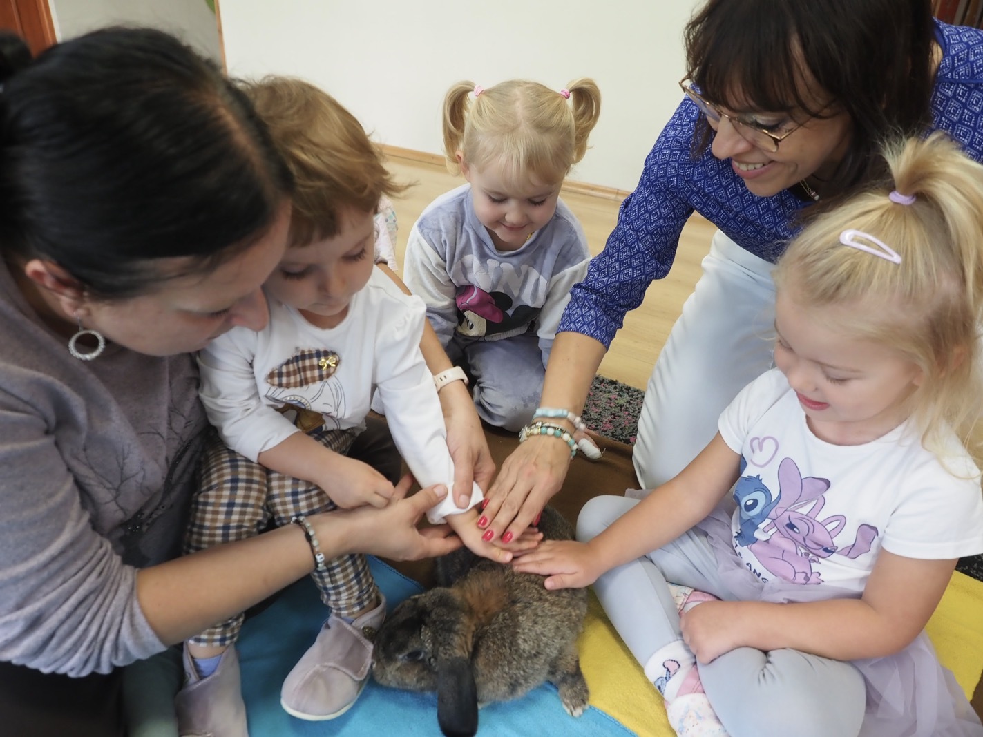 Dziś poznaliśmy cudownego króliczka - grupa 1. Każdy mógł pogłaskać zwierzątko i sprawdzić jakie ma długie i ciepłe uszka. Pierwsze w tym roku Warsztaty Przyrodnicze - Zwierzaki Cudaki. Kolejne już w październiku, wtedy poznamy inne zwierzątko.