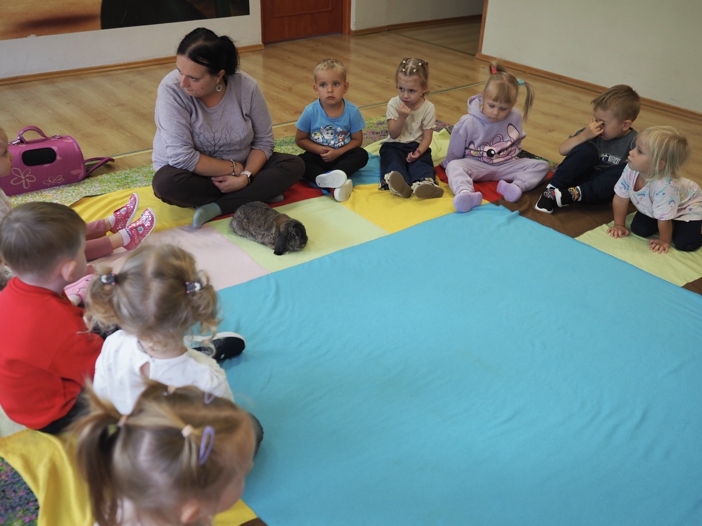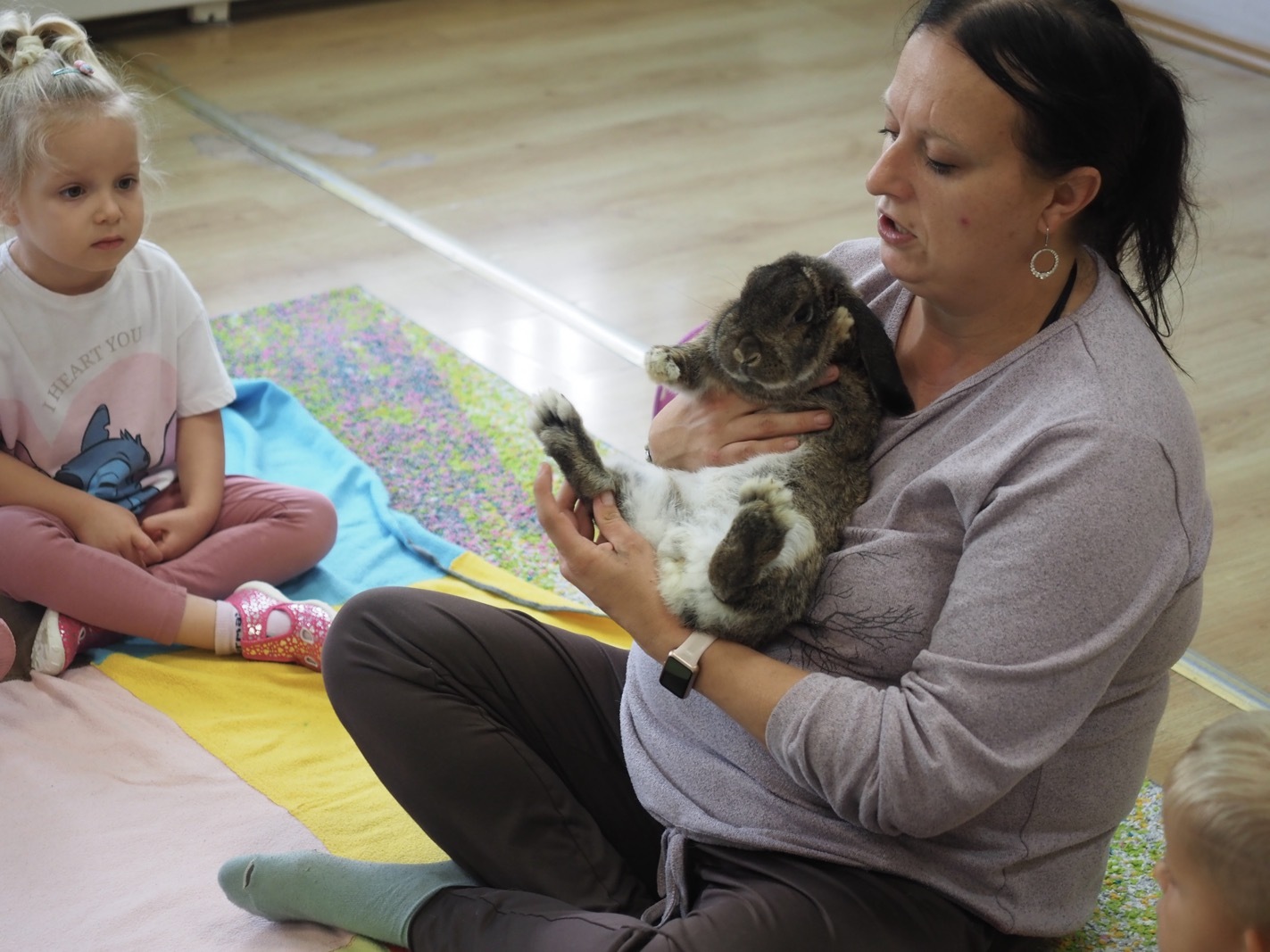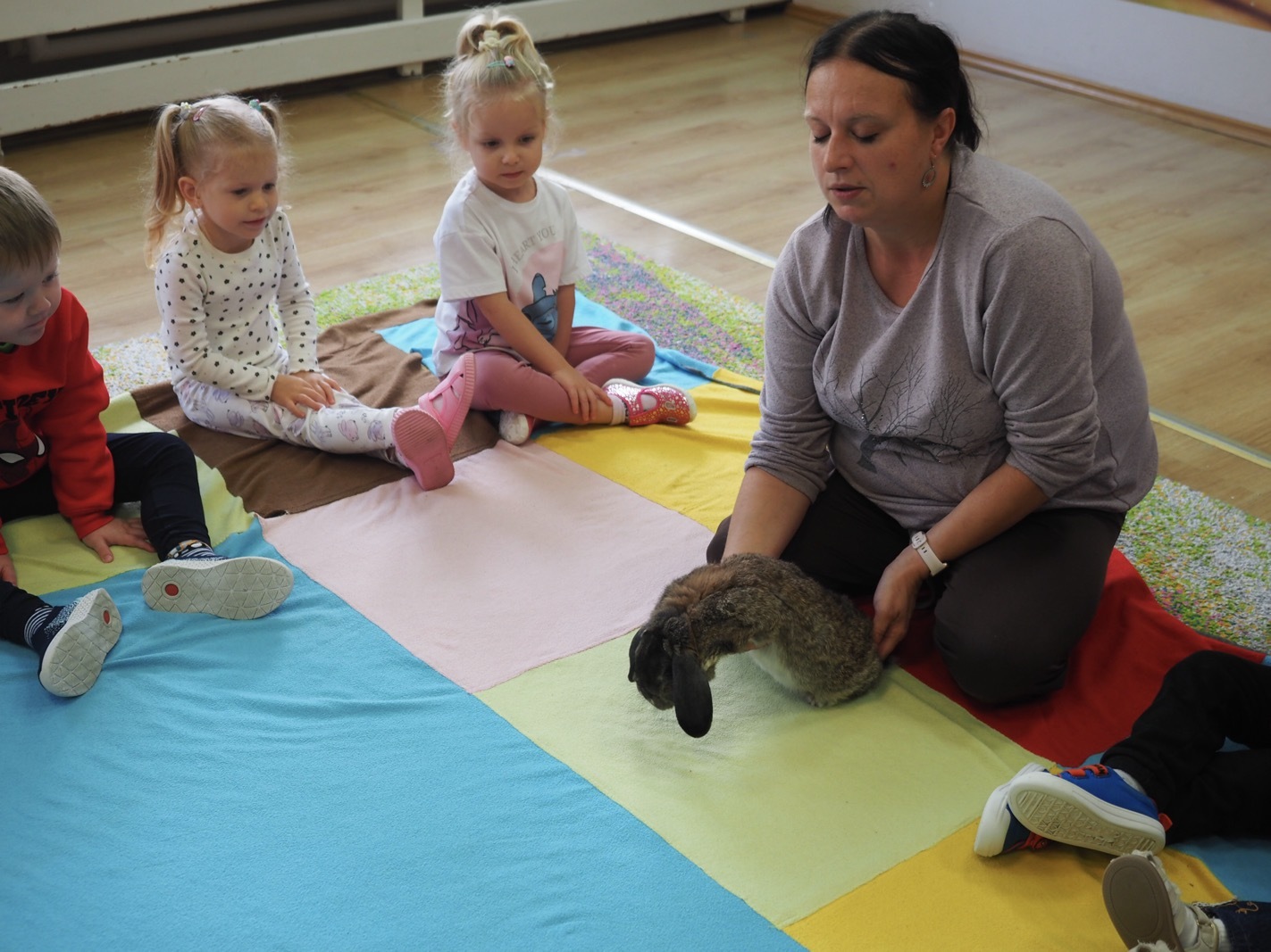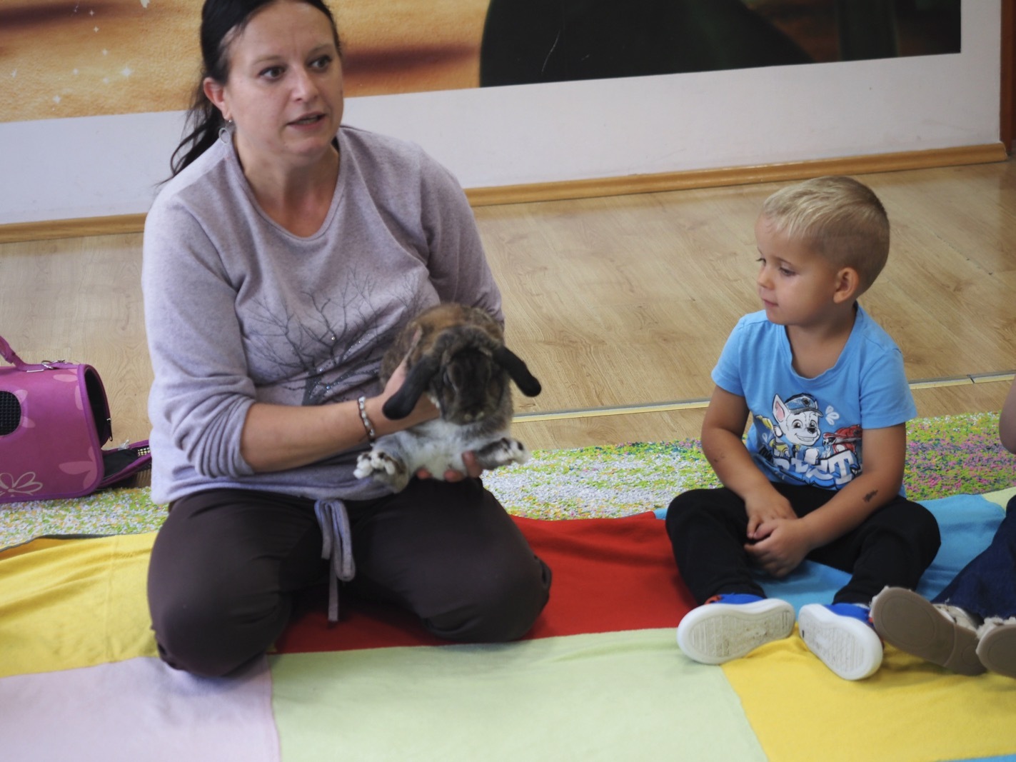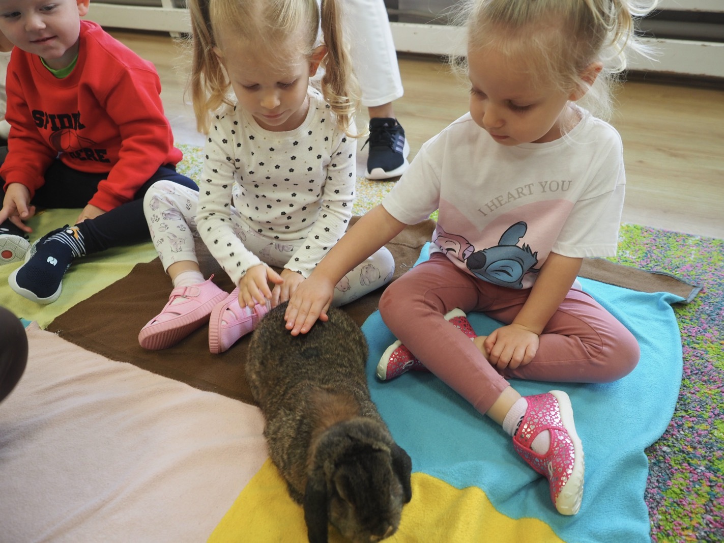Dziś poznaliśmy cudownego króliczka - grupa 1. Każdy mógł pogłaskać zwierzątko i sprawdzić jakie ma długie i ciepłe uszka. Pierwsze w tym roku Warsztaty Przyrodnicze - Zwierzaki Cudaki. Kolejne już w październiku, wtedy poznamy inne zwierzątko.