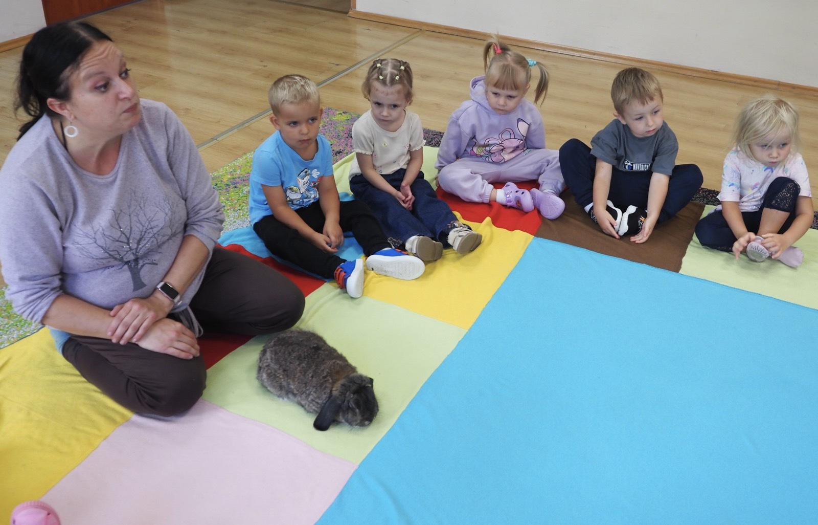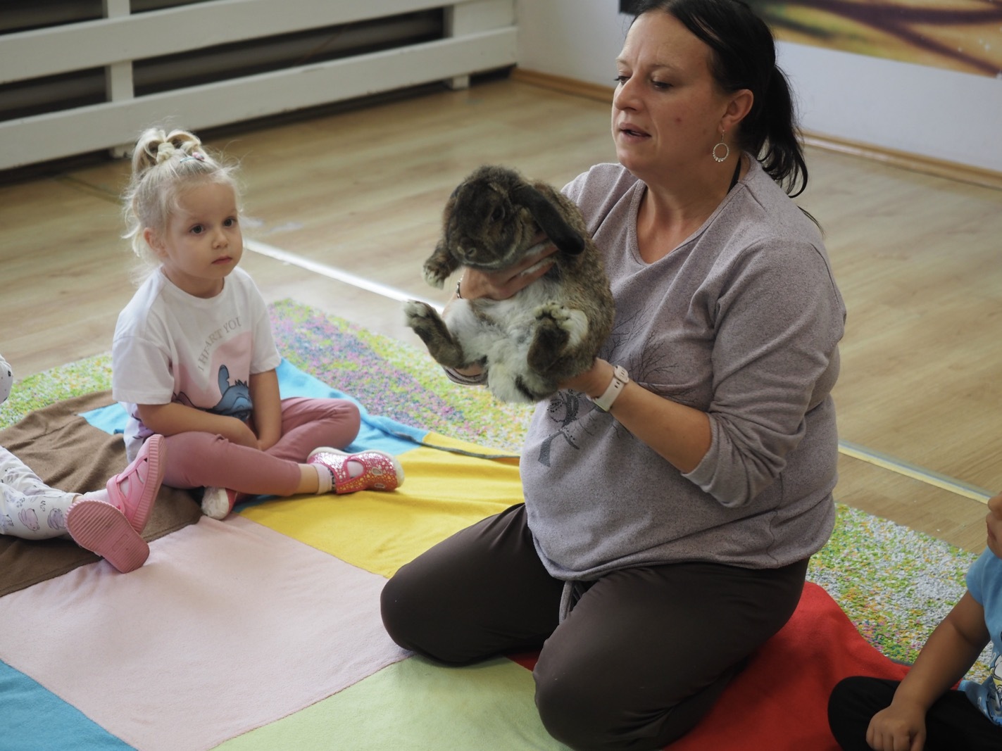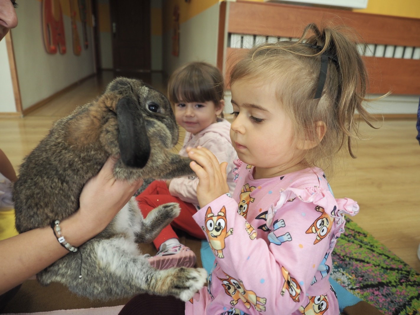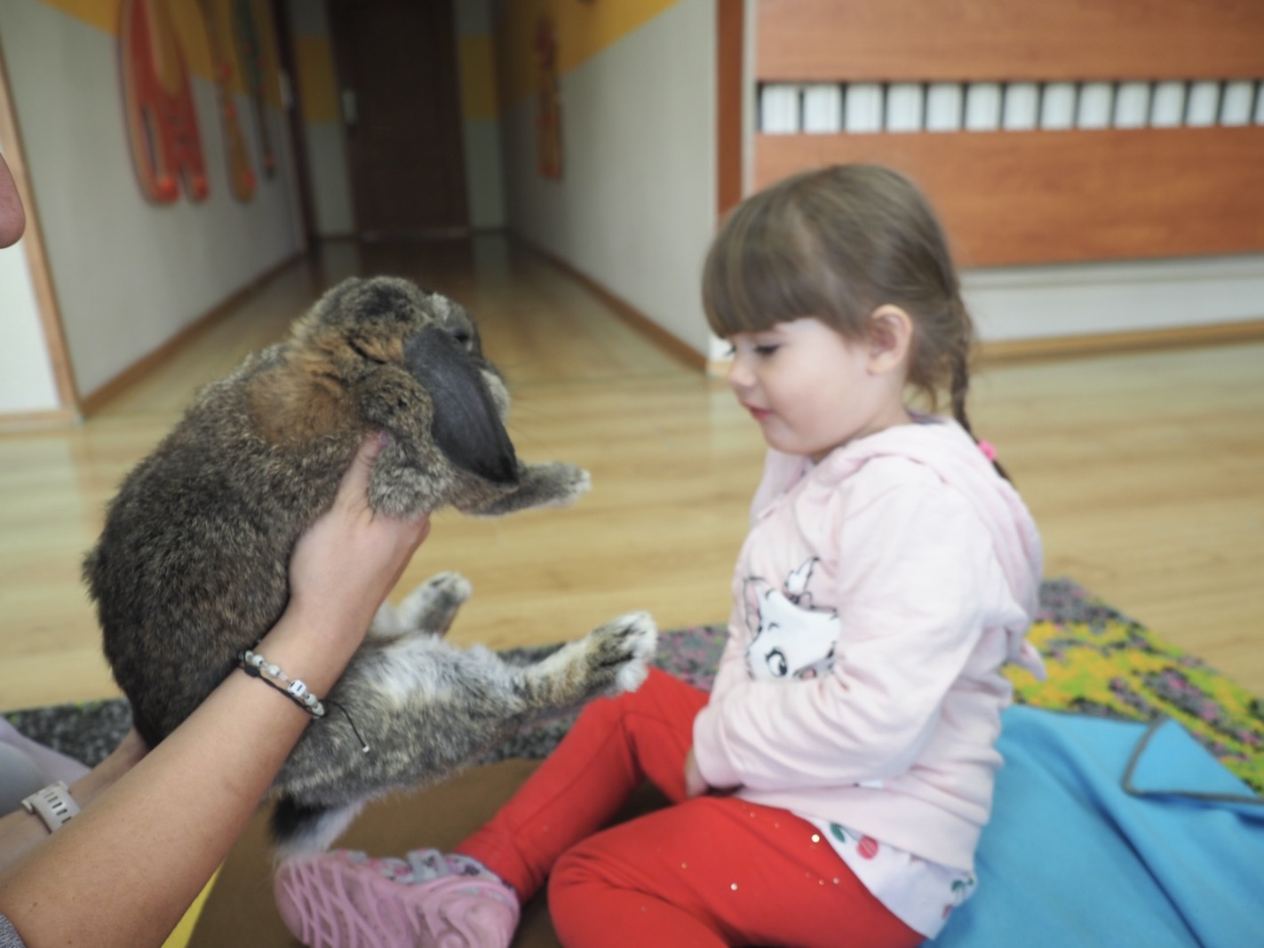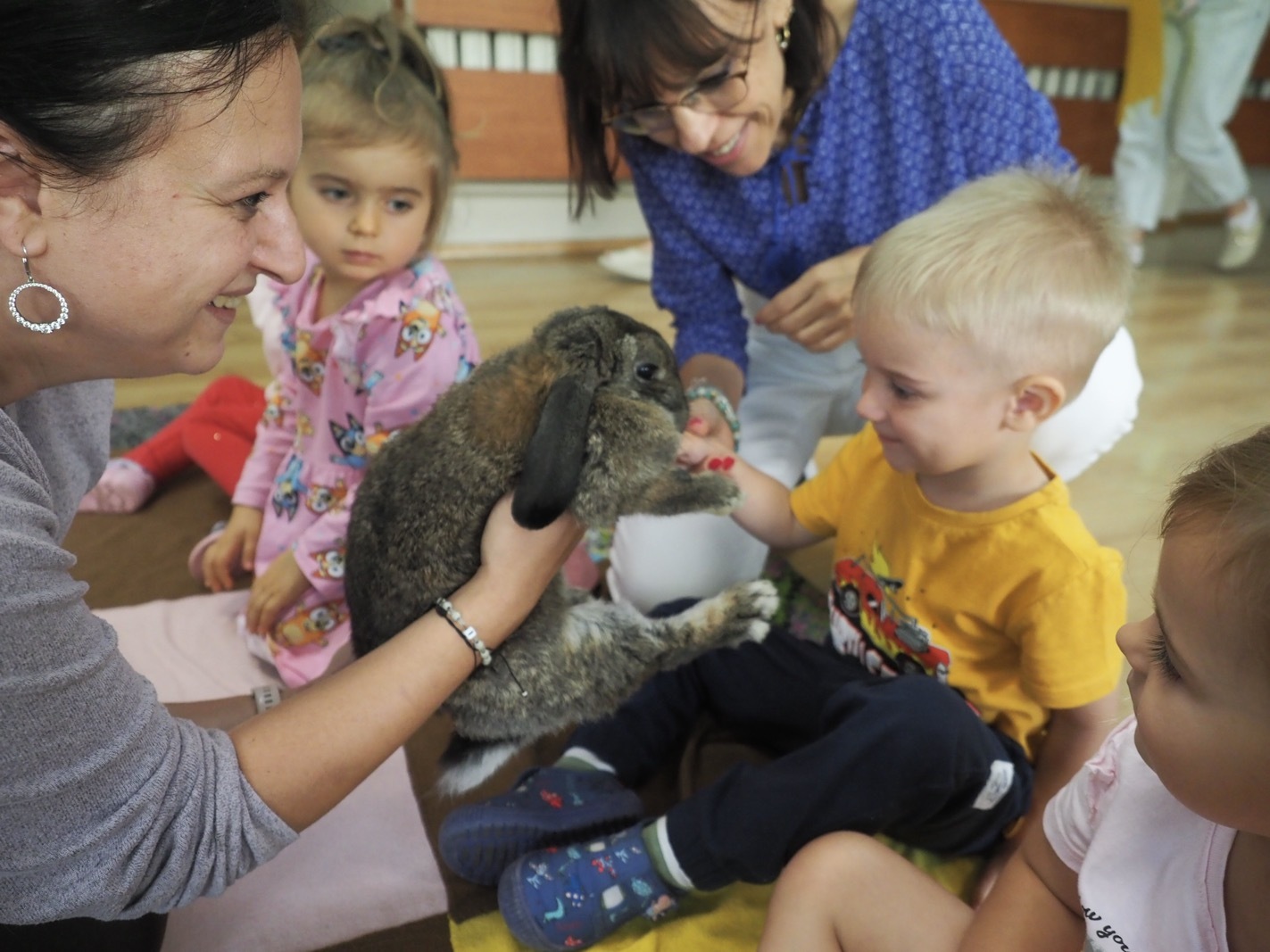 Dziś poznaliśmy cudownego króliczka - grupa 1. Każdy mógł pogłaskać zwierzątko i sprawdzić jakie ma długie i ciepłe uszka. Pierwsze w tym roku Warsztaty Przyrodnicze - Zwierzaki Cudaki. Kolejne już w październiku, wtedy poznamy inne zwierzątko.
