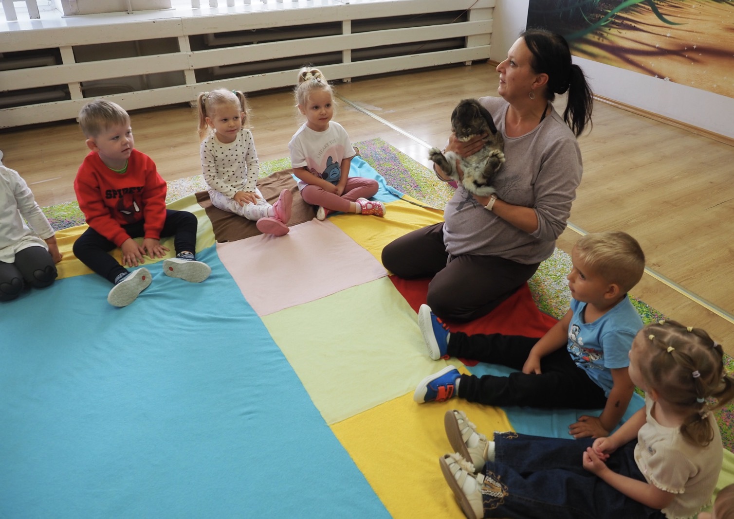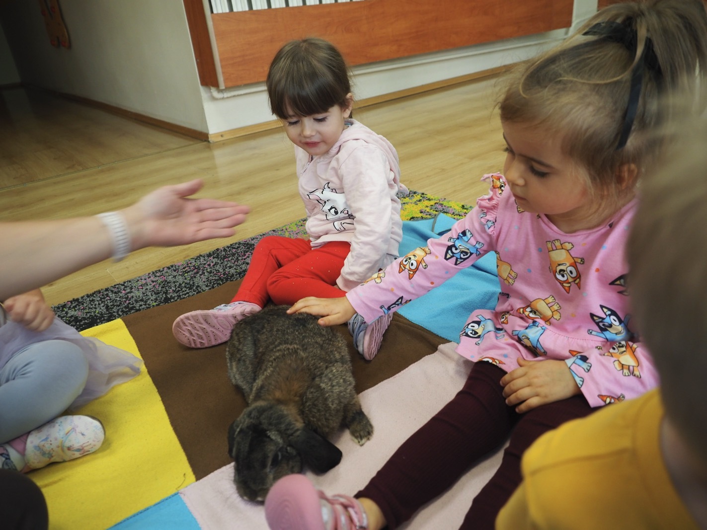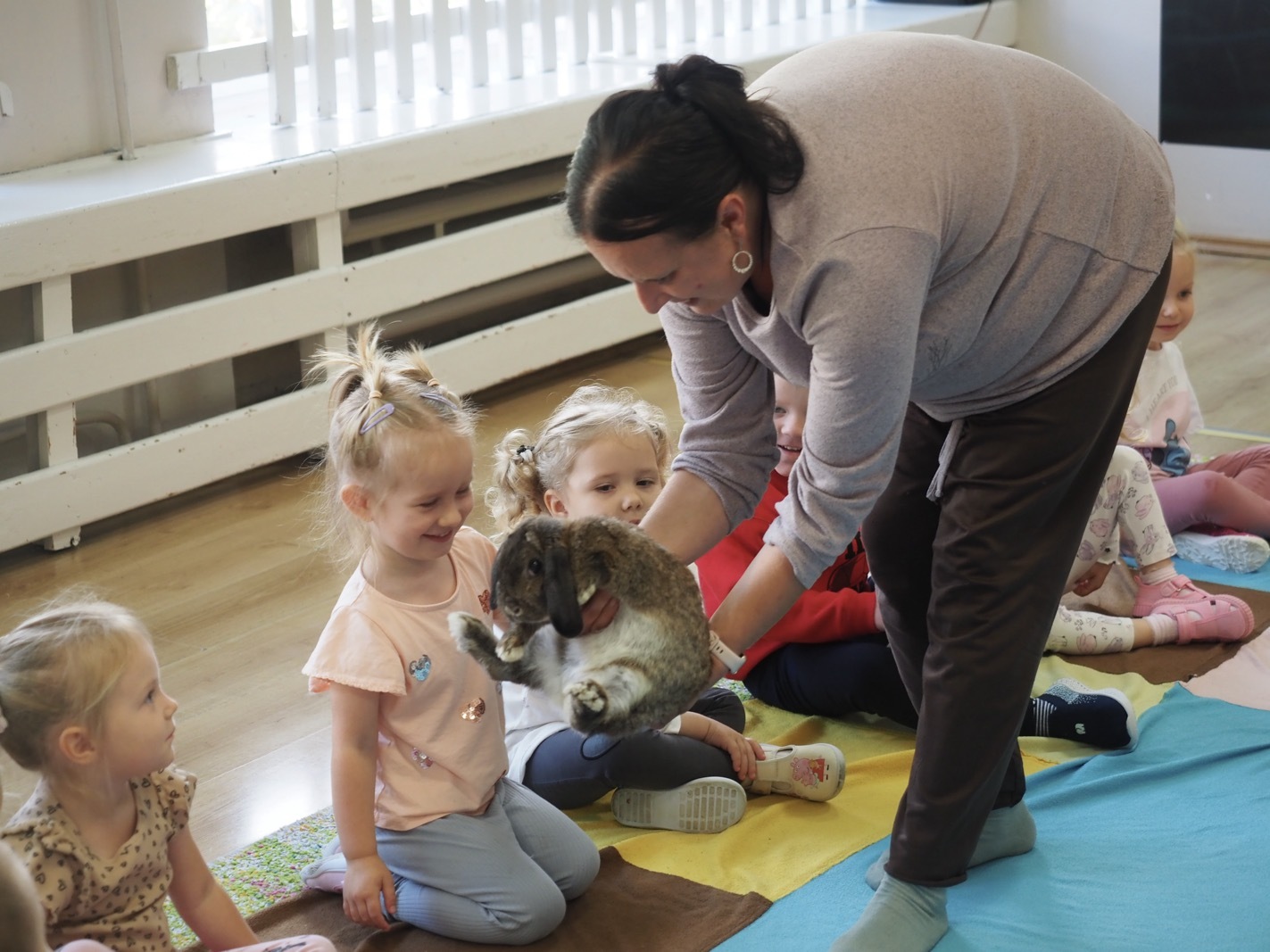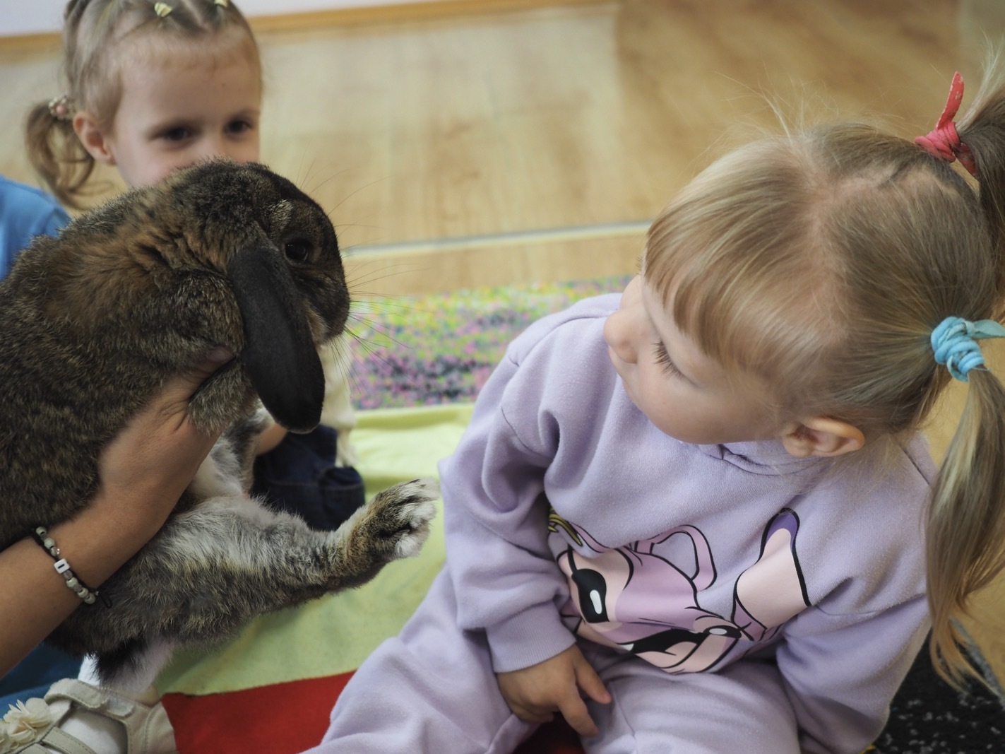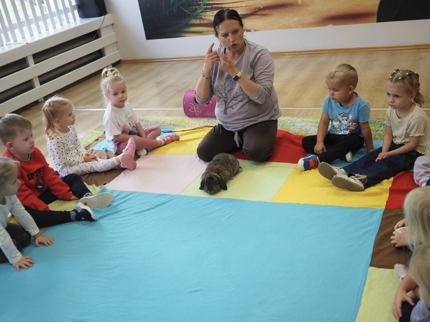 Dziś poznaliśmy cudownego króliczka - grupa 1. Każdy mógł pogłaskać zwierzątko i sprawdzić jakie ma długie i ciepłe uszka. Pierwsze w tym roku Warsztaty Przyrodnicze - Zwierzaki Cudaki. Kolejne już w październiku, wtedy poznamy inne zwierzątko.