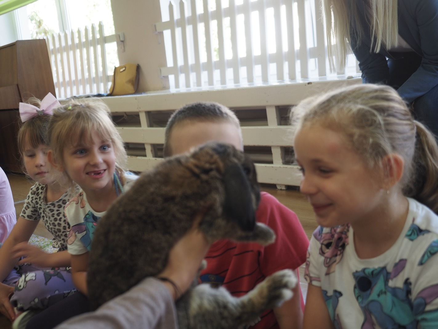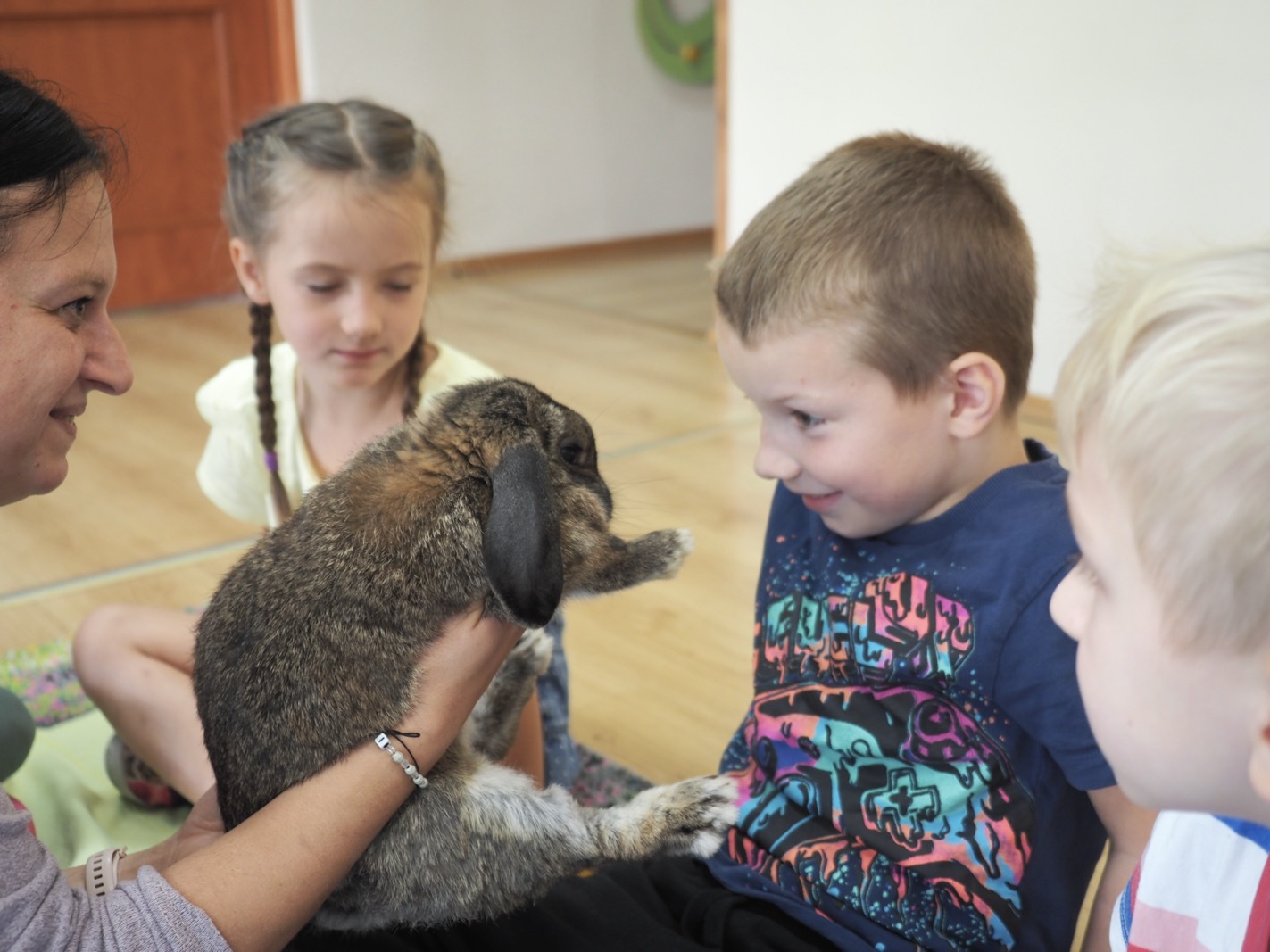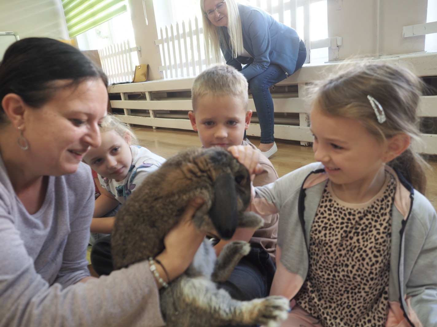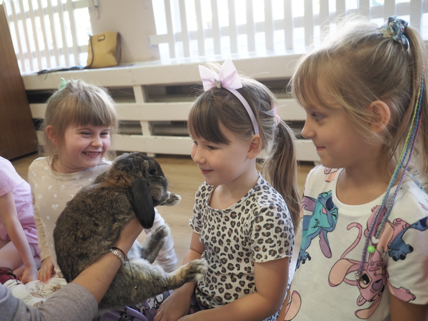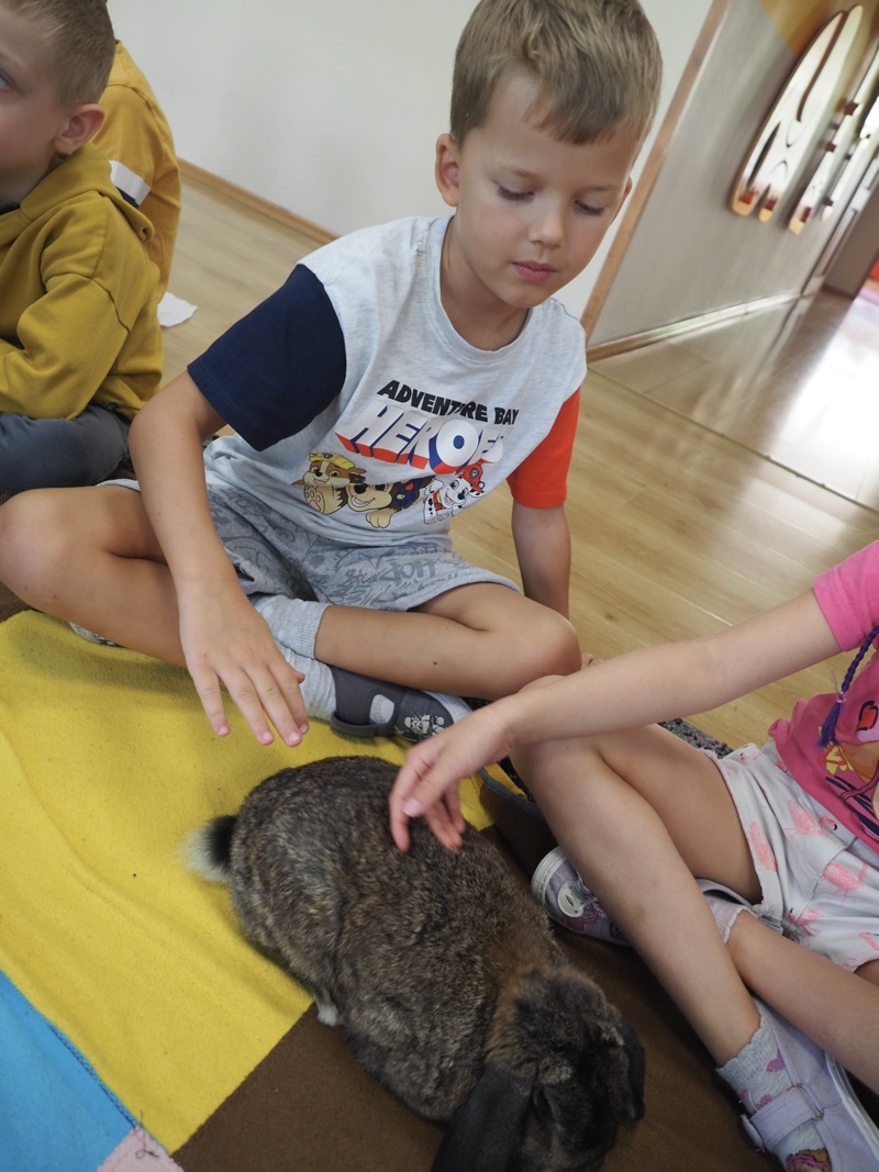 Dziś poznaliśmy cudownego króliczka - grupa 4. Każdy mógł pogłaskać zwierzątko i sprawdzić jakie ma długie i ciepłe uszka. Pierwsze w tym roku Warsztaty Przyrodnicze - Zwierzaki Cudaki. Kolejne już w październiku, wtedy poznamy inne zwierzątko