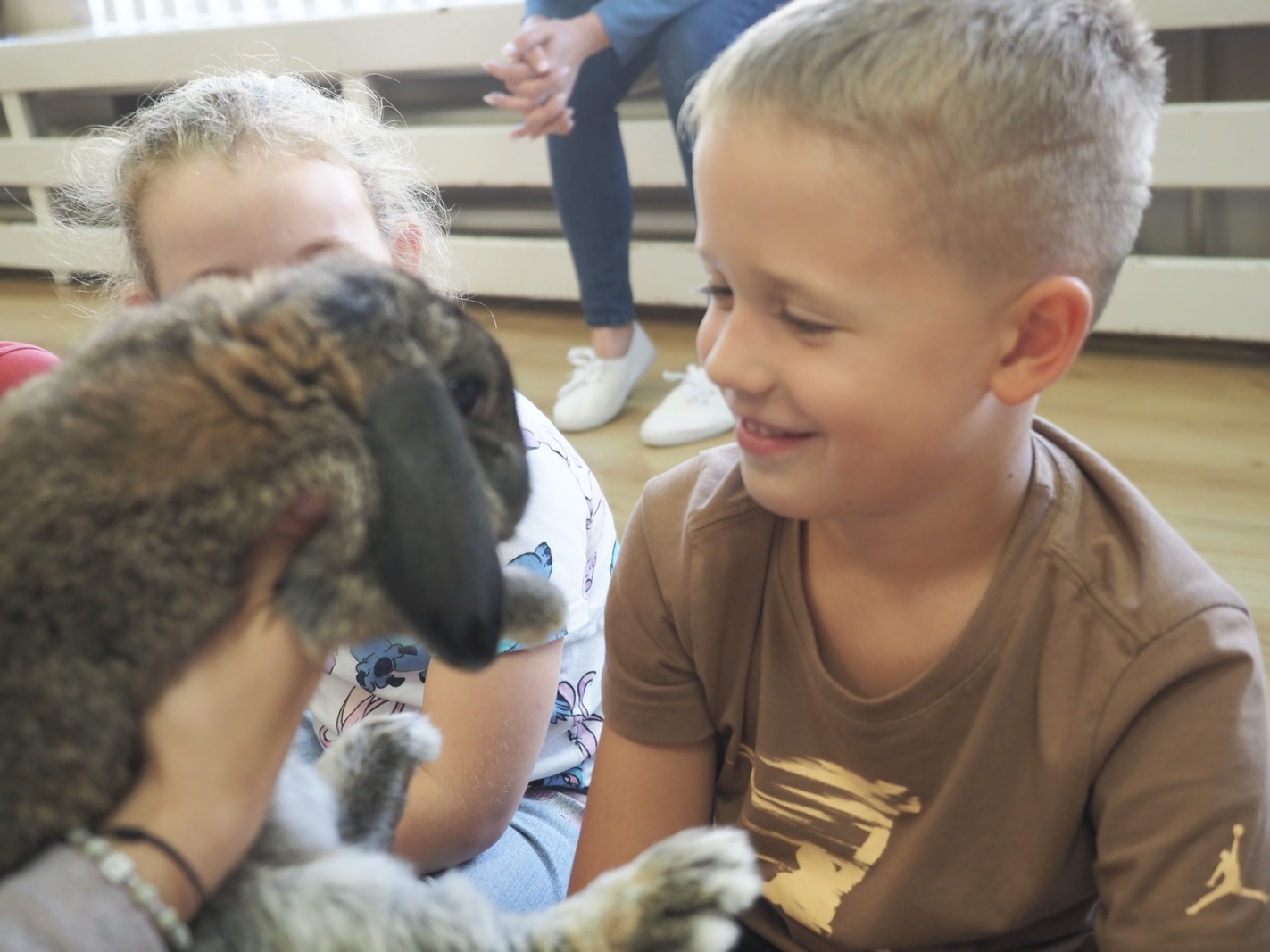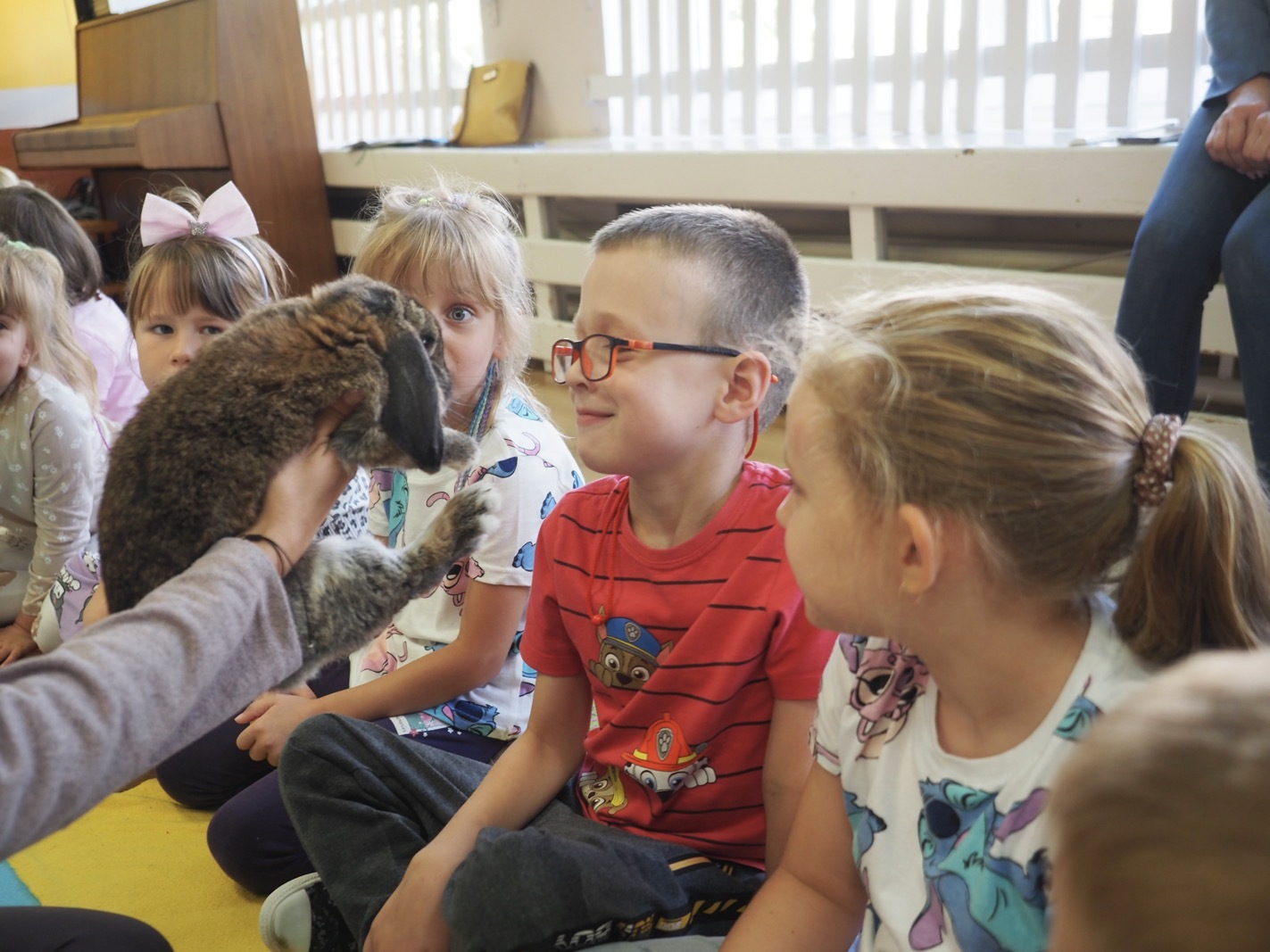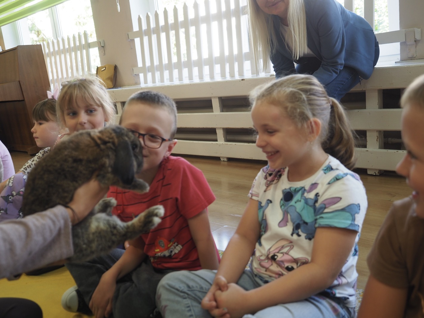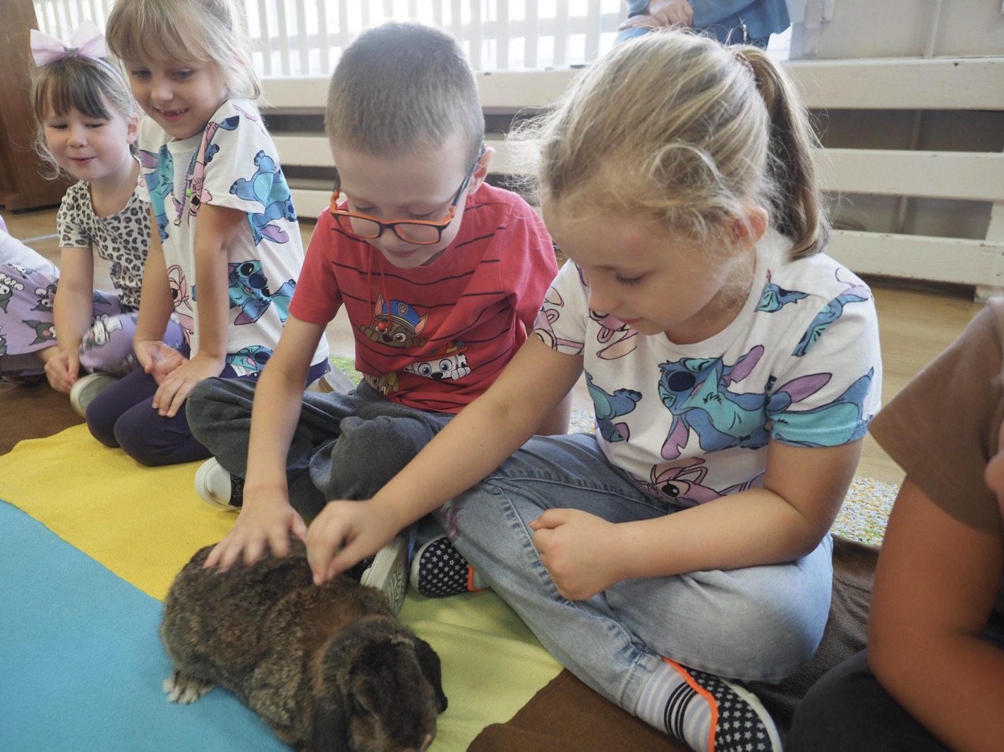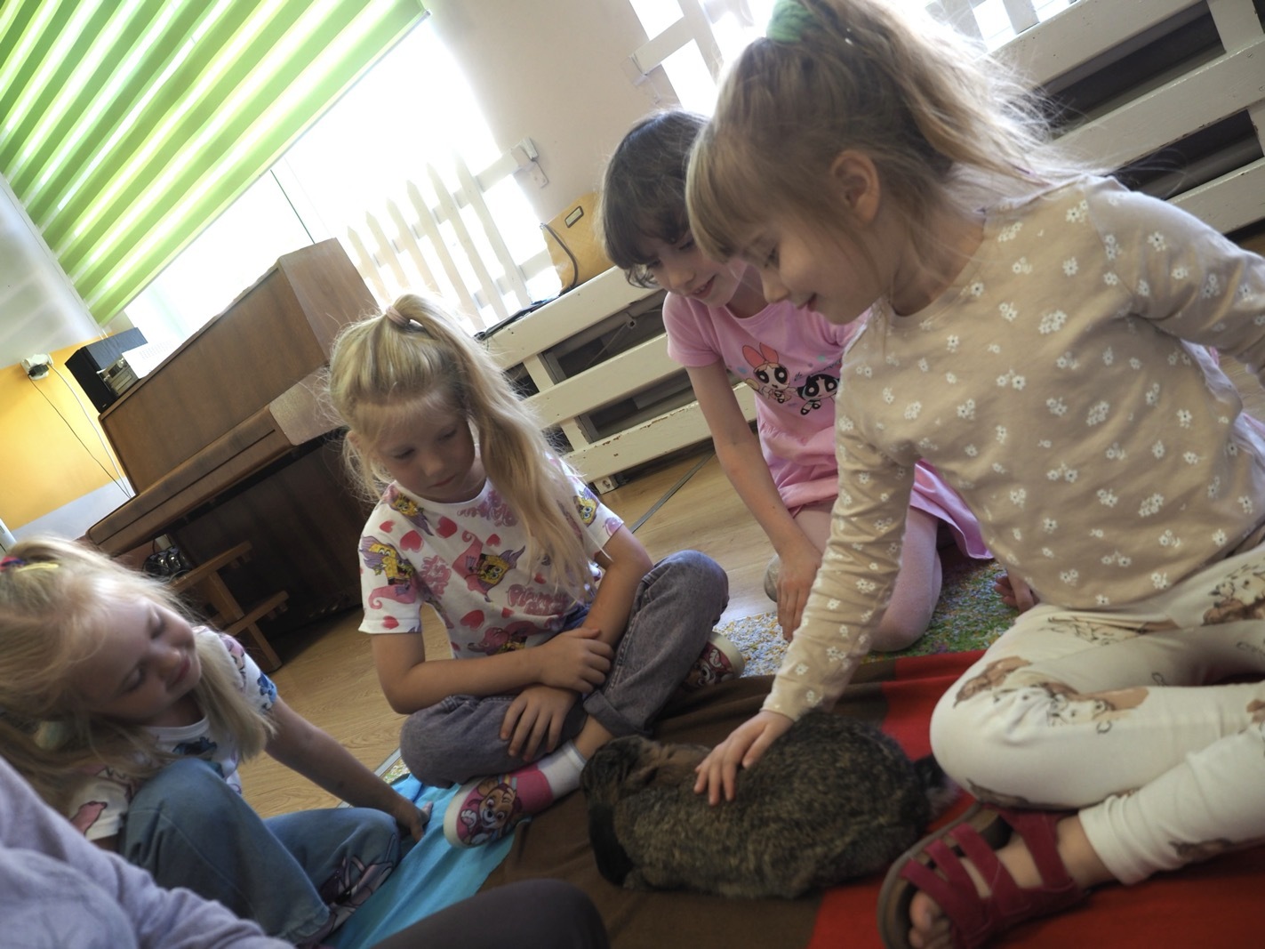Dziś poznaliśmy cudownego króliczka - grupa 4. Każdy mógł pogłaskać zwierzątko i sprawdzić jakie ma długie i ciepłe uszka. Pierwsze w tym roku Warsztaty Przyrodnicze - Zwierzaki Cudaki. Kolejne już w październiku, wtedy poznamy inne zwierzątko