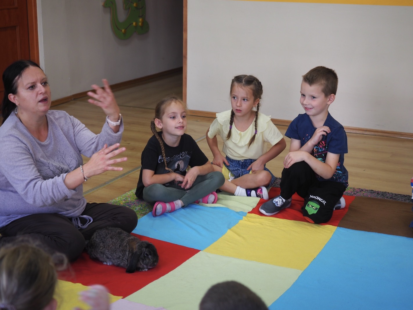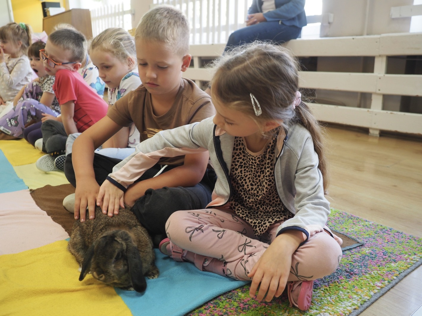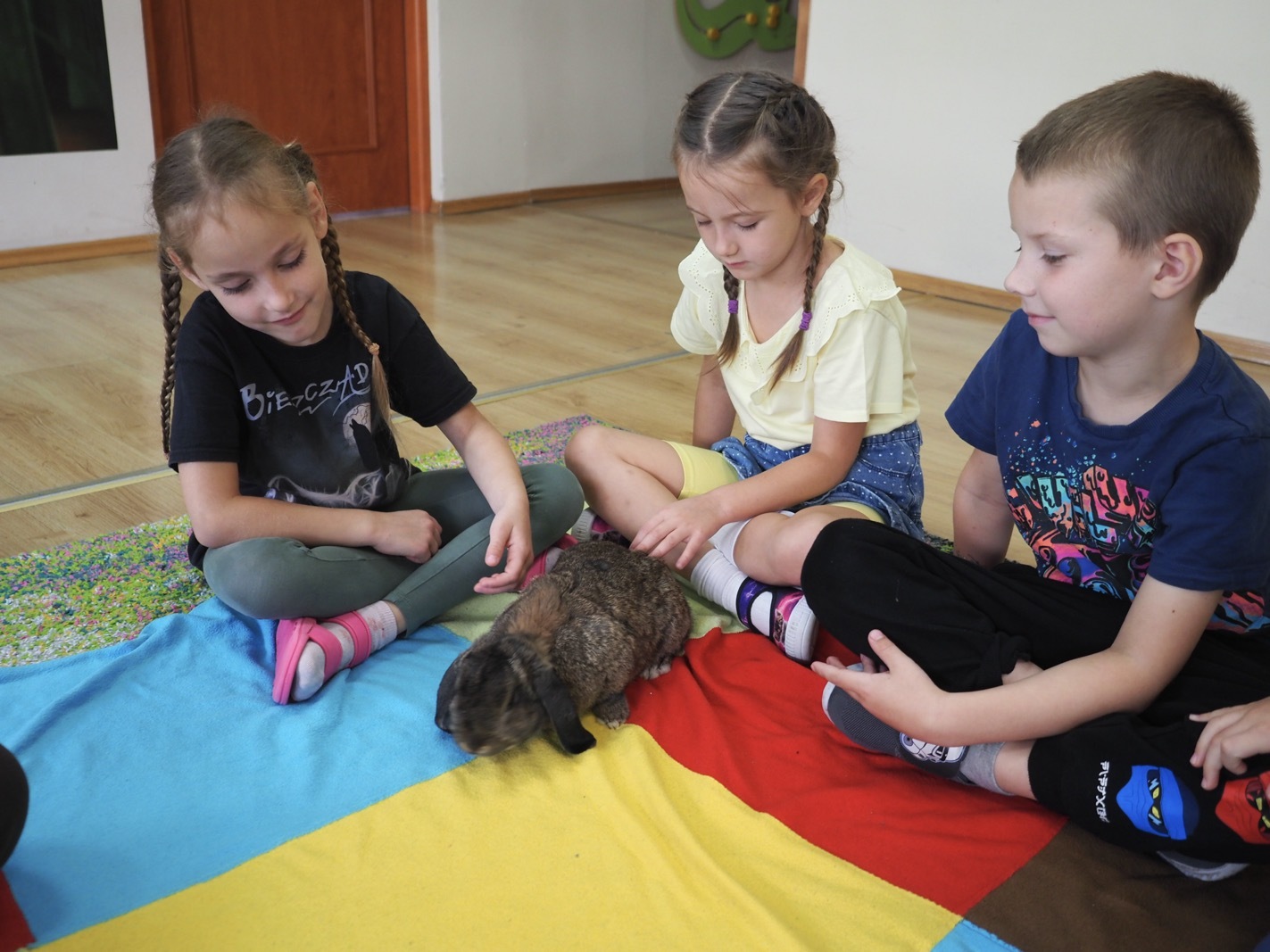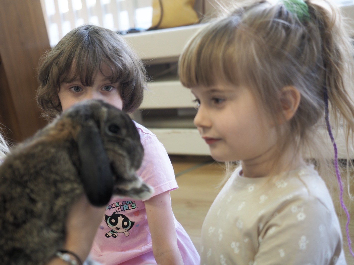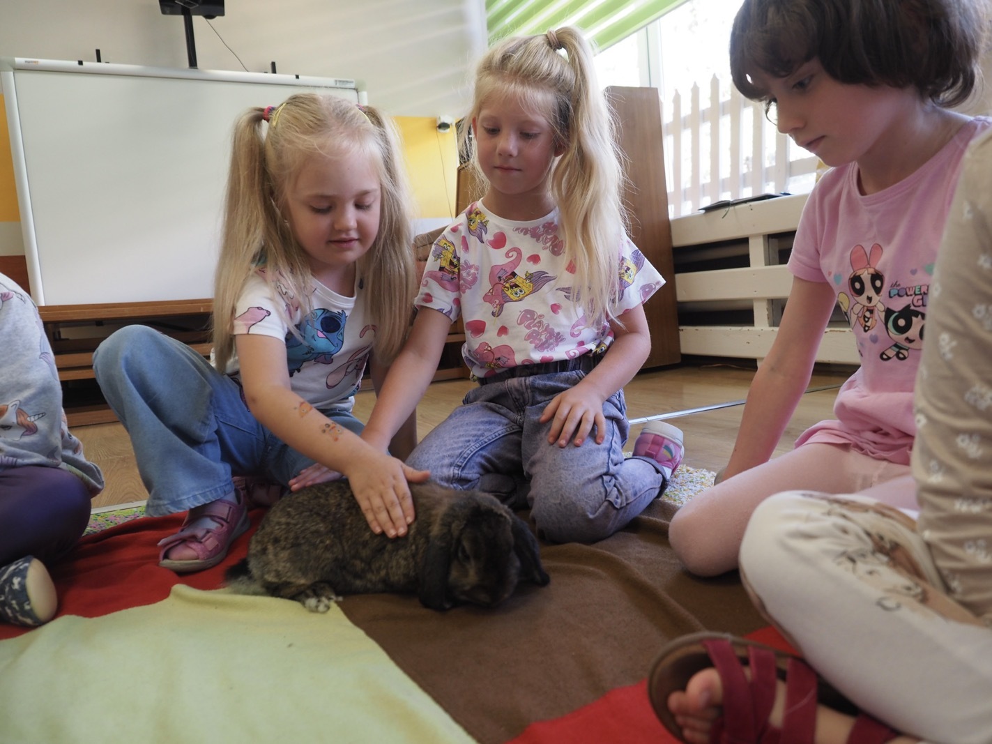Dziś poznaliśmy cudownego króliczka - grupa 4. Każdy mógł pogłaskać zwierzątko i sprawdzić jakie ma długie i ciepłe uszka. Pierwsze w tym roku Warsztaty Przyrodnicze - Zwierzaki Cudaki. Kolejne już w październiku, wtedy poznamy inne zwierzątko