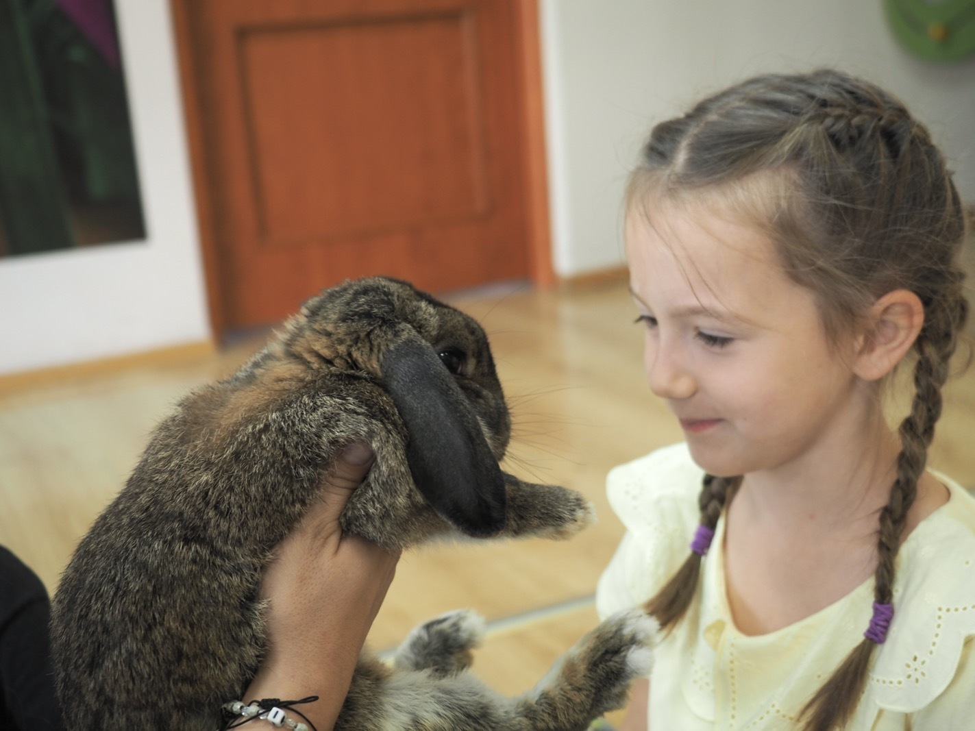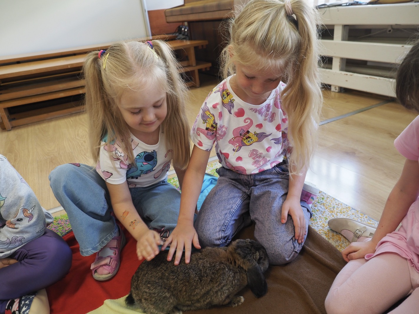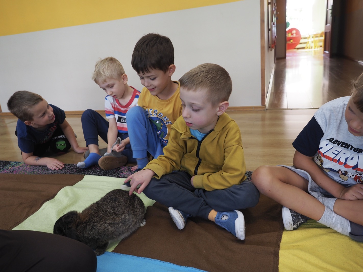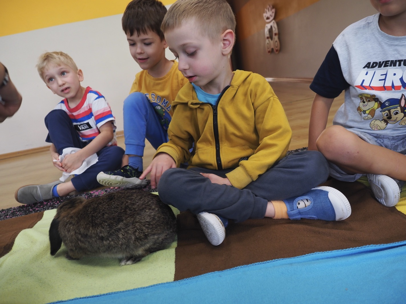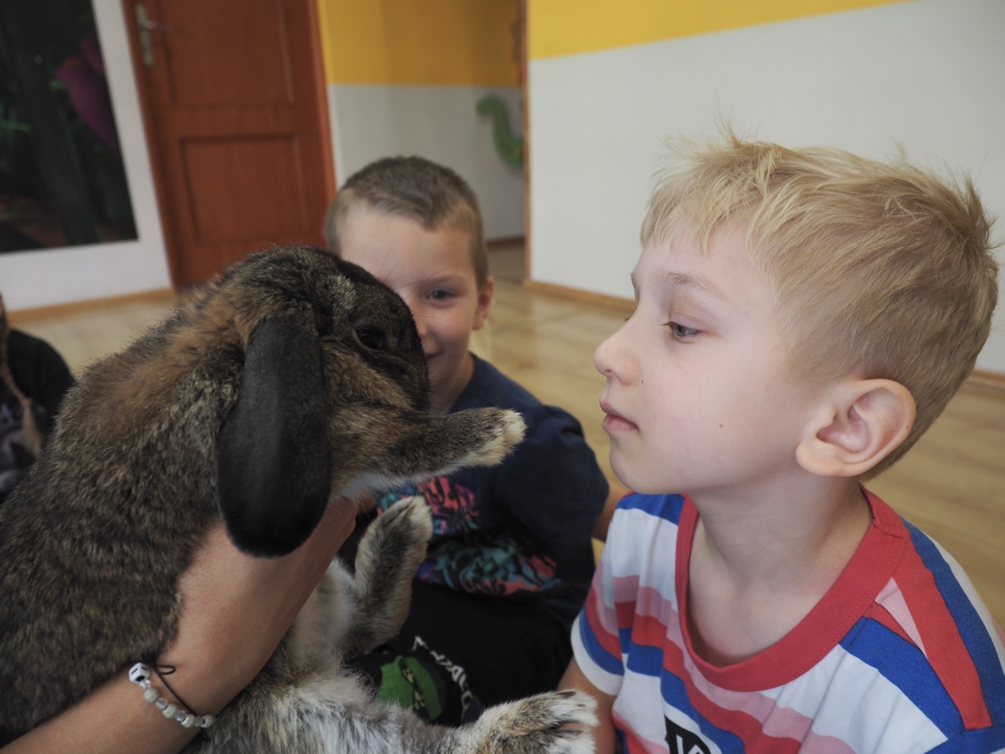 Dziś poznaliśmy cudownego króliczka - grupa 4. Każdy mógł pogłaskać zwierzątko i sprawdzić jakie ma długie i ciepłe uszka. Pierwsze w tym roku Warsztaty Przyrodnicze - Zwierzaki Cudaki. Kolejne już w październiku, wtedy poznamy inne zwierzątko