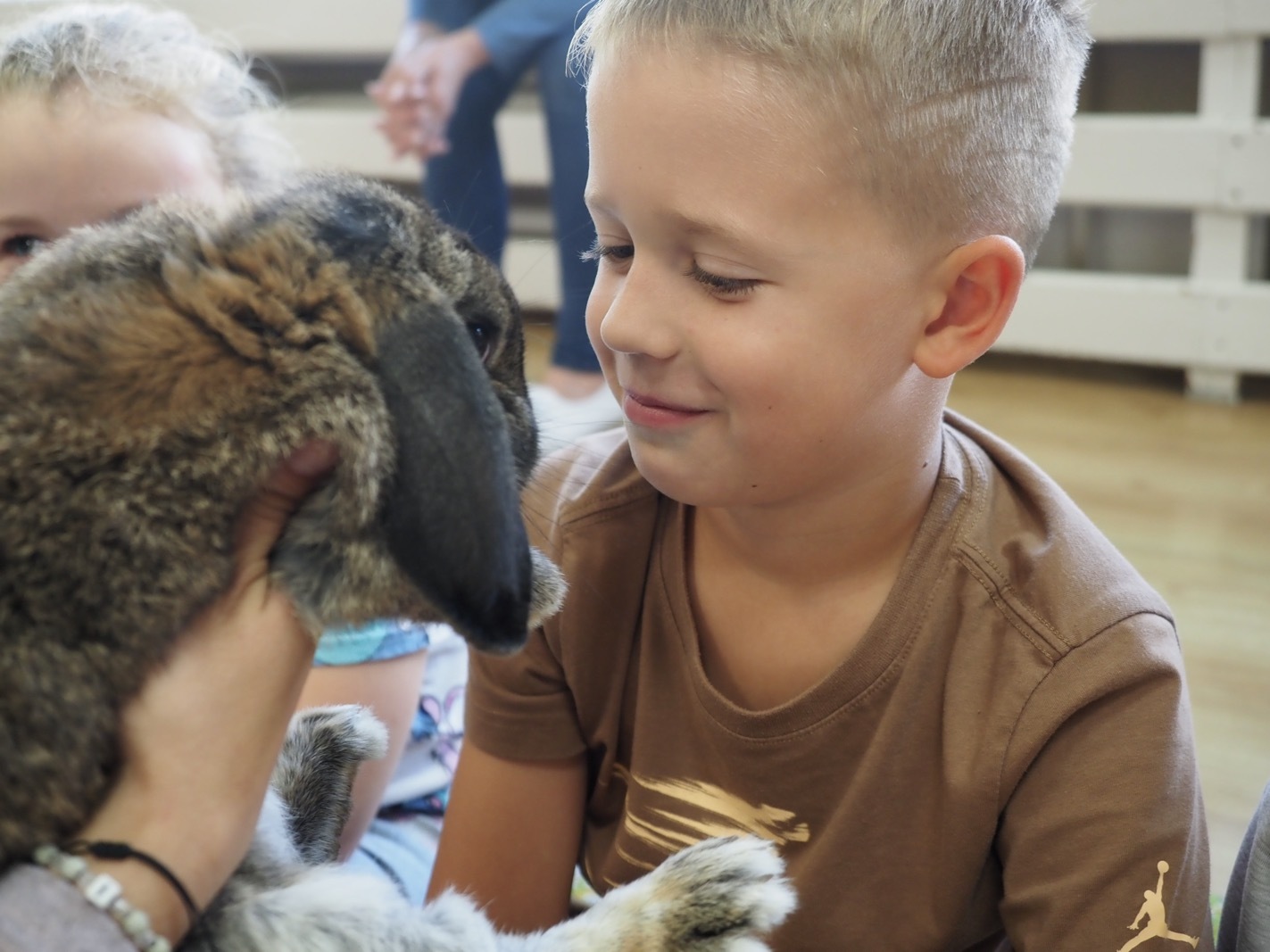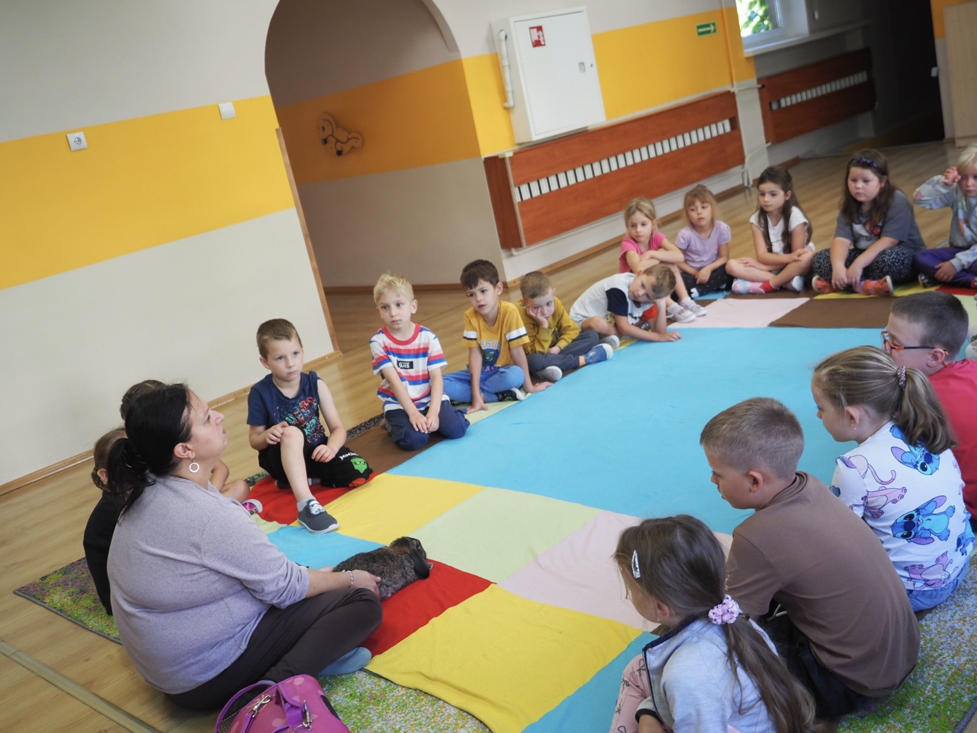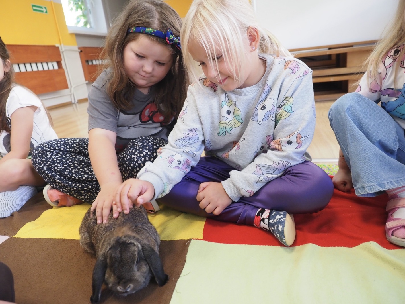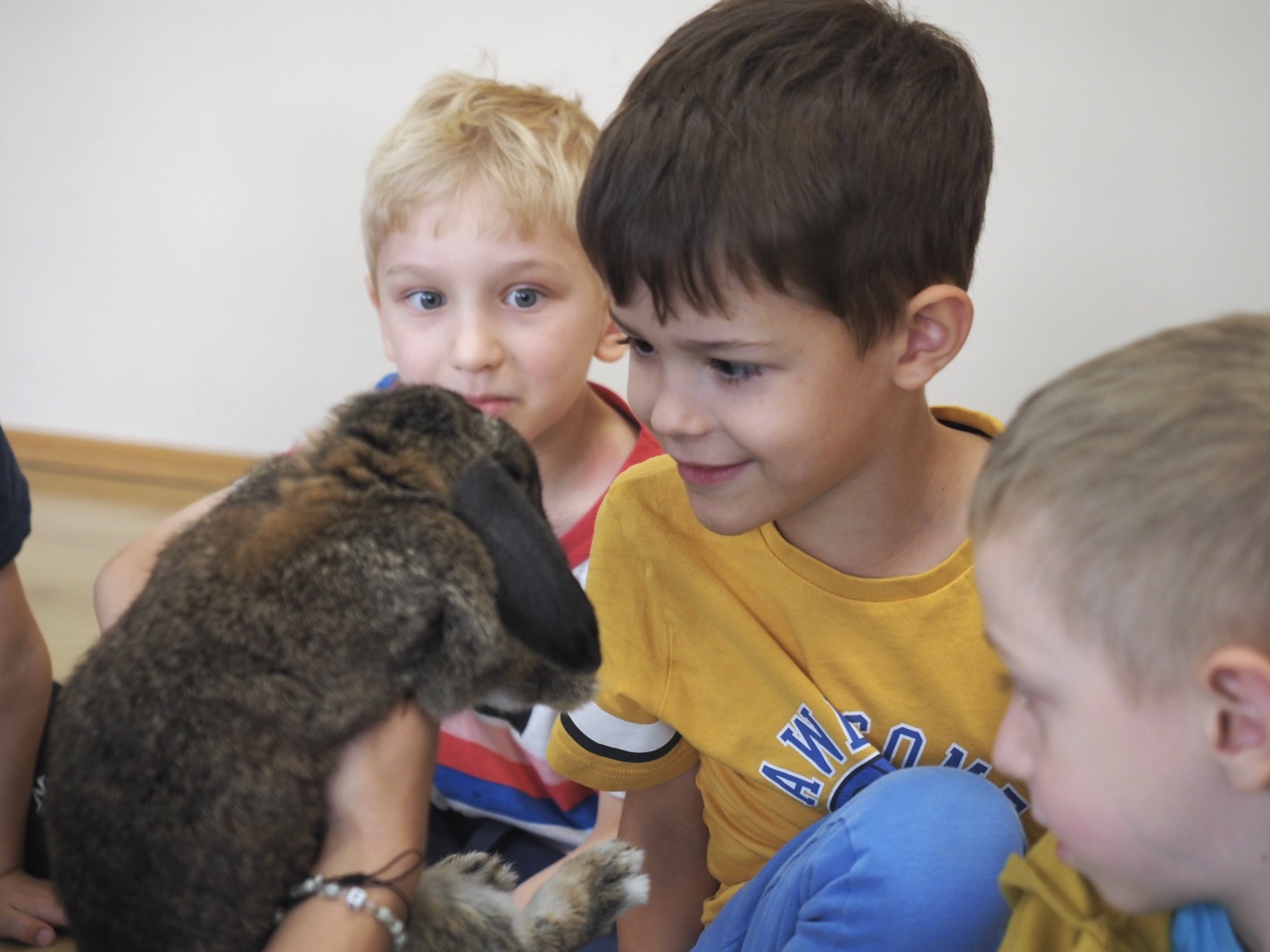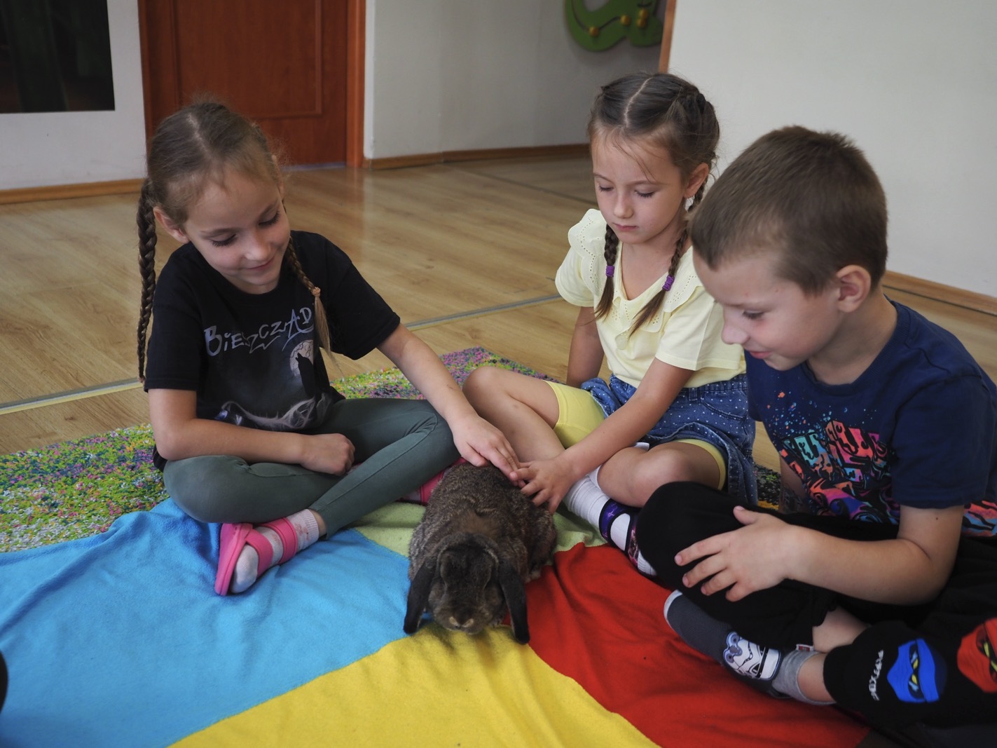 Dziś poznaliśmy cudownego króliczka - grupa 4. Każdy mógł pogłaskać zwierzątko i sprawdzić jakie ma długie i ciepłe uszka. Pierwsze w tym roku Warsztaty Przyrodnicze - Zwierzaki Cudaki. Kolejne już w październiku, wtedy poznamy inne zwierzątko