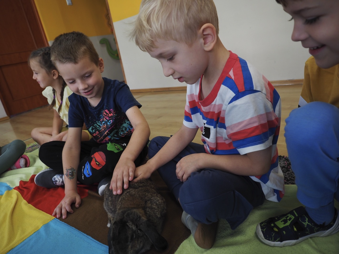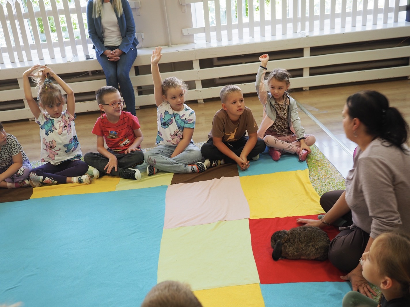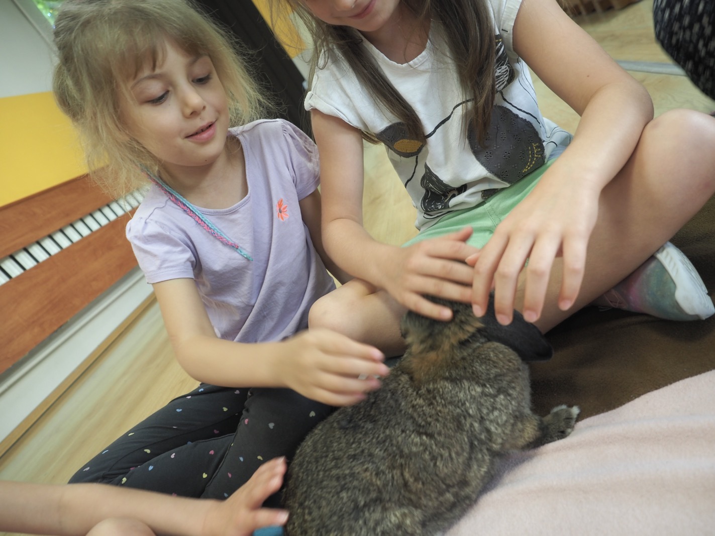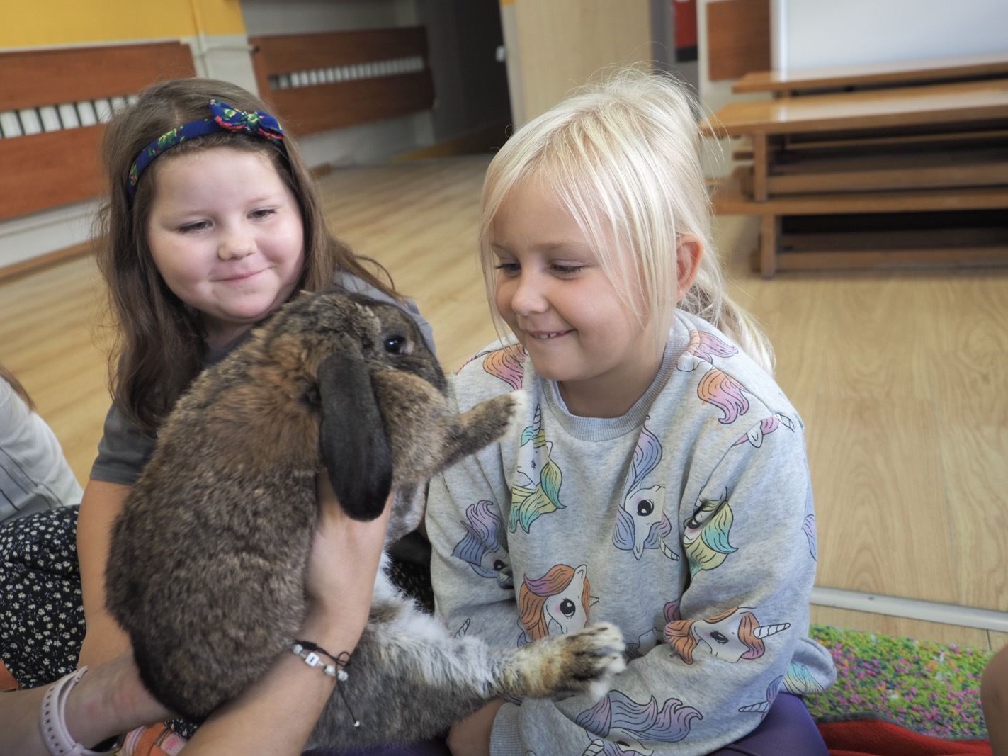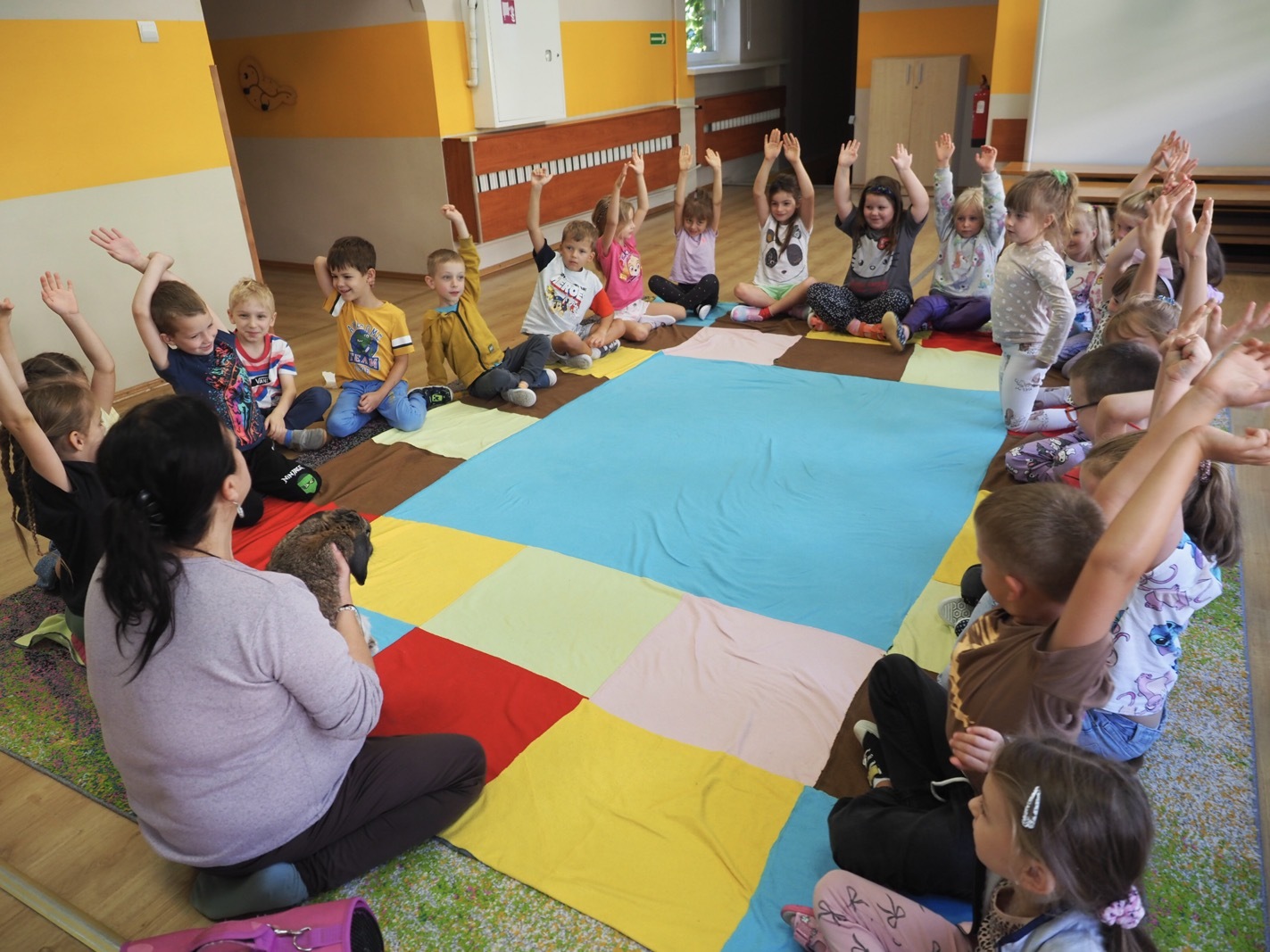 Dziś poznaliśmy cudownego króliczka - grupa 4. Każdy mógł pogłaskać zwierzątko i sprawdzić jakie ma długie i ciepłe uszka. Pierwsze w tym roku Warsztaty Przyrodnicze - Zwierzaki Cudaki. Kolejne już w październiku, wtedy poznamy inne zwierzątko
