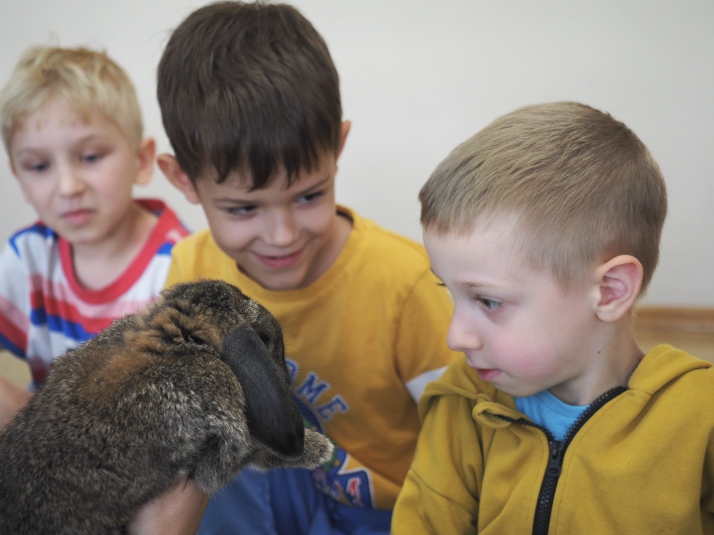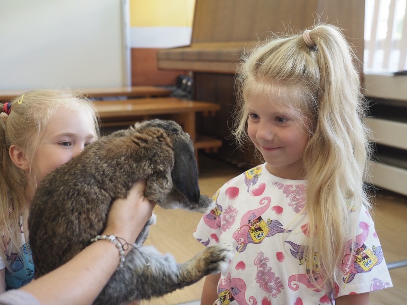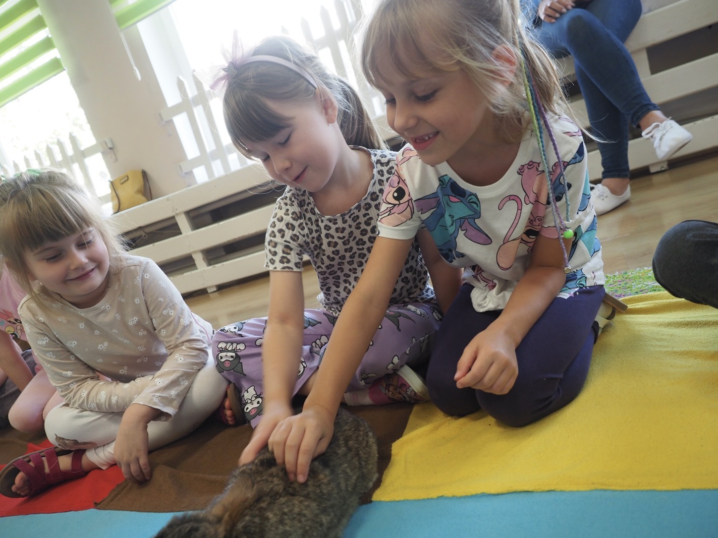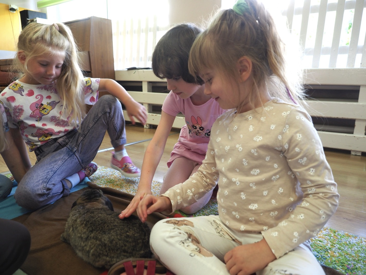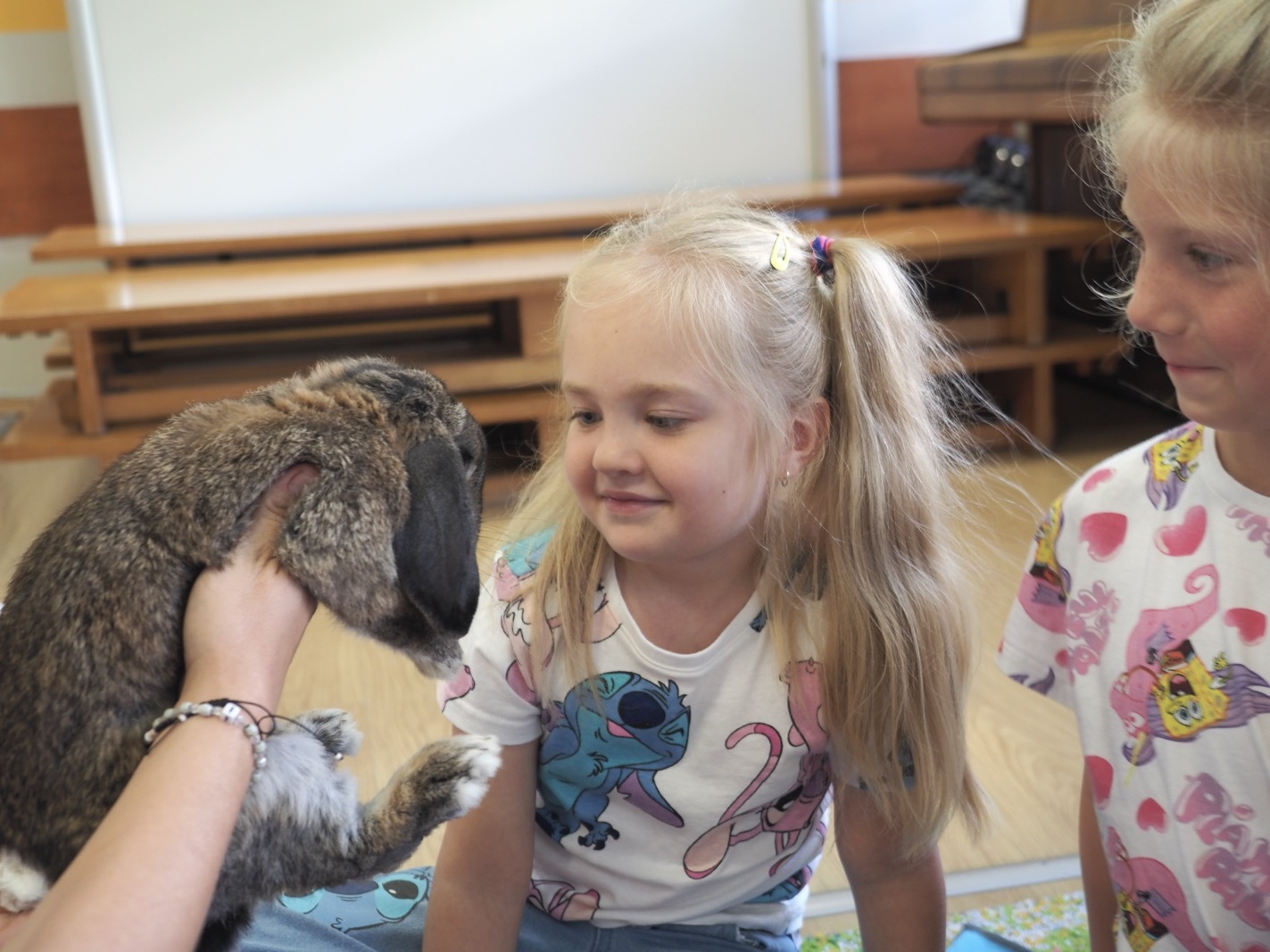 Dziś poznaliśmy cudownego króliczka - grupa 4. Każdy mógł pogłaskać zwierzątko i sprawdzić jakie ma długie i ciepłe uszka. Pierwsze w tym roku Warsztaty Przyrodnicze - Zwierzaki Cudaki. Kolejne już w październiku, wtedy poznamy inne zwierzątko