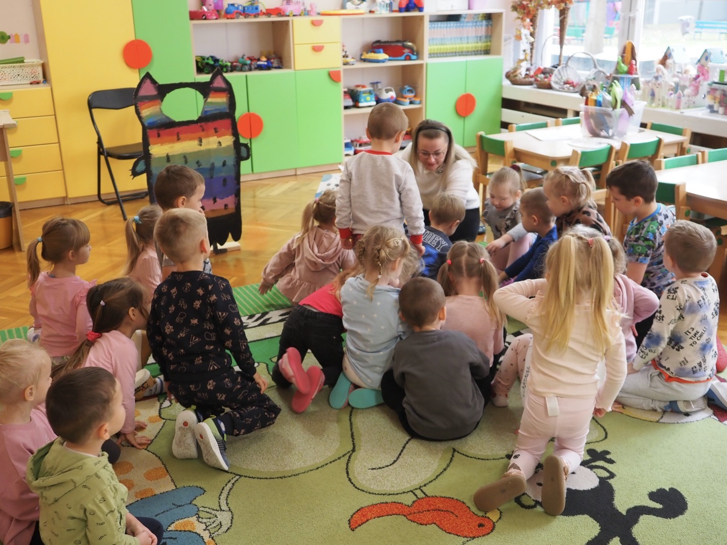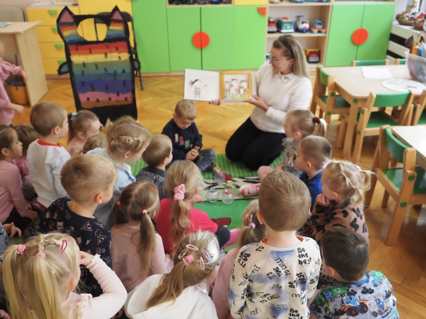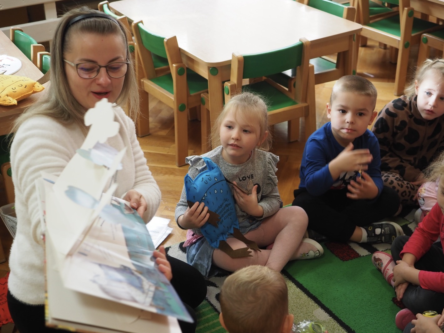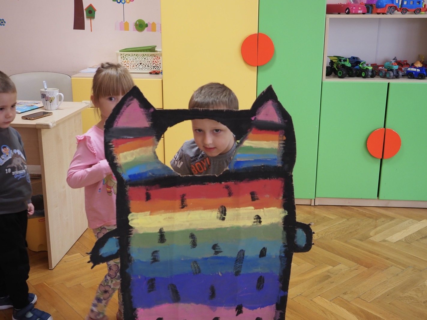 Zajęcia z Panią Sylwią - Panią psycholog. Dziś w grupie II odbyły się wyjątkowe zajęcia poświęcone poznawaniu i nazywaniu emocji. W ramach realizacji międzynarodowego projektu edukacyjnego dzieci miały okazję spotkać się z niezwykłym bohaterem – Kolorowym Potworem, który pomógł im uporządkować świat uczuć.