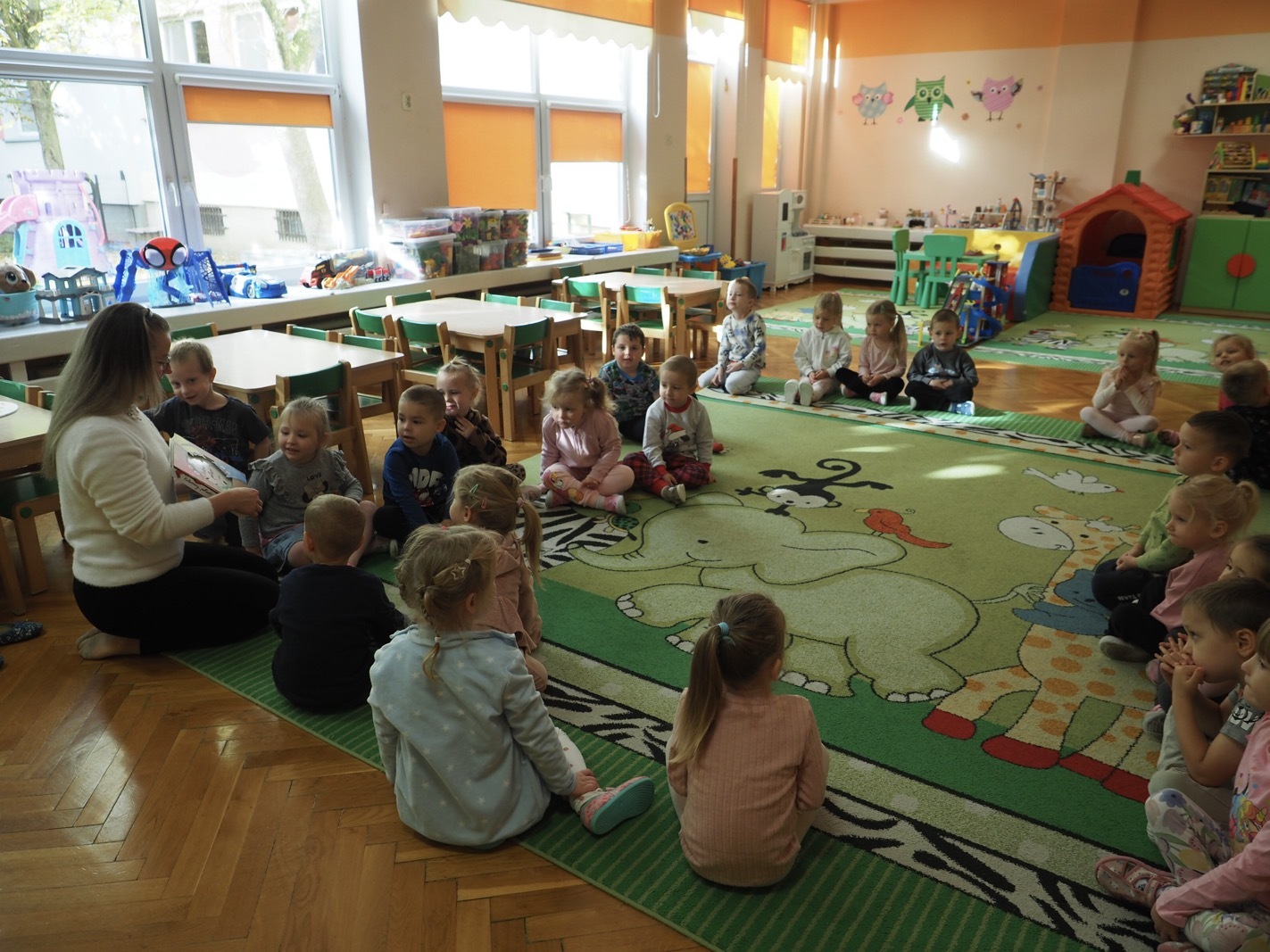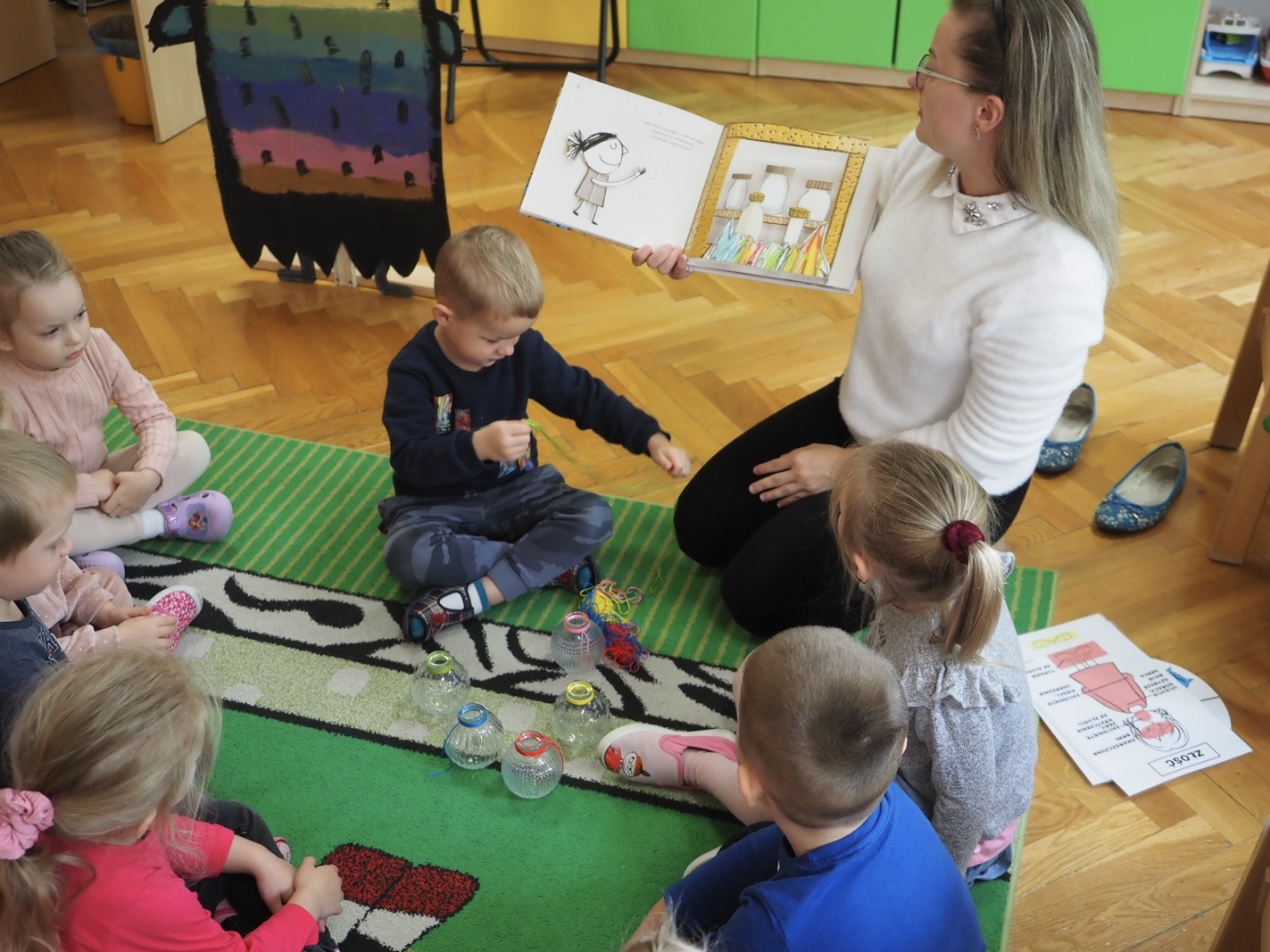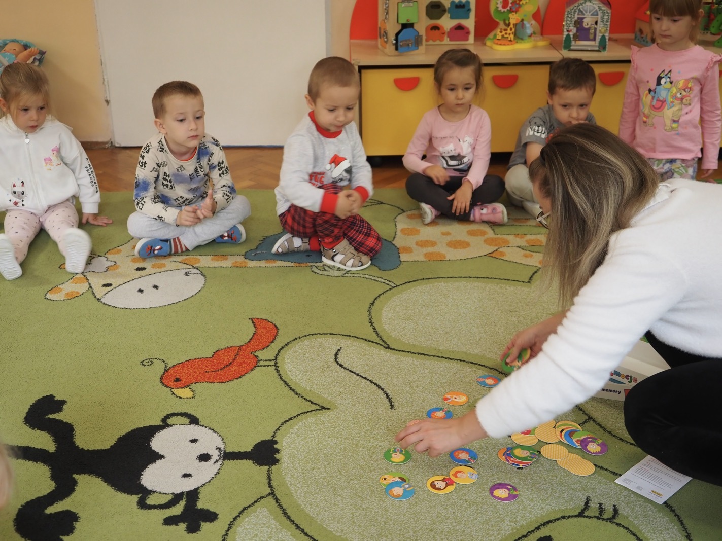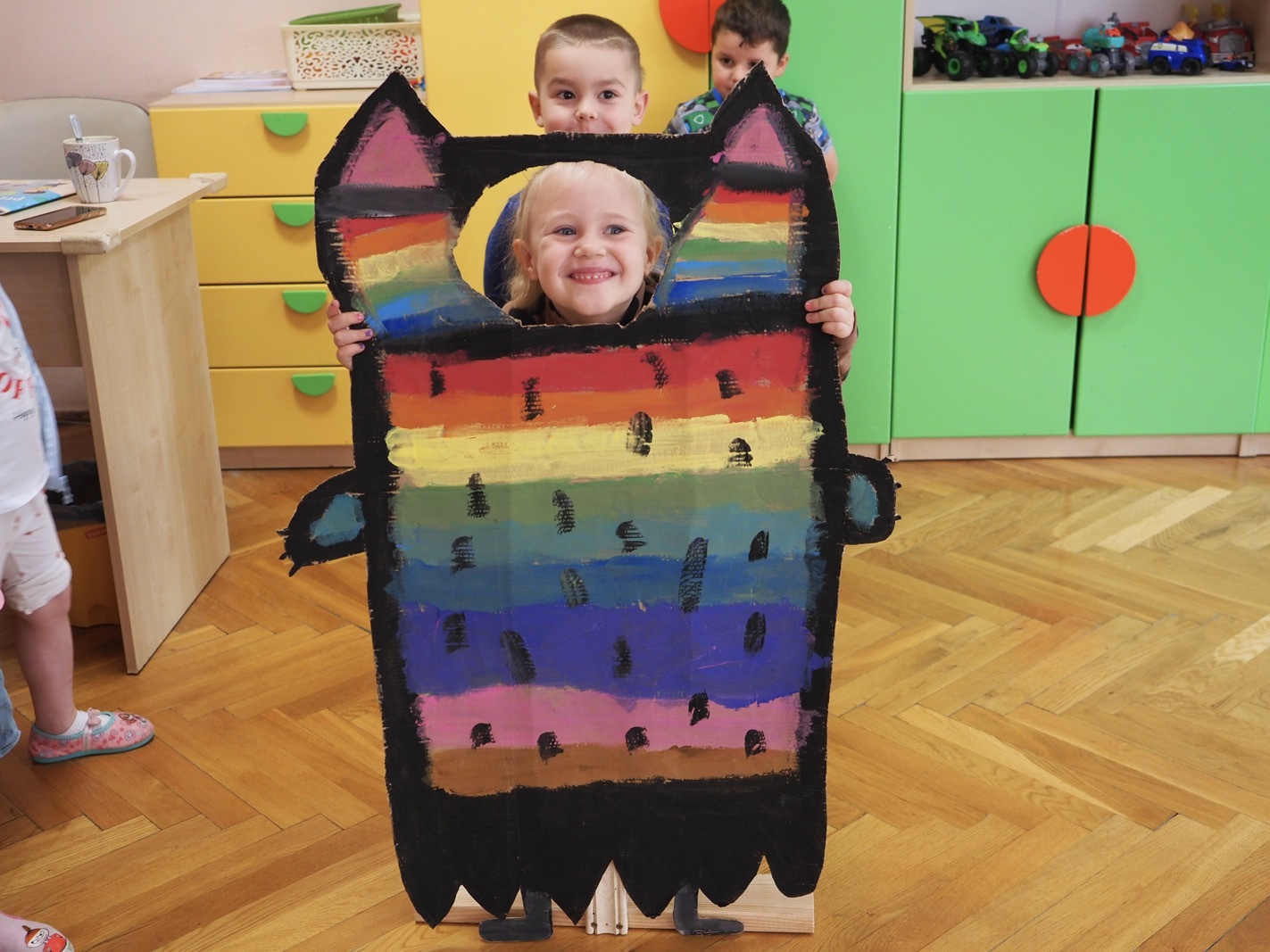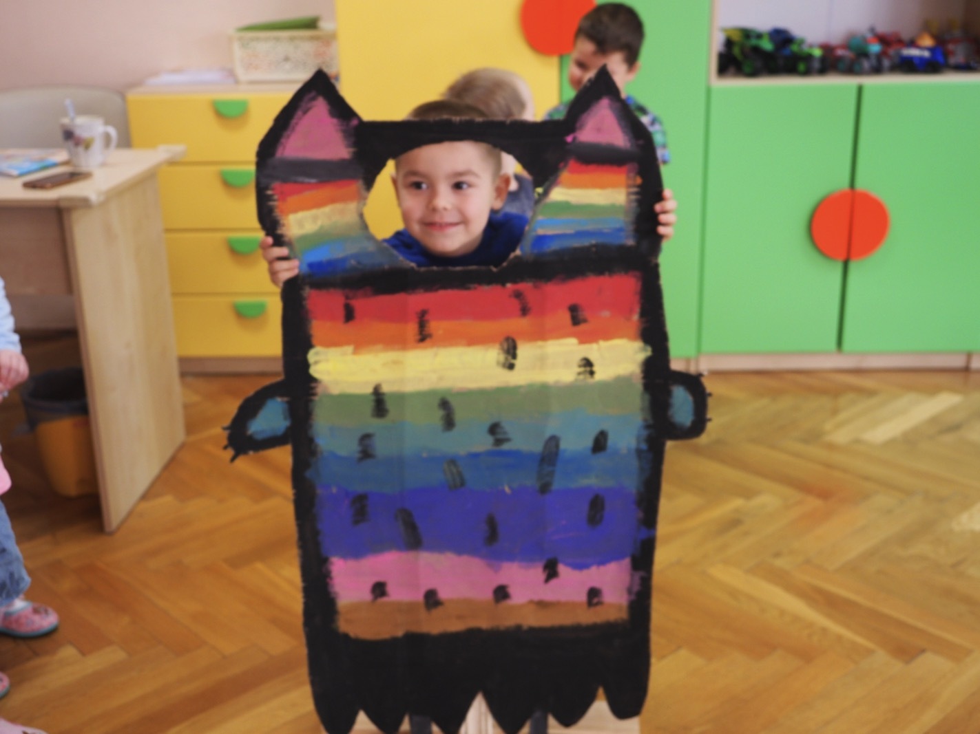 Zajęcia z Panią Sylwią - Panią psycholog. Dziś w grupie II odbyły się wyjątkowe zajęcia poświęcone poznawaniu i nazywaniu emocji. W ramach realizacji międzynarodowego projektu edukacyjnego dzieci miały okazję spotkać się z niezwykłym bohaterem – Kolorowym Potworem, który pomógł im uporządkować świat uczuć.