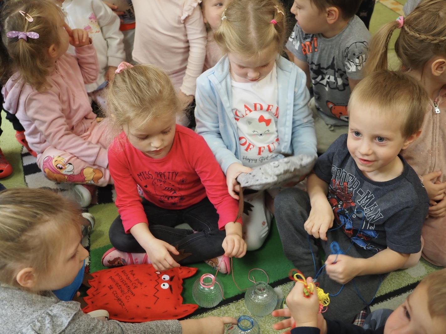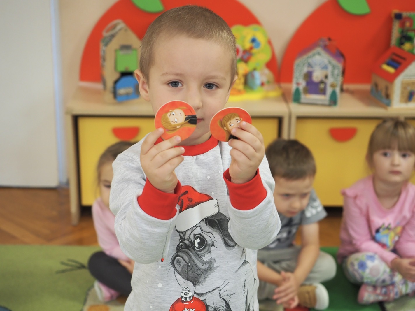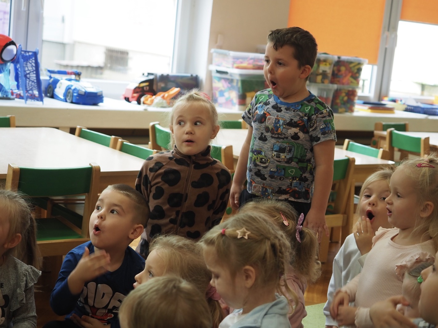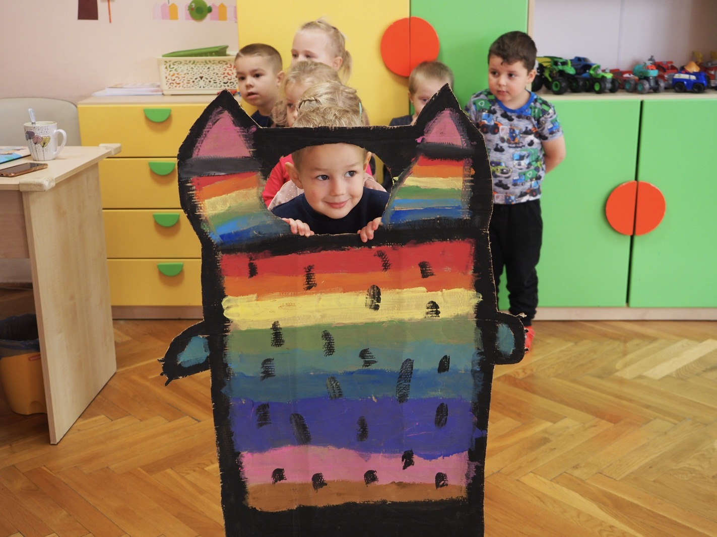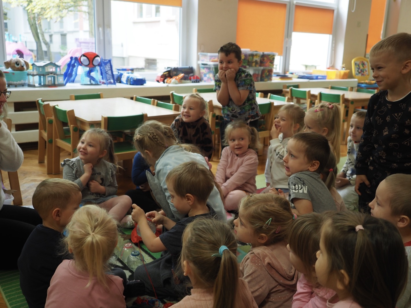 Zajęcia z Panią Sylwią - Panią psycholog. Dziś w grupie II odbyły się wyjątkowe zajęcia poświęcone poznawaniu i nazywaniu emocji. W ramach realizacji międzynarodowego projektu edukacyjnego dzieci miały okazję spotkać się z niezwykłym bohaterem – Kolorowym Potworem, który pomógł im uporządkować świat uczuć.
