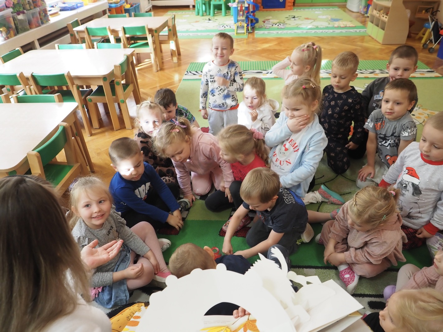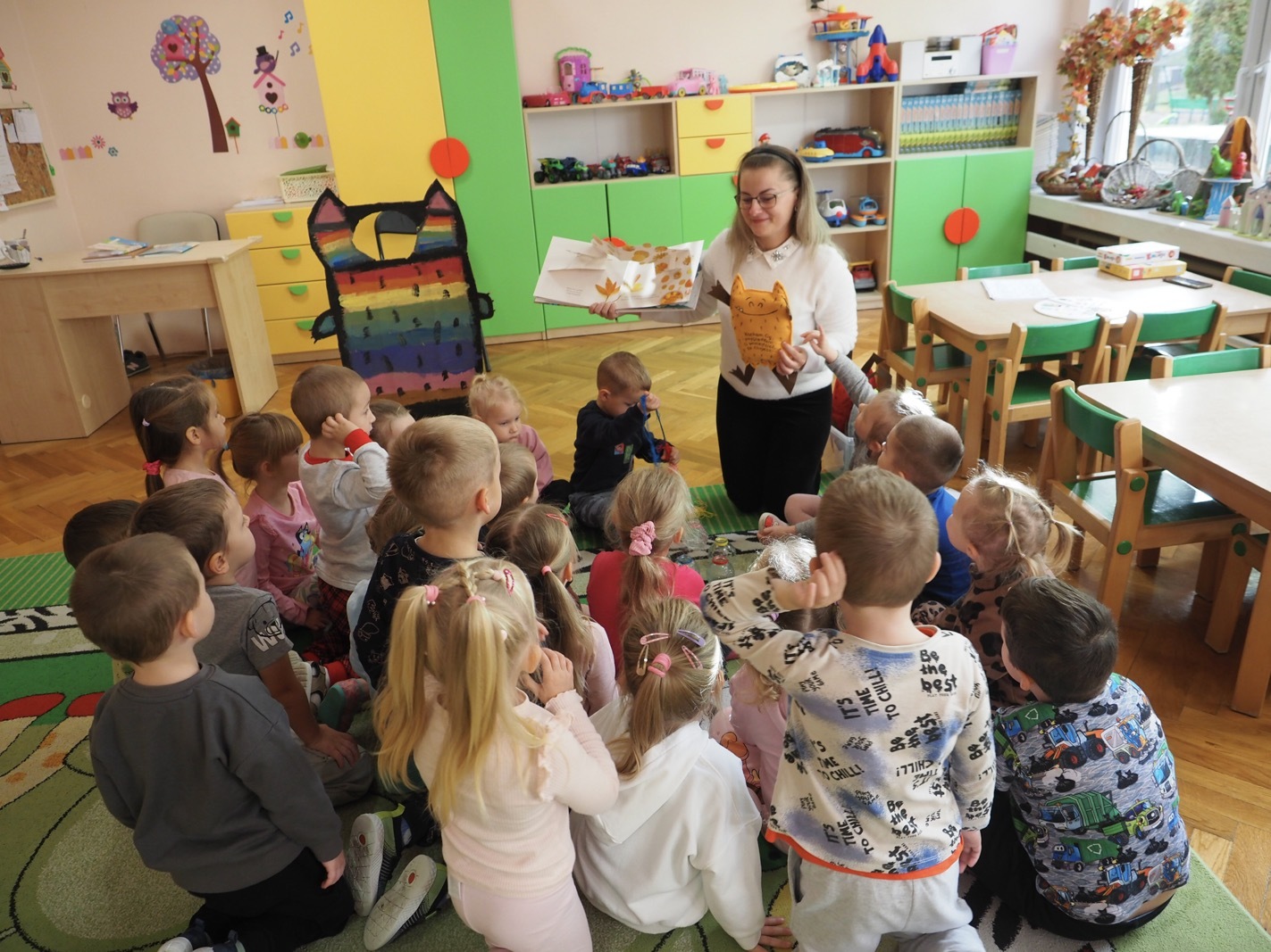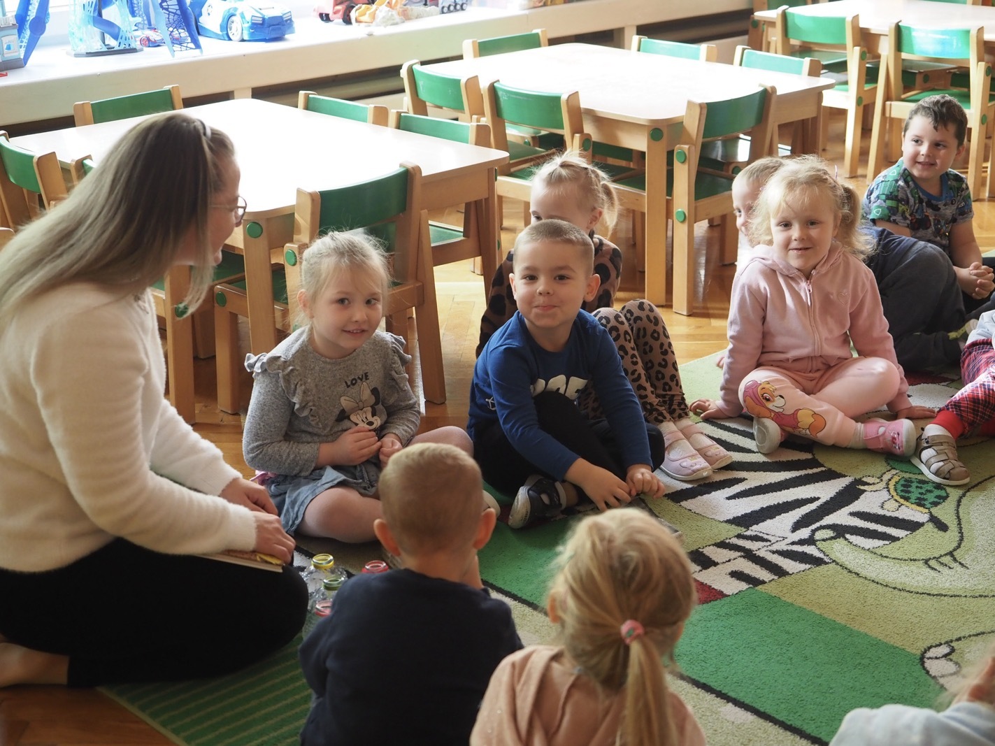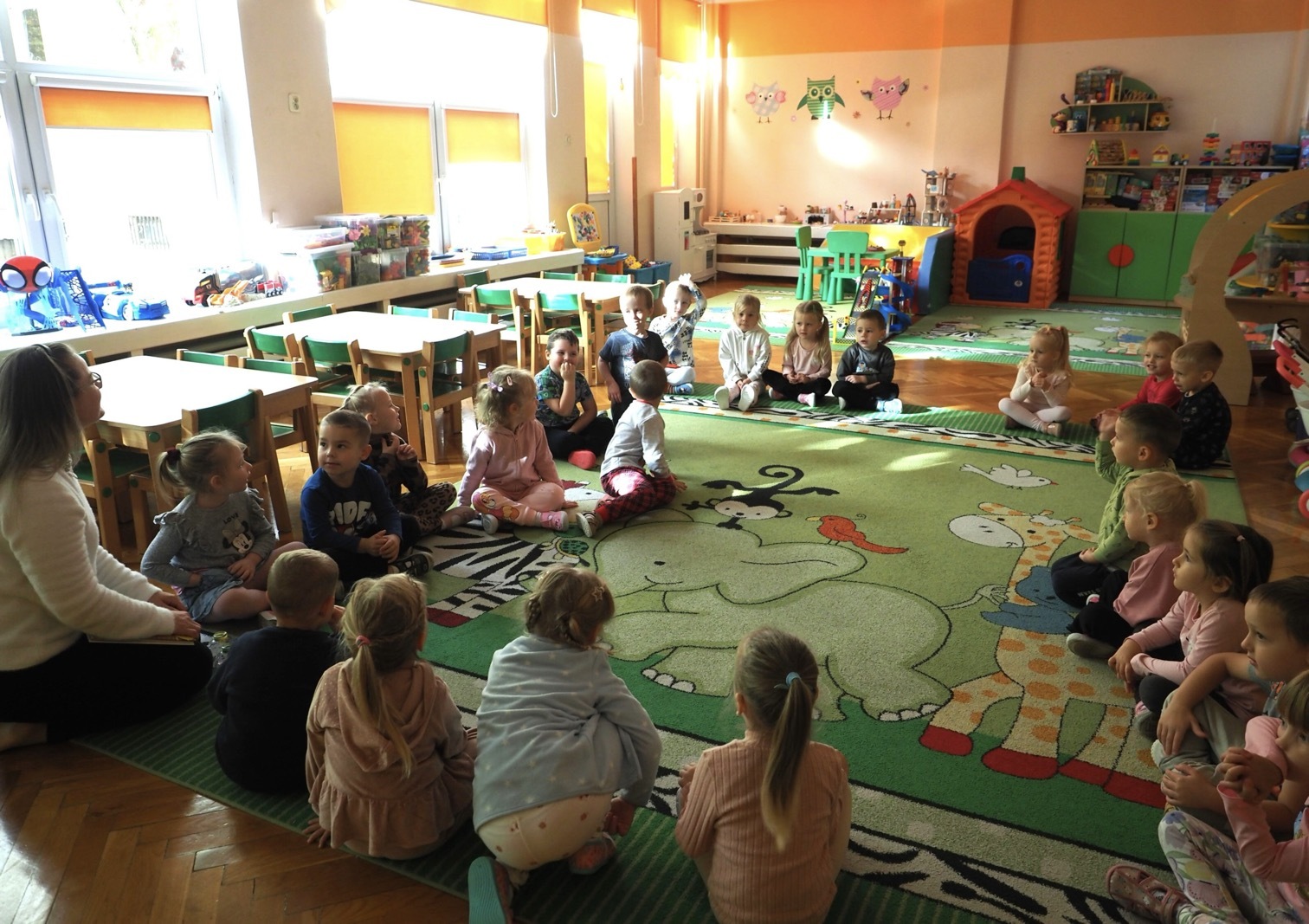 Zajęcia z Panią Sylwią - Panią psycholog. Dziś w grupie II odbyły się wyjątkowe zajęcia poświęcone poznawaniu i nazywaniu emocji. W ramach realizacji międzynarodowego projektu edukacyjnego dzieci miały okazję spotkać się z niezwykłym bohaterem – Kolorowym Potworem, który pomógł im uporządkować świat uczuć.