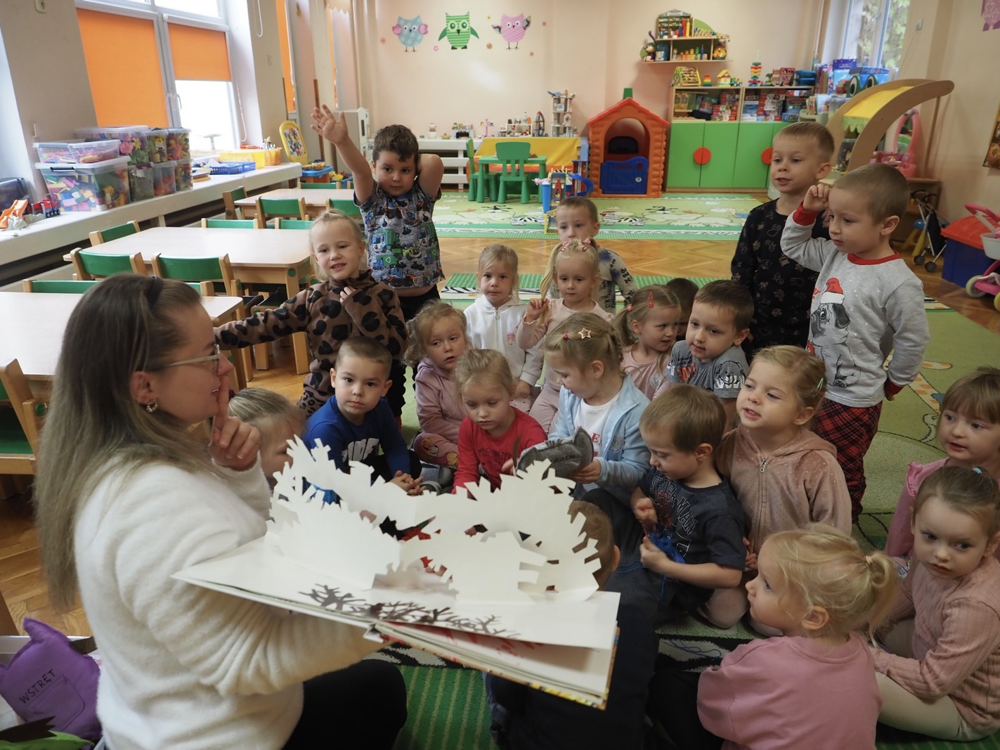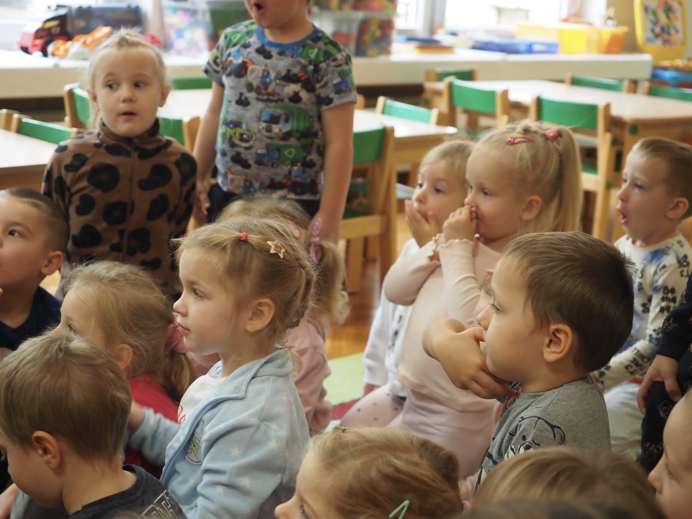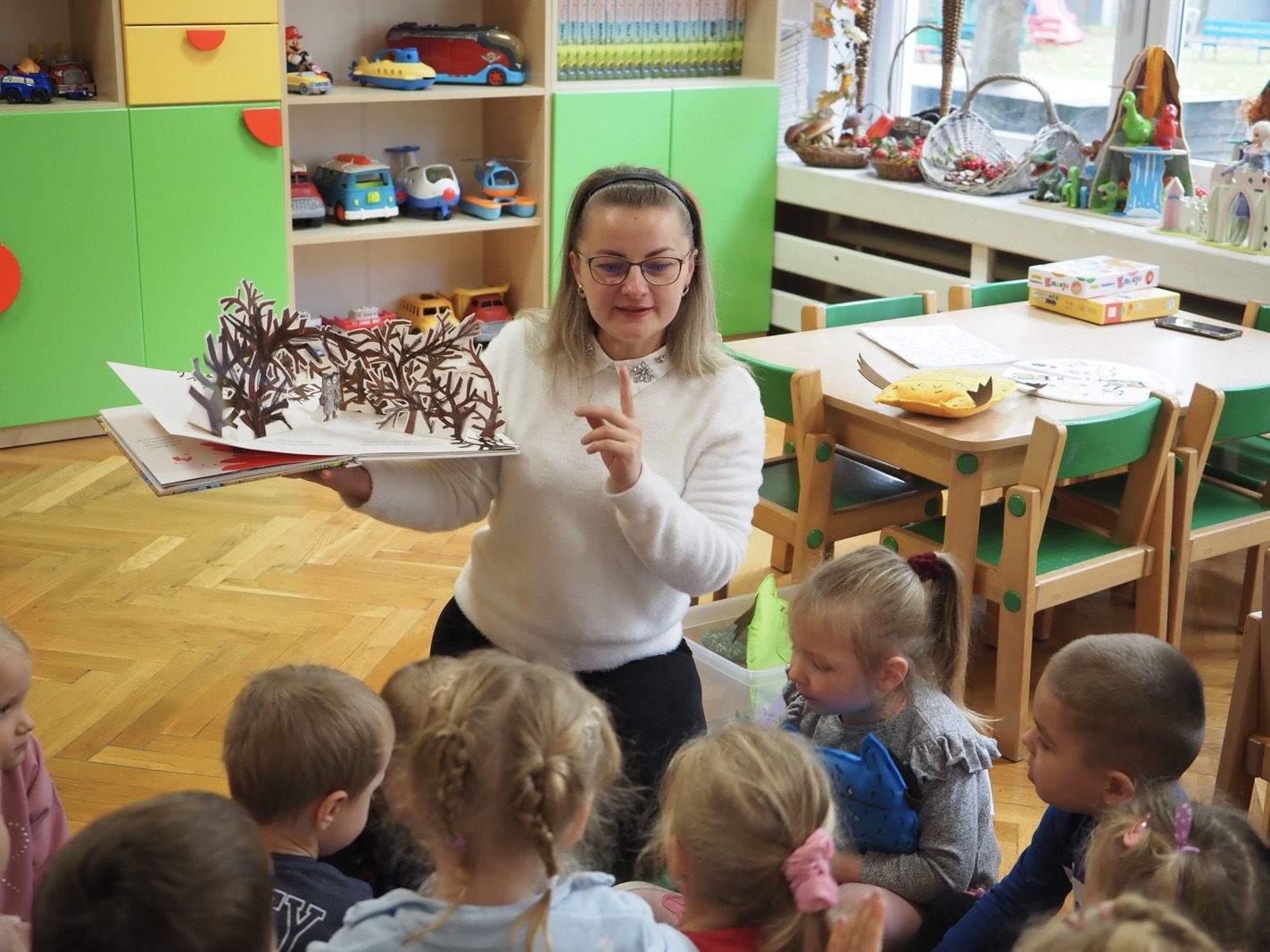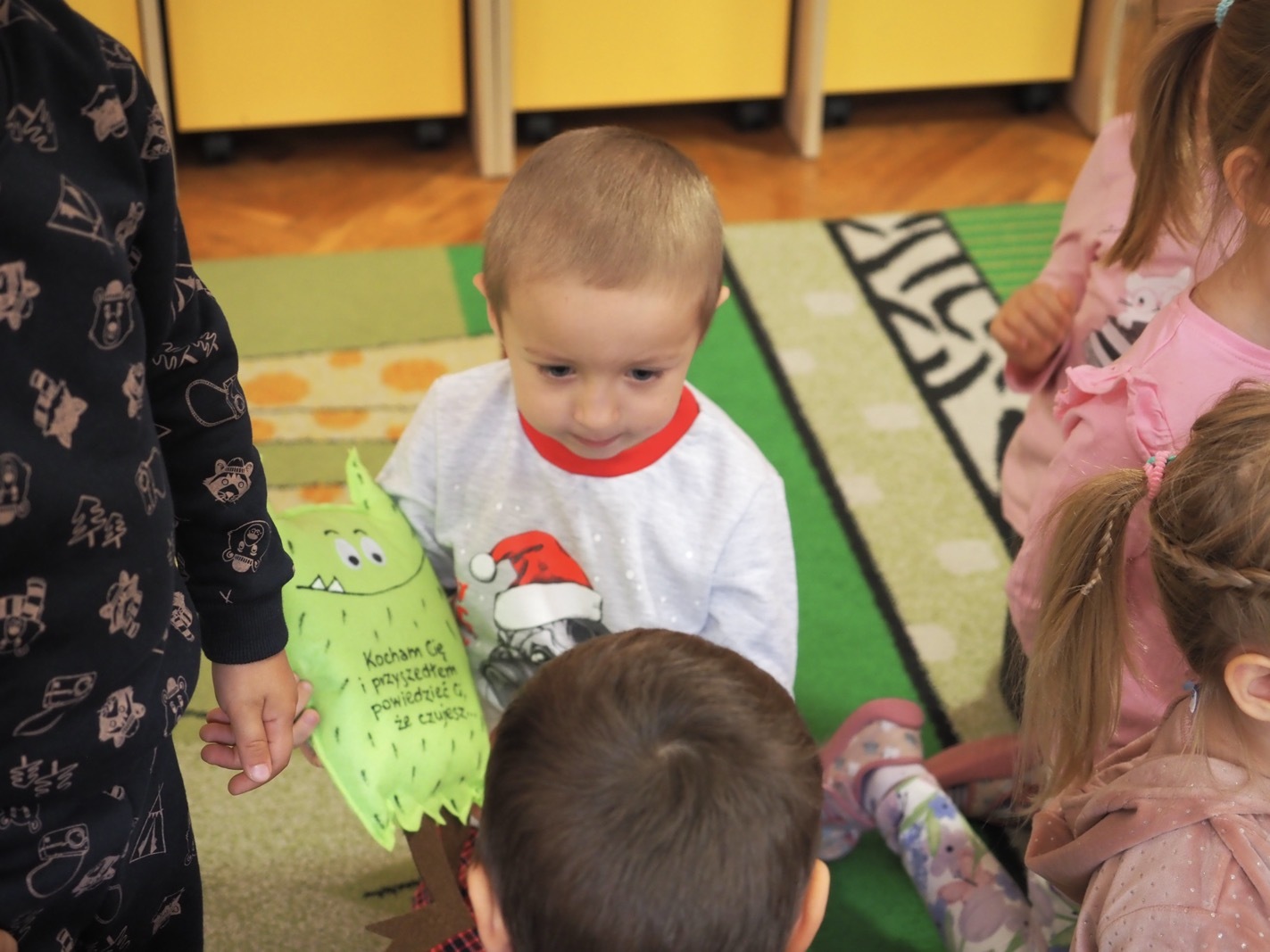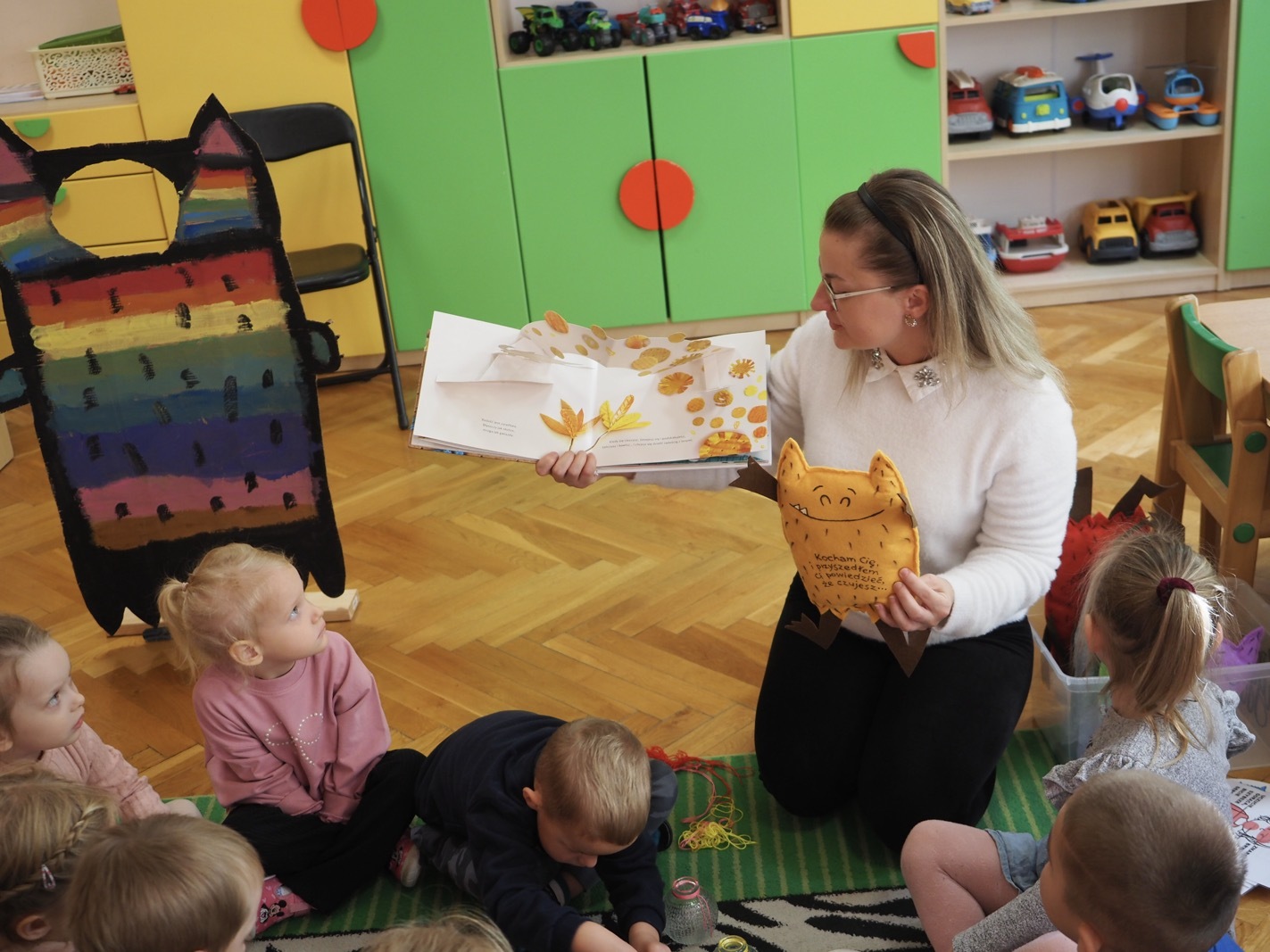 Zajęcia z Panią Sylwią - Panią psycholog. Dziś w grupie II odbyły się wyjątkowe zajęcia poświęcone poznawaniu i nazywaniu emocji. W ramach realizacji międzynarodowego projektu edukacyjnego dzieci miały okazję spotkać się z niezwykłym bohaterem – Kolorowym Potworem, który pomógł im uporządkować świat uczuć.