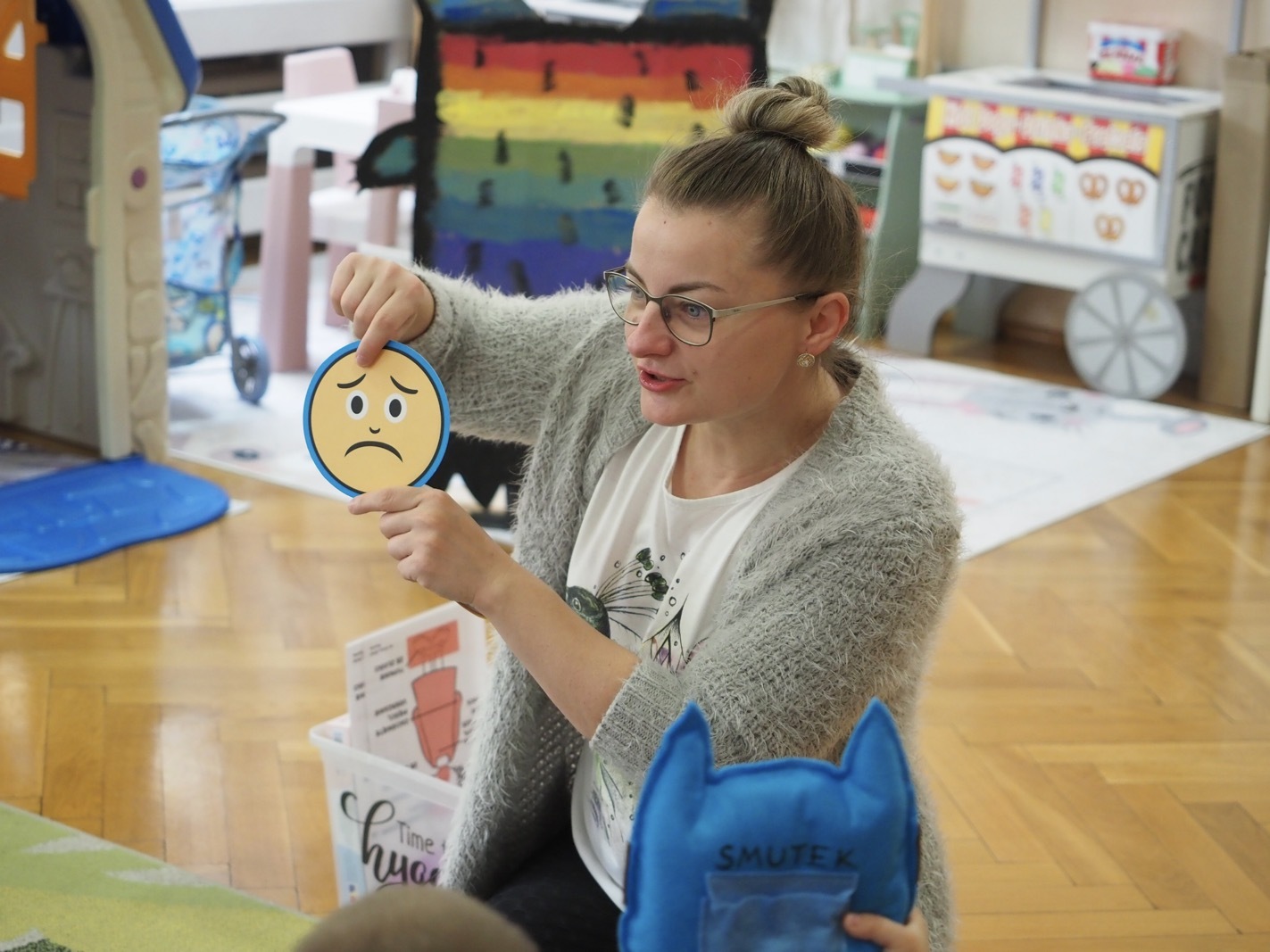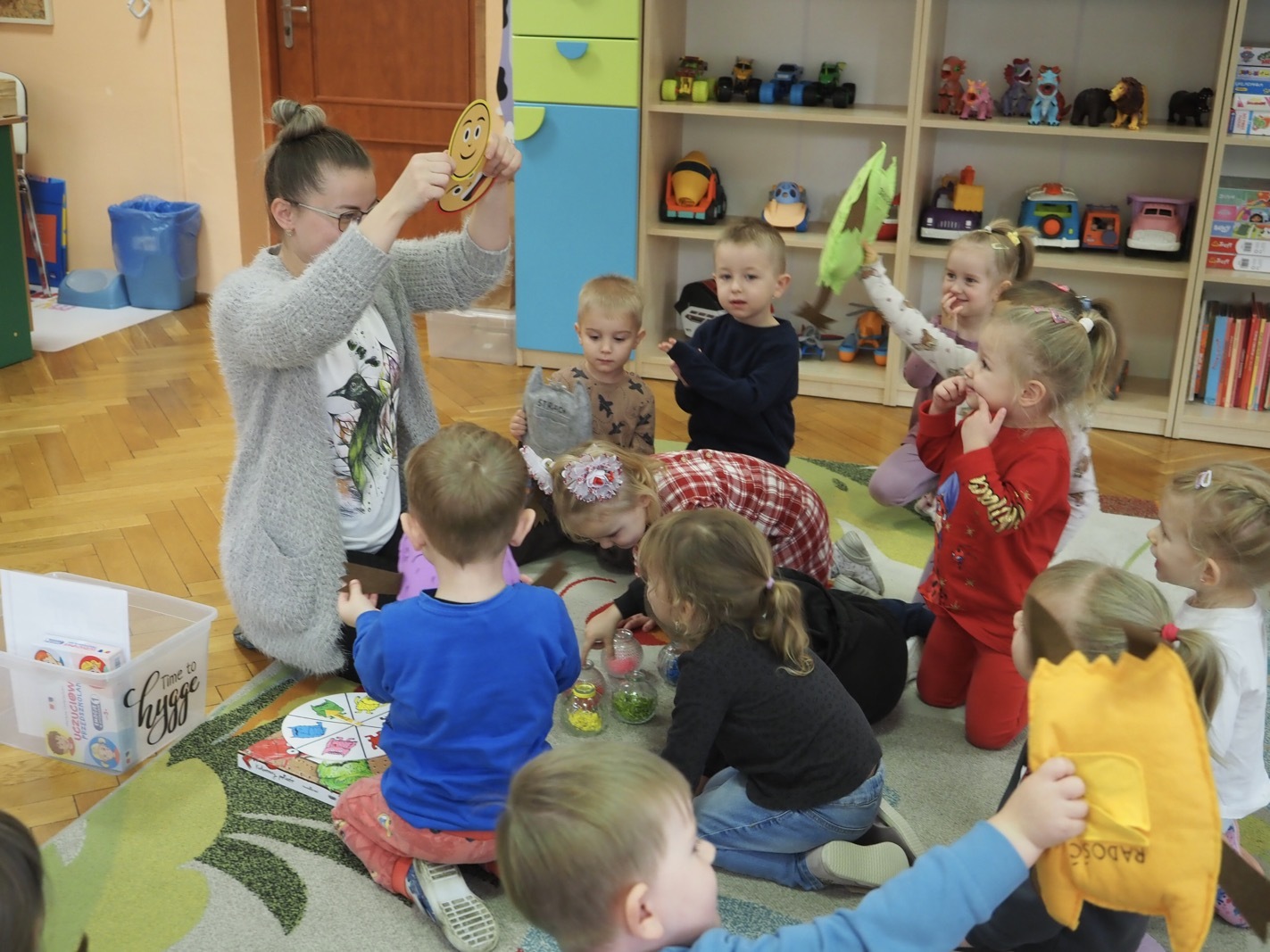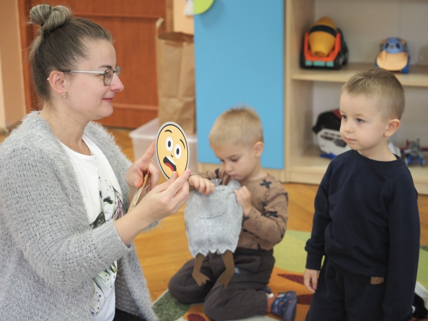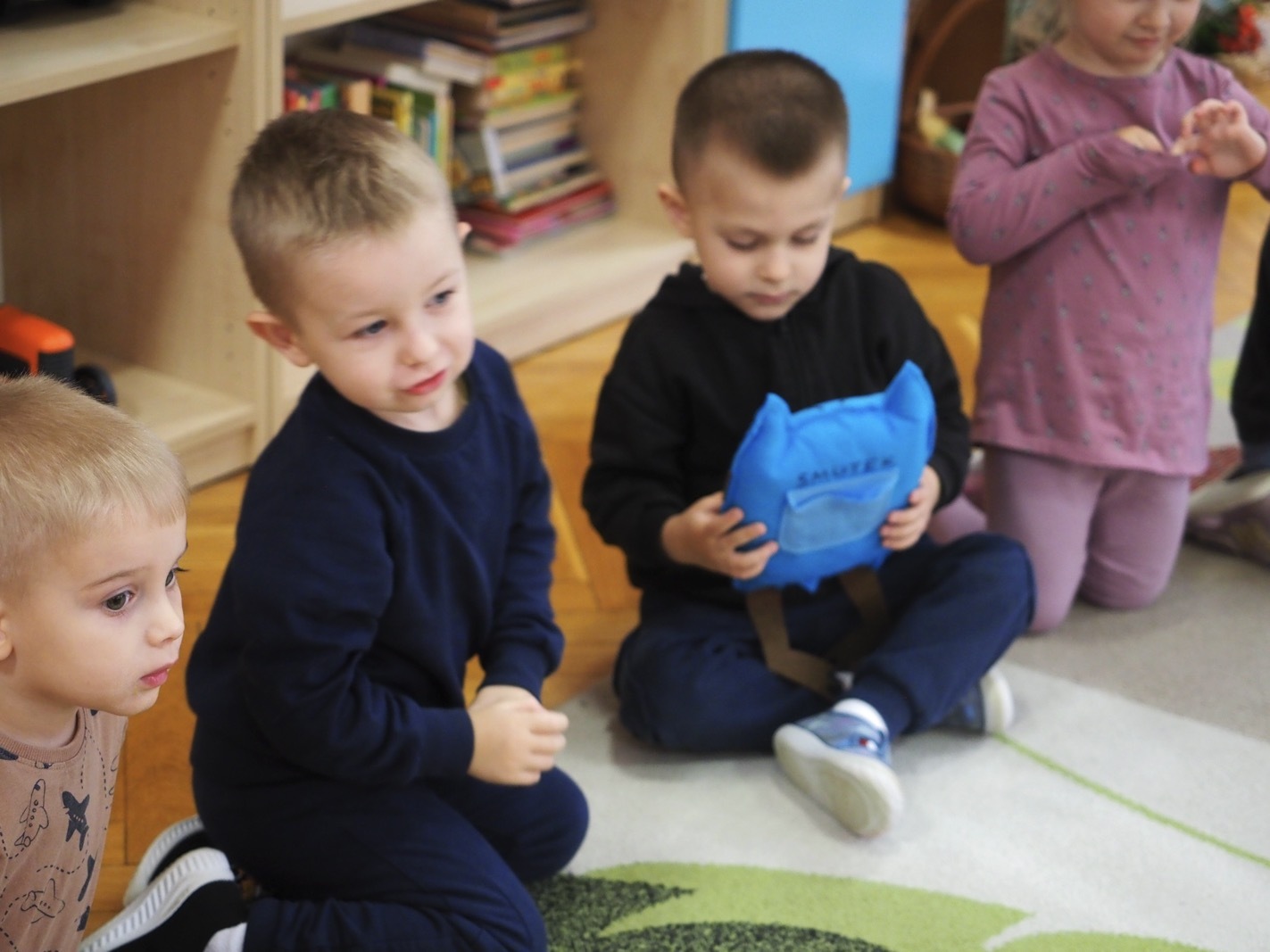 Zajęcia z Panią Sylwią - Panią psycholog. Dziś w grupie 1 odbyły się wyjątkowe zajęcia poświęcone poznawaniu i nazywaniu emocji. W ramach realizacji międzynarodowego projektu edukacyjnego dzieci miały okazję spotkać się z niezwykłym bohaterem – Kolorowym Potworem, który pomógł im uporządkować świat uczuć.