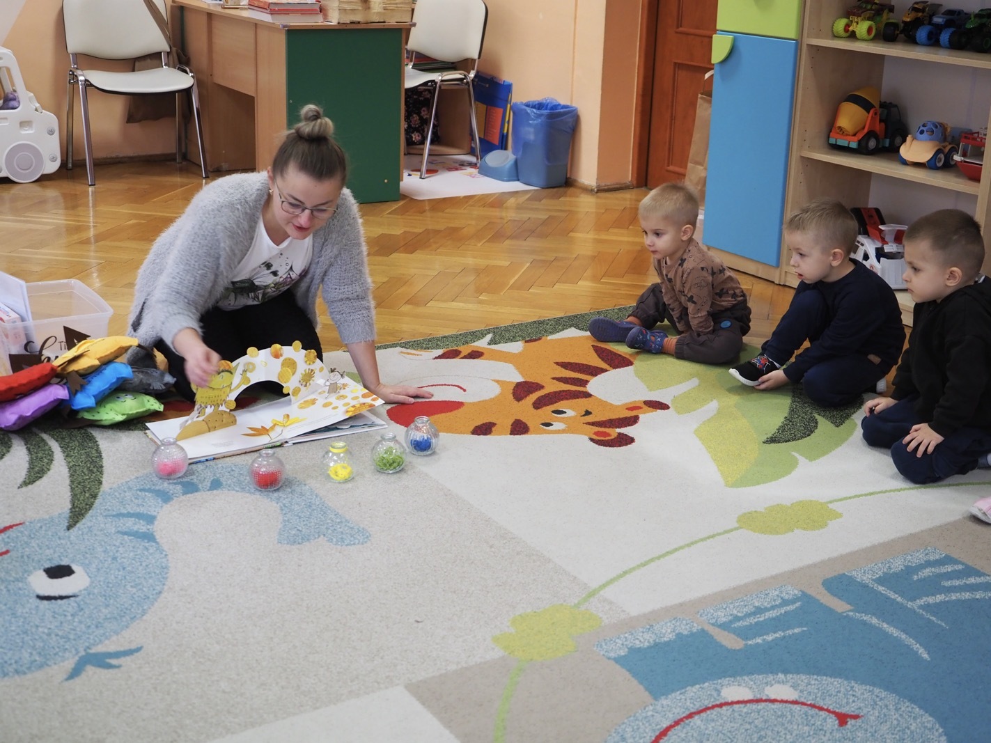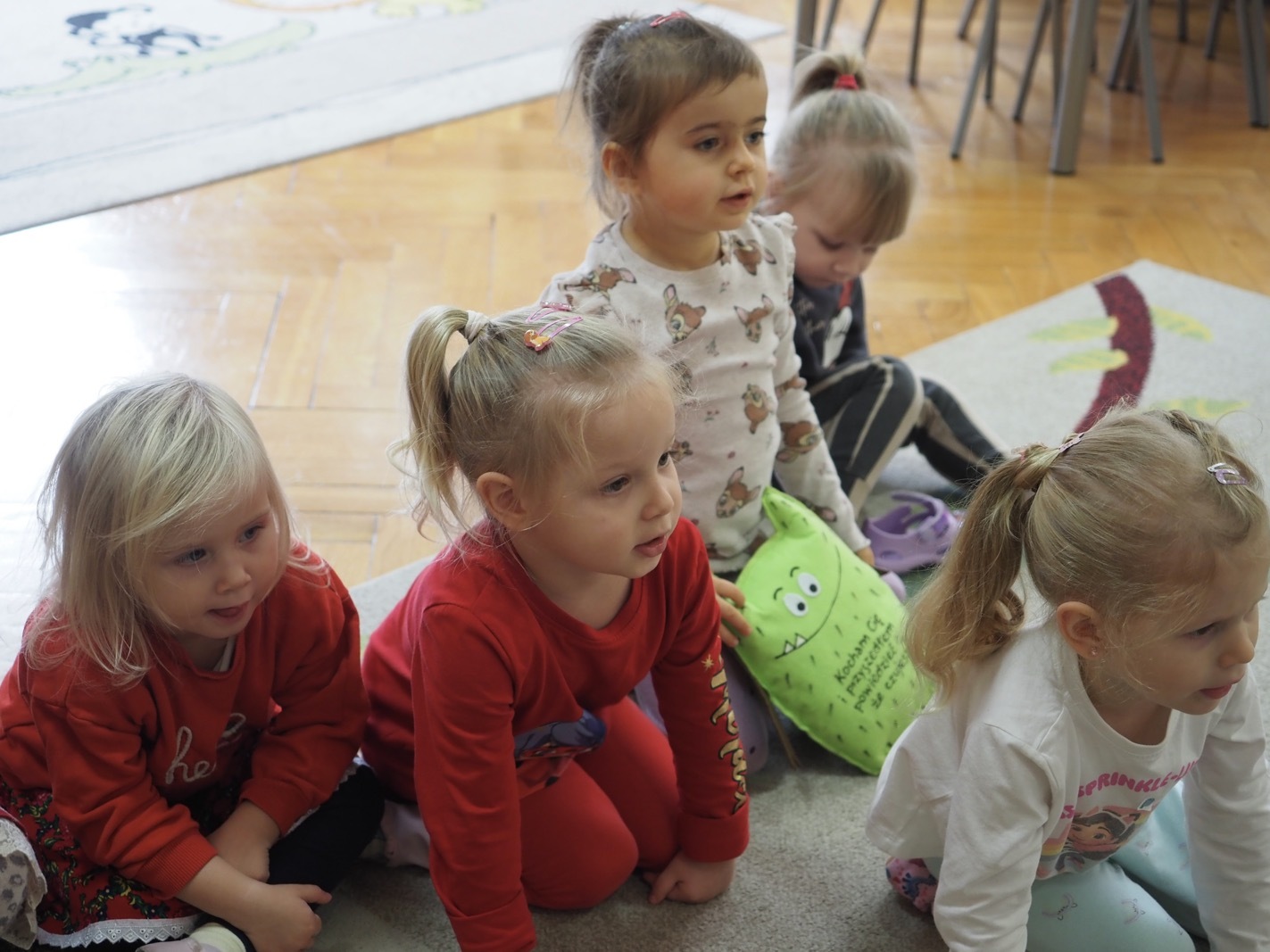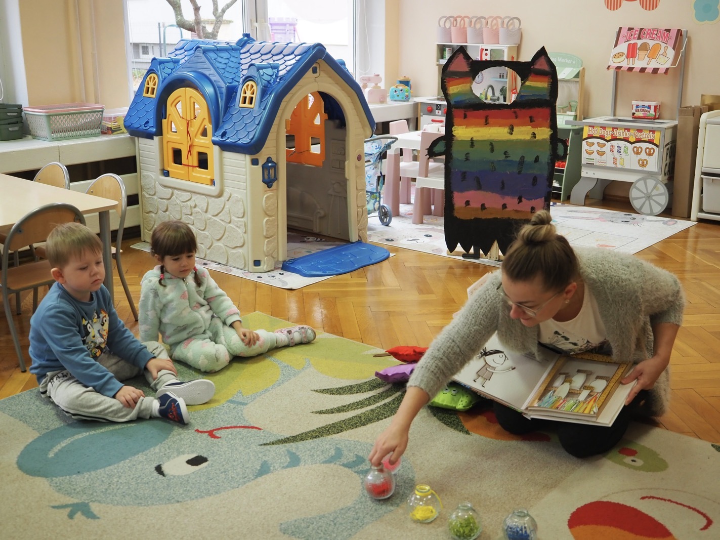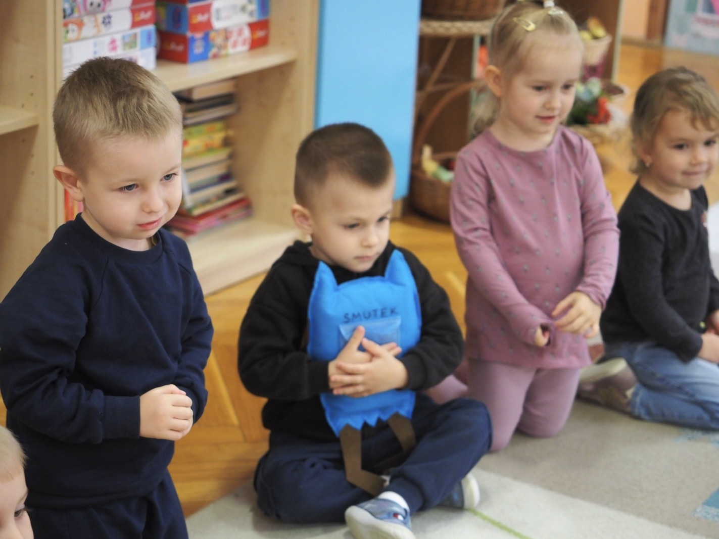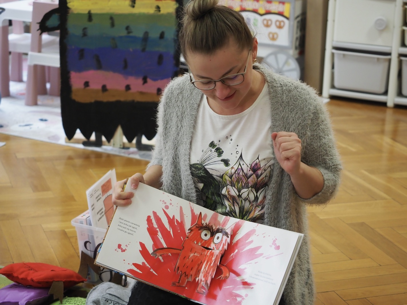 Zajęcia z Panią Sylwią - Panią psycholog. Dziś w grupie 1 odbyły się wyjątkowe zajęcia poświęcone poznawaniu i nazywaniu emocji. W ramach realizacji międzynarodowego projektu edukacyjnego dzieci miały okazję spotkać się z niezwykłym bohaterem – Kolorowym Potworem, który pomógł im uporządkować świat uczuć.