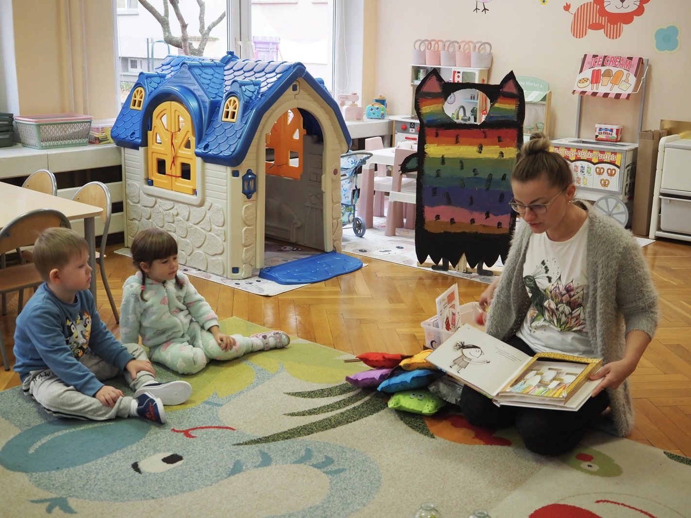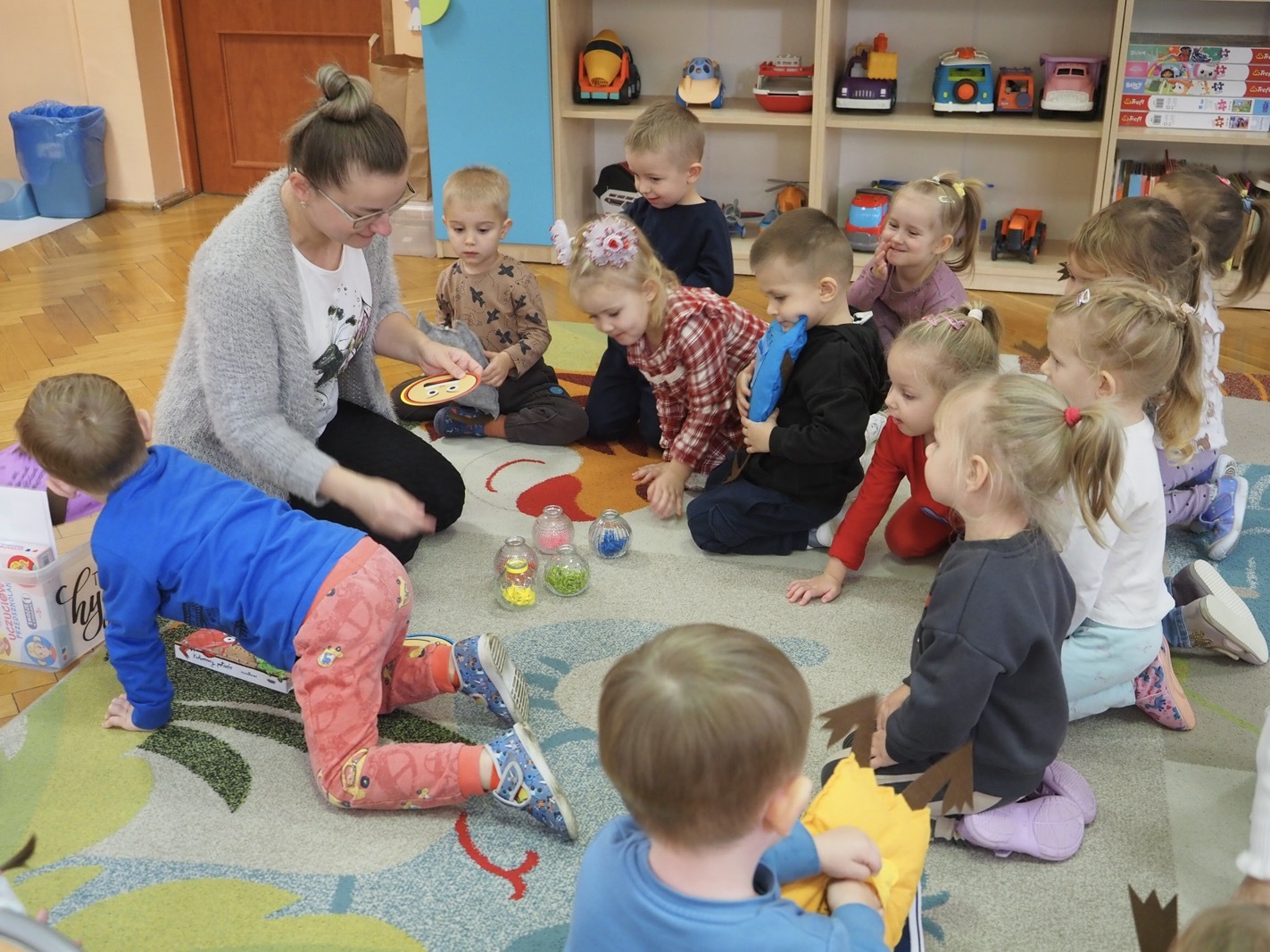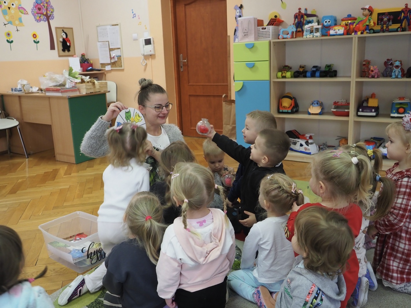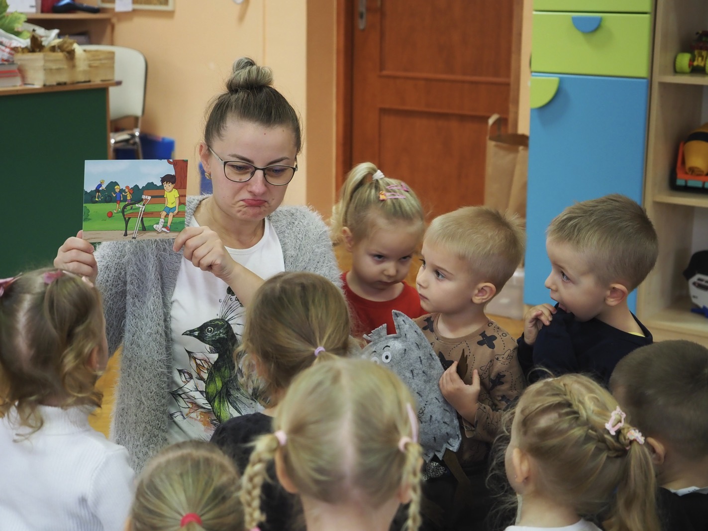 Zajęcia z Panią Sylwią - Panią psycholog. Dziś w grupie 1 odbyły się wyjątkowe zajęcia poświęcone poznawaniu i nazywaniu emocji. W ramach realizacji międzynarodowego projektu edukacyjnego dzieci miały okazję spotkać się z niezwykłym bohaterem – Kolorowym Potworem, który pomógł im uporządkować świat uczuć.